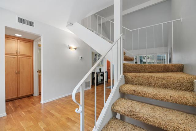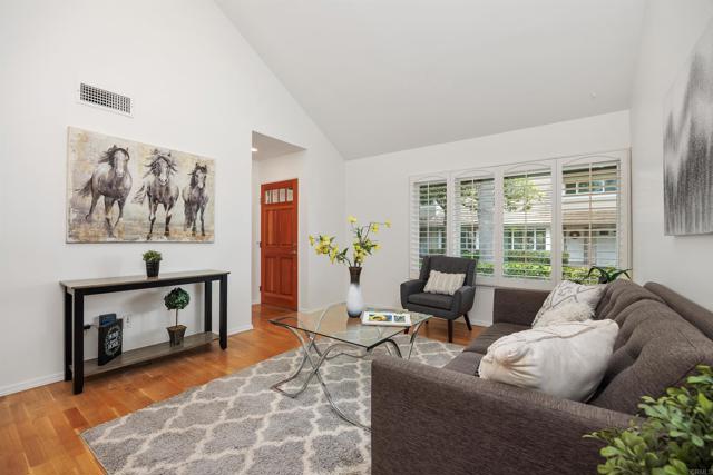 This beautifully upgraded single-family attached, 3-bedroom, end-unit townhome is tucked away in the quiet community of Turfwood. West of the 5, this home is within walking distance of the Del Mar Fairgrounds, restaurants, shopping, beaches and so much more. Upgrades include maple cabinets, granite counters, wood floors downstairs, gas stove, newer HVAC and appliances, dual pane windows, plantation shutters, upgraded bathrooms, and new paint throughout. The three bedrooms upstairs have floor-to-ceiling mirrored closets for plenty of storage. The primary bathroom has a large vanity, spacious walk-in shower and adjoins the full bathroom upstairs. Downstairs, the eat-in kitchen flows out to the serene spacious garden patio. The attached single-car garage has a laundry area with washer and dryer included. This highly desirable complex offers a community pool, spa and clubhouse. Whether you are looking for a primary residence or a vacation destination, this home will not disappoint.Interested in this Listing?