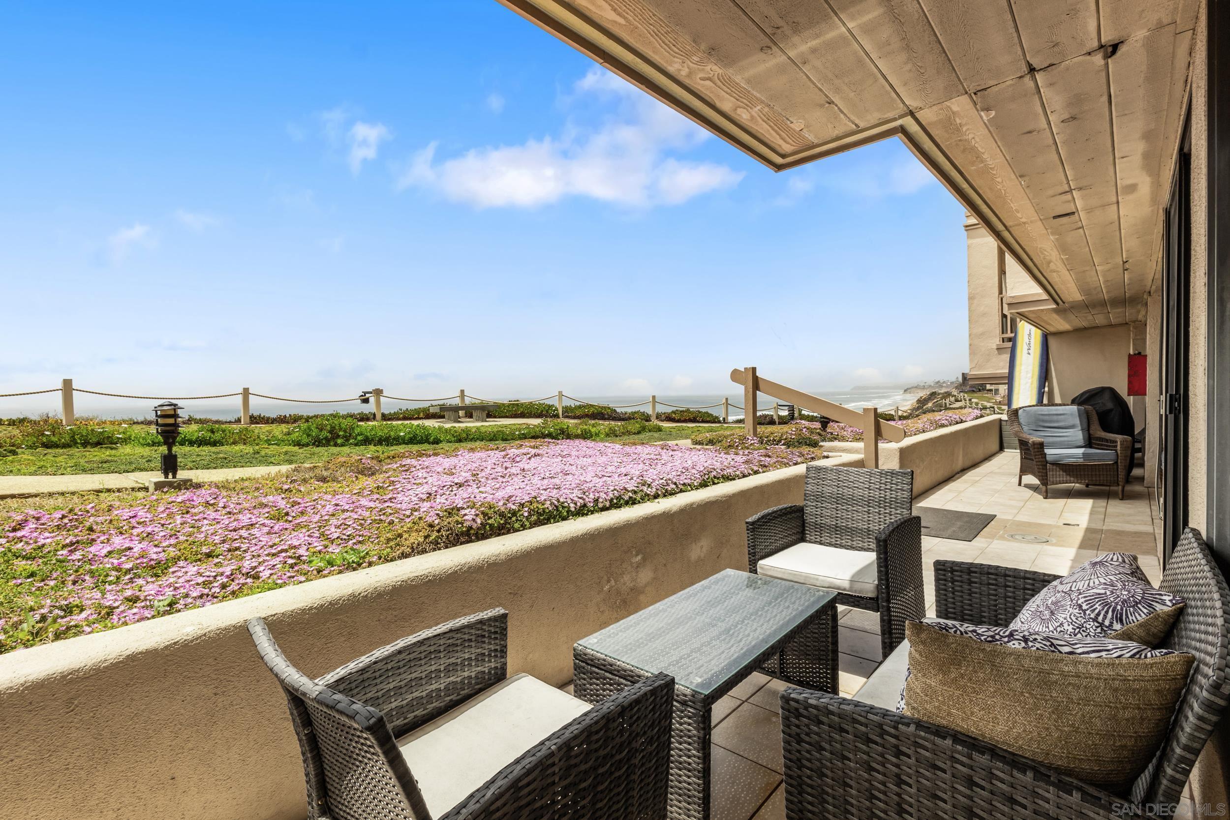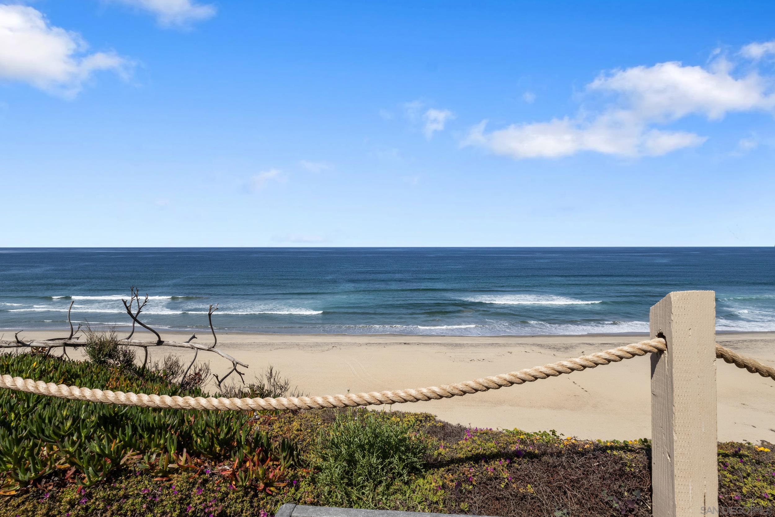 Just imagine taking in the spectacular sunsets every evening setting over the ocean horizon from your front deck! Discover your dream coastal retreat with this beautifully appointed condo in Seascape Sur perched bluff front in Solana Beach. First time on the market in over 30 years, this home offers breathtaking ocean views from every room! This desirable single story unit is located on the first floor offering ease of beachfront living. There are no steps throughout the home and the desirable floor plan has sliding doors in every room for true indoor outdoor lifestyle to take advantage of the sea breeze. Fall asleep to the soothing sound of waves crashing and awaken to the serene sight of the rolling tide. This condo features a large patio that is perfect for entertaining guests or simply relaxing as you take in the sights on the bluff. Inside, the updated interior reflects a classic beachy style, highlighted by white kitchen and baths. The third bedroom serves as an additional bonus room providing flexibility to utilize the space as a bedroom, office or other versatile area. The spacious open-concept kitchen, dining room and family room create a seamless flow for effortless and comfortable living. With a cozy fireplace, built in wine bar and ample storage throughout, this condo is ideal for those seeking a stylish beach retreat. Experience the ultimate in coastal living with this exceptional property.Interested in this Listing?