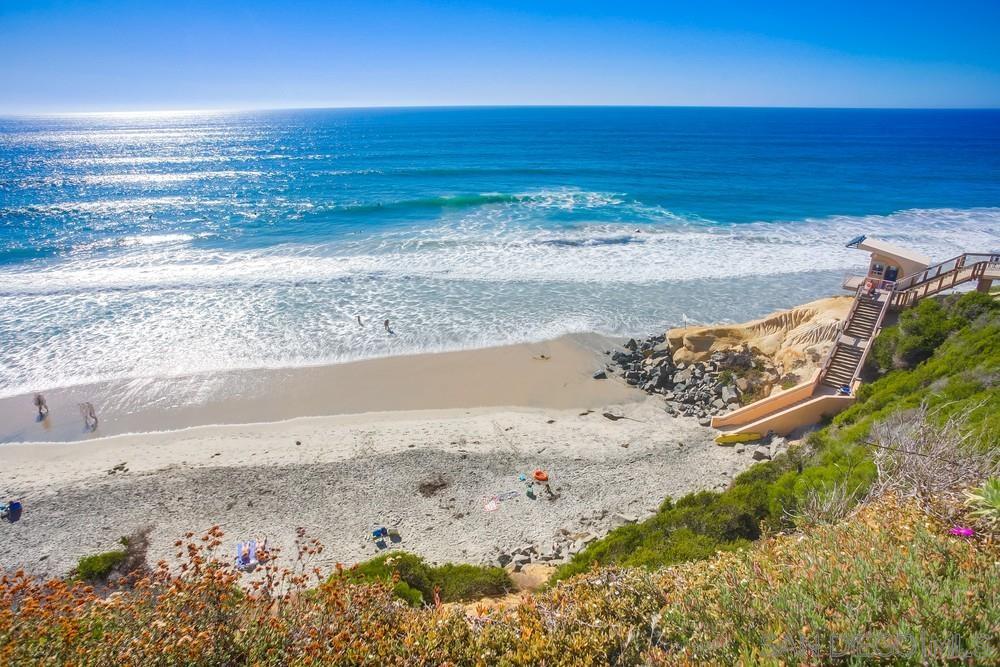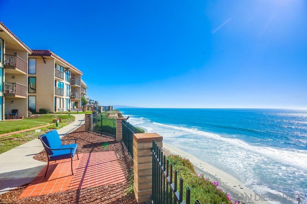 Vacation Rental - rates vary by season. Located on the border of Del Mar and Solana Beach, be prepared to immerse yourself in the unique coastal lifestyle only these two communities can provide. Just steps away from the Del Mar Shores Stairway to the sand, this ocean-view vacation rental is a beach lover's dream. After a day of sun and surf, retreat to your private oceanfront sanctuary with a cozy enclosed patio off the bedroom. Inside the unit, a beautifully updated bathroom invites you to rejuvenate, while the fully stocked kitchen is perfect for crafting meals or enjoying appetizers before heading to the Brigantine, a local favorite restaurant with crispy fish tacos, oysters, and cold beer. The ocean-view living room's expansive sliding glass doors transform your space into a seamless blend of indoor and outdoor living. Extra patio chairs allow you to soak in the sunset. Explore the gorgeous walking trails along the bluff with panoramic views of the surf and sand. Community amenities include a sparkling pool and spa. Short drive to all of San Diegos world-famous attractions including the Del Mar Racetrack. This property has been a vacation rental for several years with wonderful reviews (5 star average!) - Walking distance to the beach with dedicated community beach access - Lots of natural light and windows - Dedicated parking space in gated garage - Community Pool & Hot Tubs overlooking the bluffs - Community Washer & Dryer close to the unit