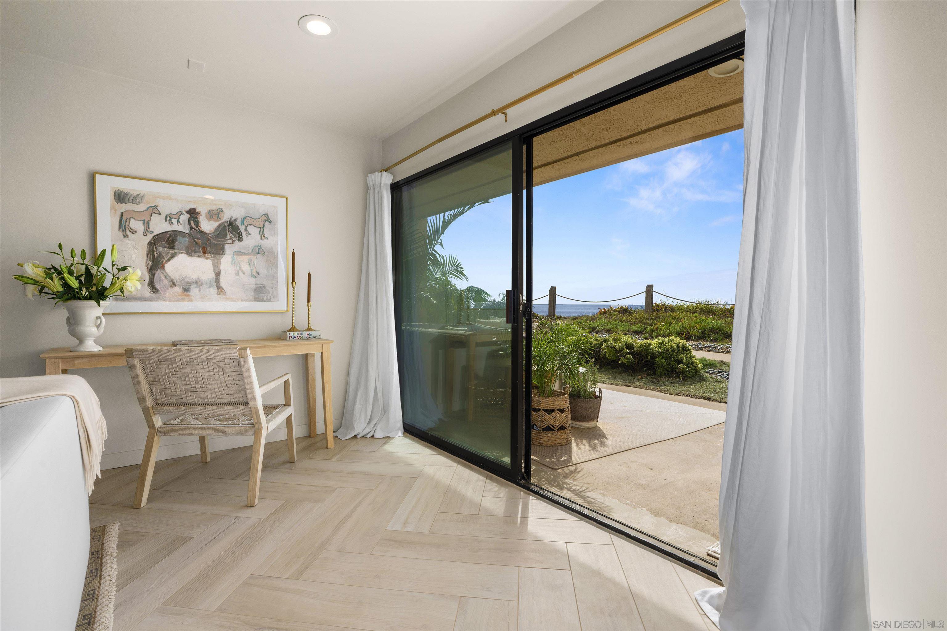 Enjoy this short term rental with the perfect blend of serenity, comfort, and sophistication in this beautifully remodeled 1-bedroom, 1.5-bathroom oceanfront home at the exclusive Solana Beach and Tennis Club. Whether you're seeking a peaceful retreat or a productive work-from-home sanctuary, this stunning property offers an unparalleled coastal living experience. Designed for both relaxation and efficiency, the bright and airy open living space extends onto a private covered balcony with unobstructed ocean views- an inspiring backdrop for morning coffee, evening sunsets, or even a work-from-home setup with the soothing sound of waves. This Romantic & Versatile Coastal Escape that is perfect for a single adult or couple looking for a tranquil getaway. The spa-like primary bathroom offers a luxurious retreat, featuring a wet room with a walk-in shower, a deep soaking tub, and a picture window showcasing stunning ocean views. Steps to Seascape Beach Access & Park walk straight to the sand. Walkable to top restaurants, charming cafes, fitness studios, the train station, and the farmers market. Explore the Cedros Design District with its unique boutiques, art galleries, and live music. Central to Del Mar, Cardiff-by-the-Sea, and Encinitas. Available now! Your dream coastal escape awaits- perfect for work, relaxation or both!