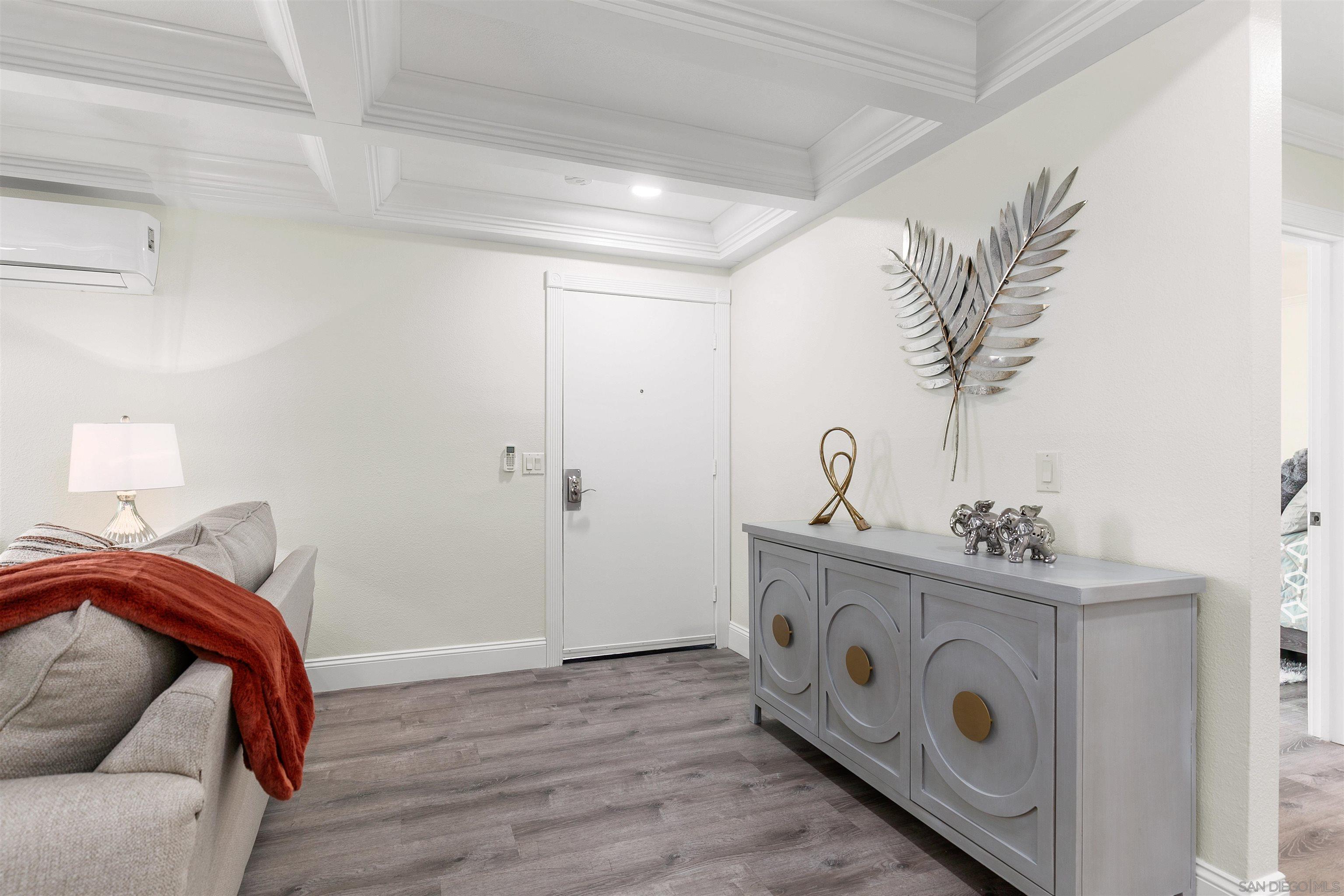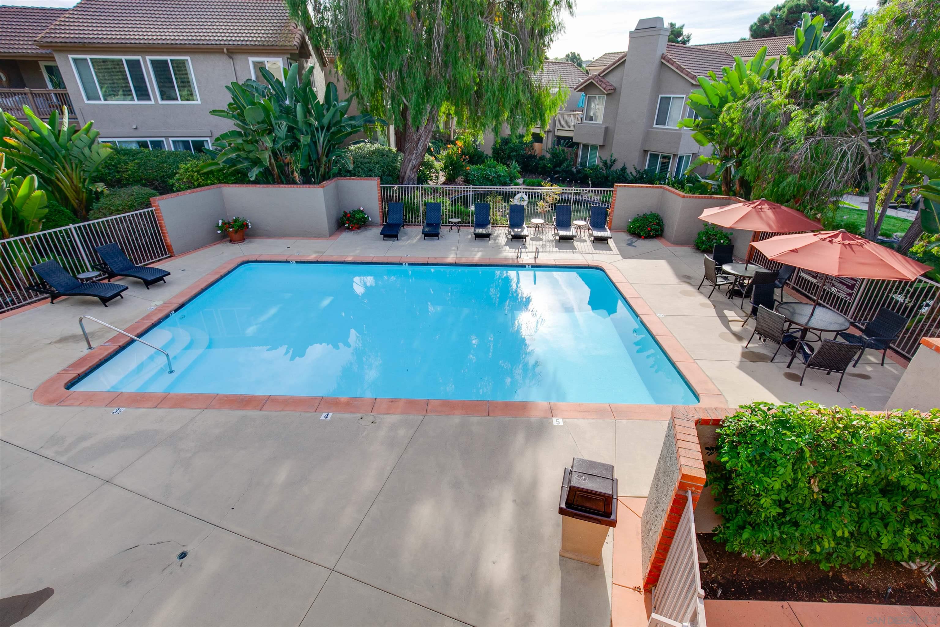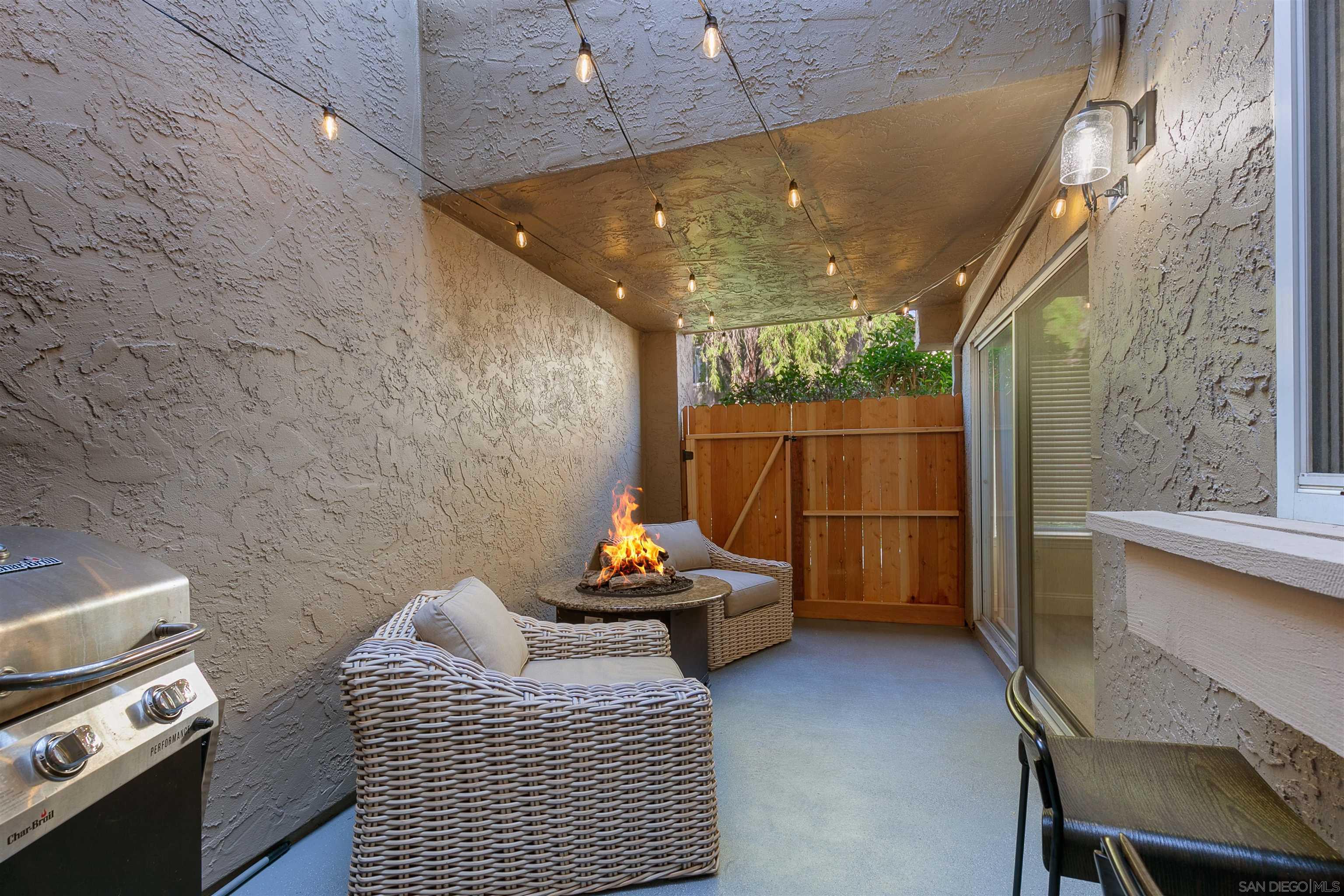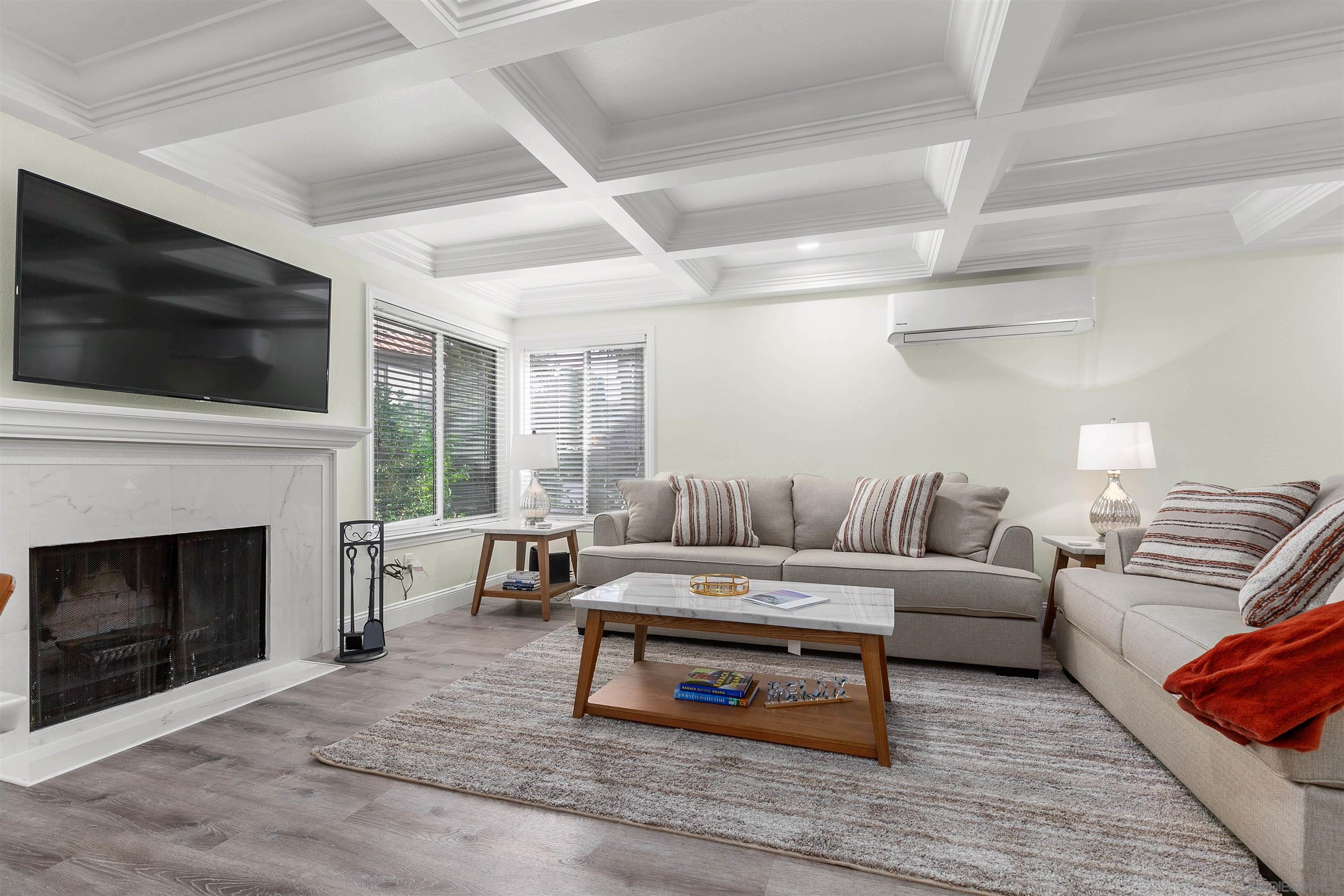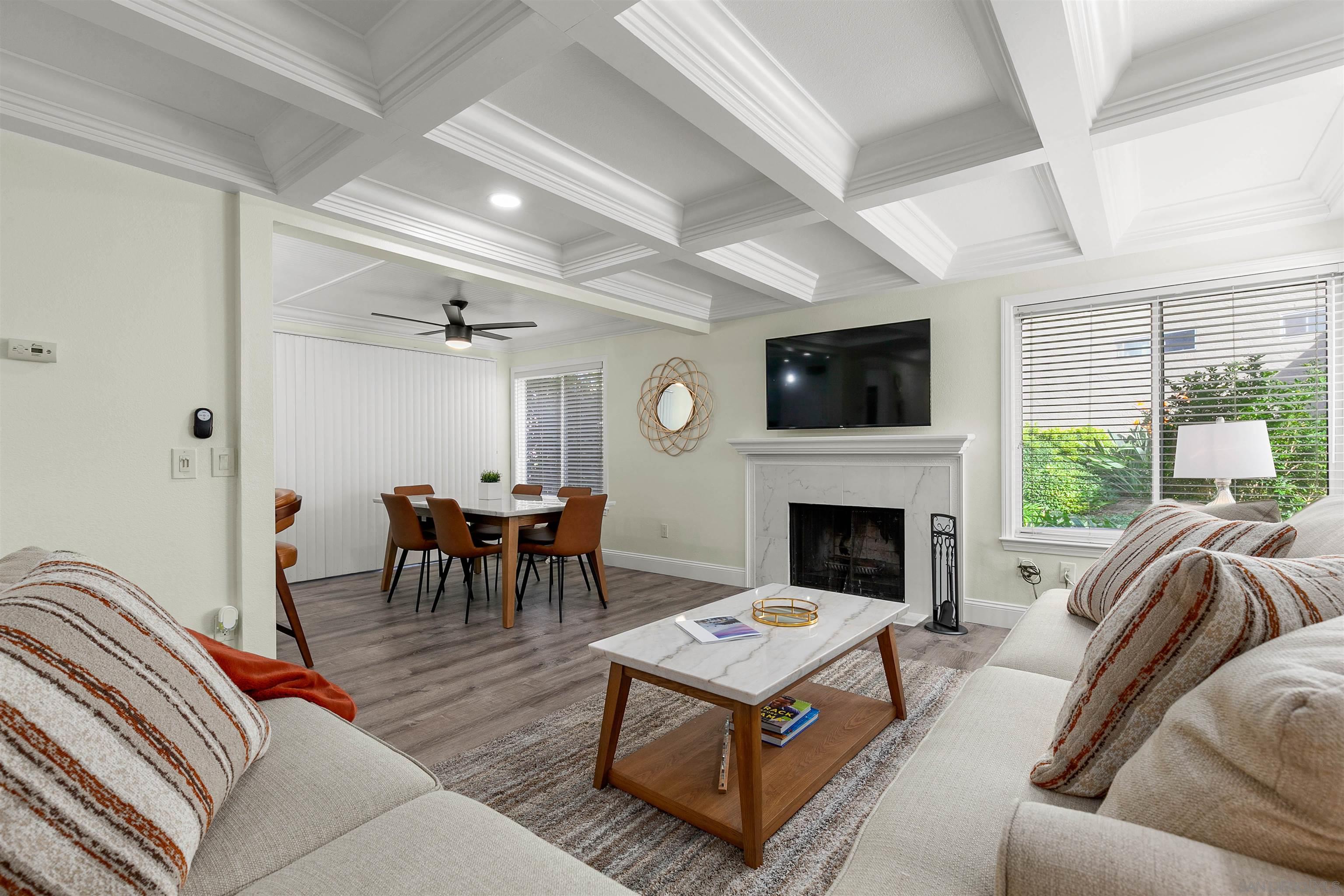 COME ENJOY the luxury of The Villas at Lomas Santa Fe! Located just minutes from the beach, and newly renovated just for you, including CENTRAL AIR (mini-split system) for your comfort and a wood burning fireplace for ambience! The unit has been outfitted well, complete with a fully stocked kitchen, richly appointed w/ gorgeous coffered ceilings, crown molding, wainscoting, and new LED canned lighting! Your kitchen comes complete w/new quartz counters & room for 3 at the bar, a pot filler, lots of cabinets and storage, and all kitchen pots and utensils to make your stay enjoyable! SEE SUPP FOR MORE DETAILS!