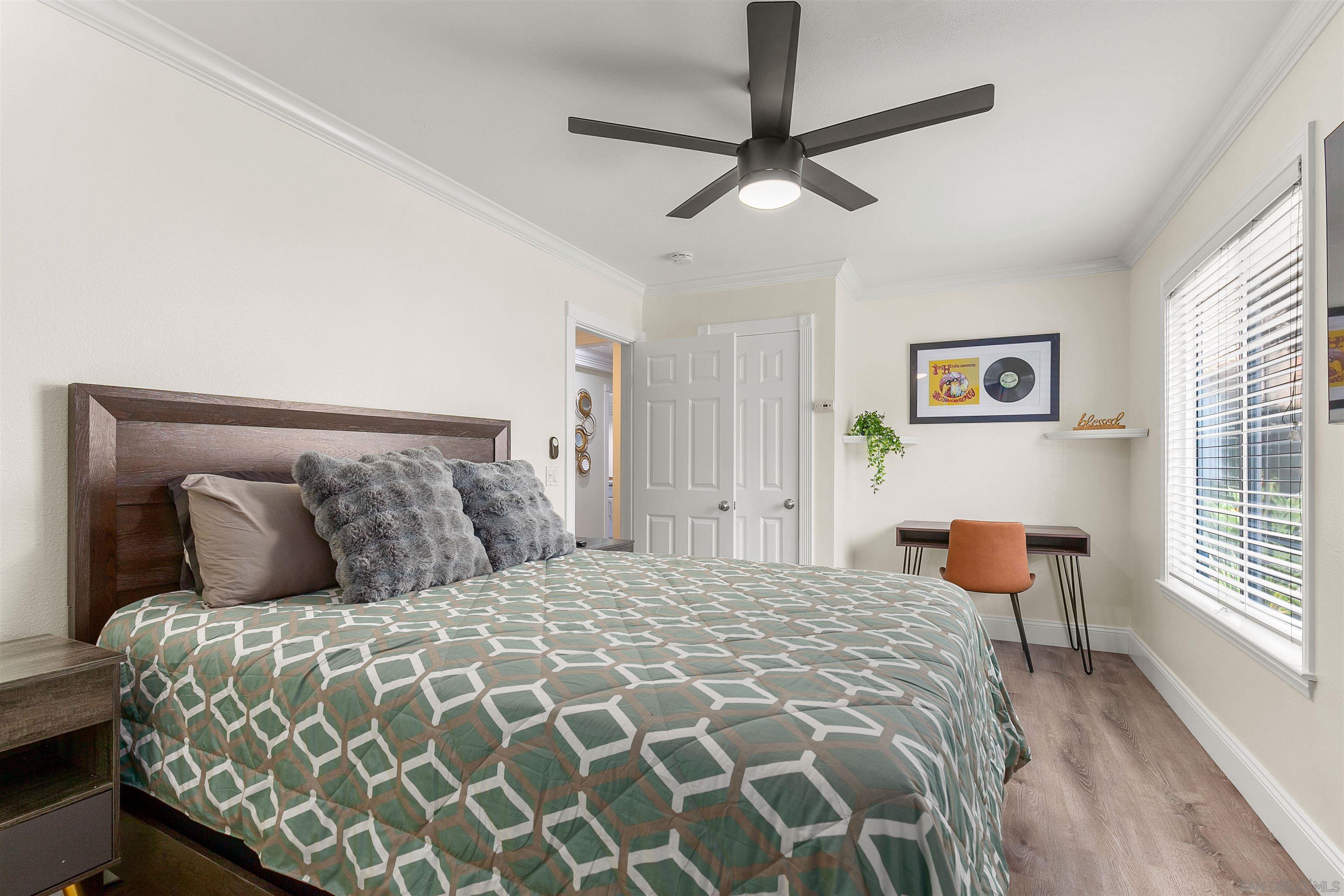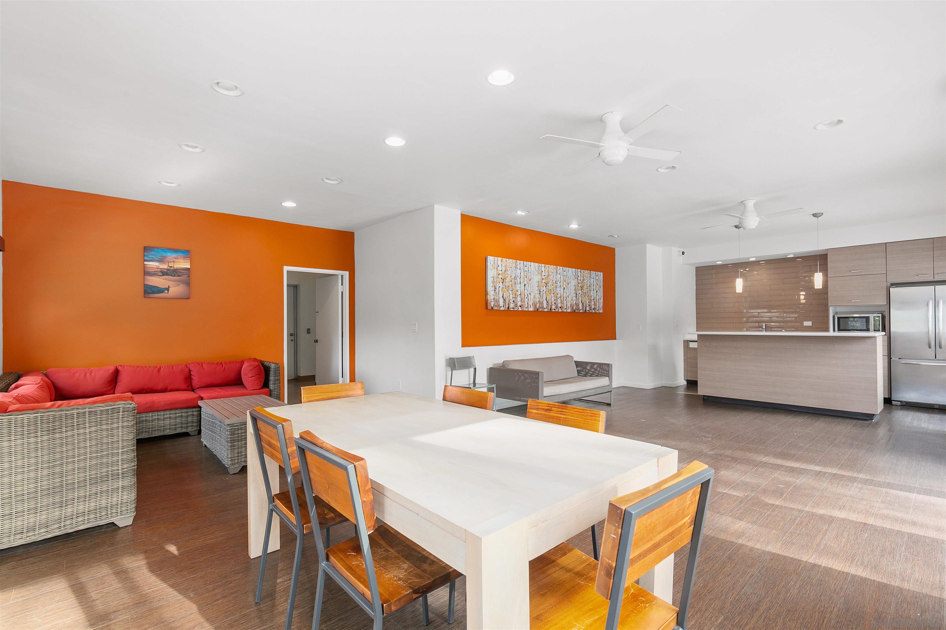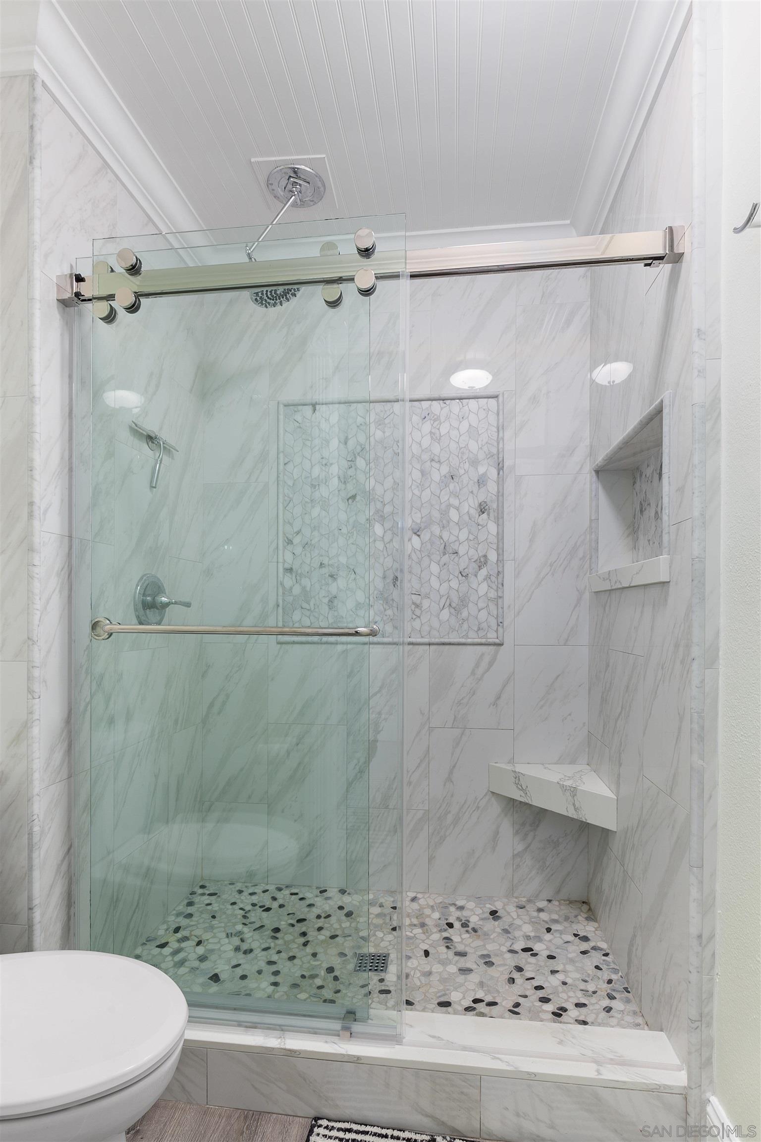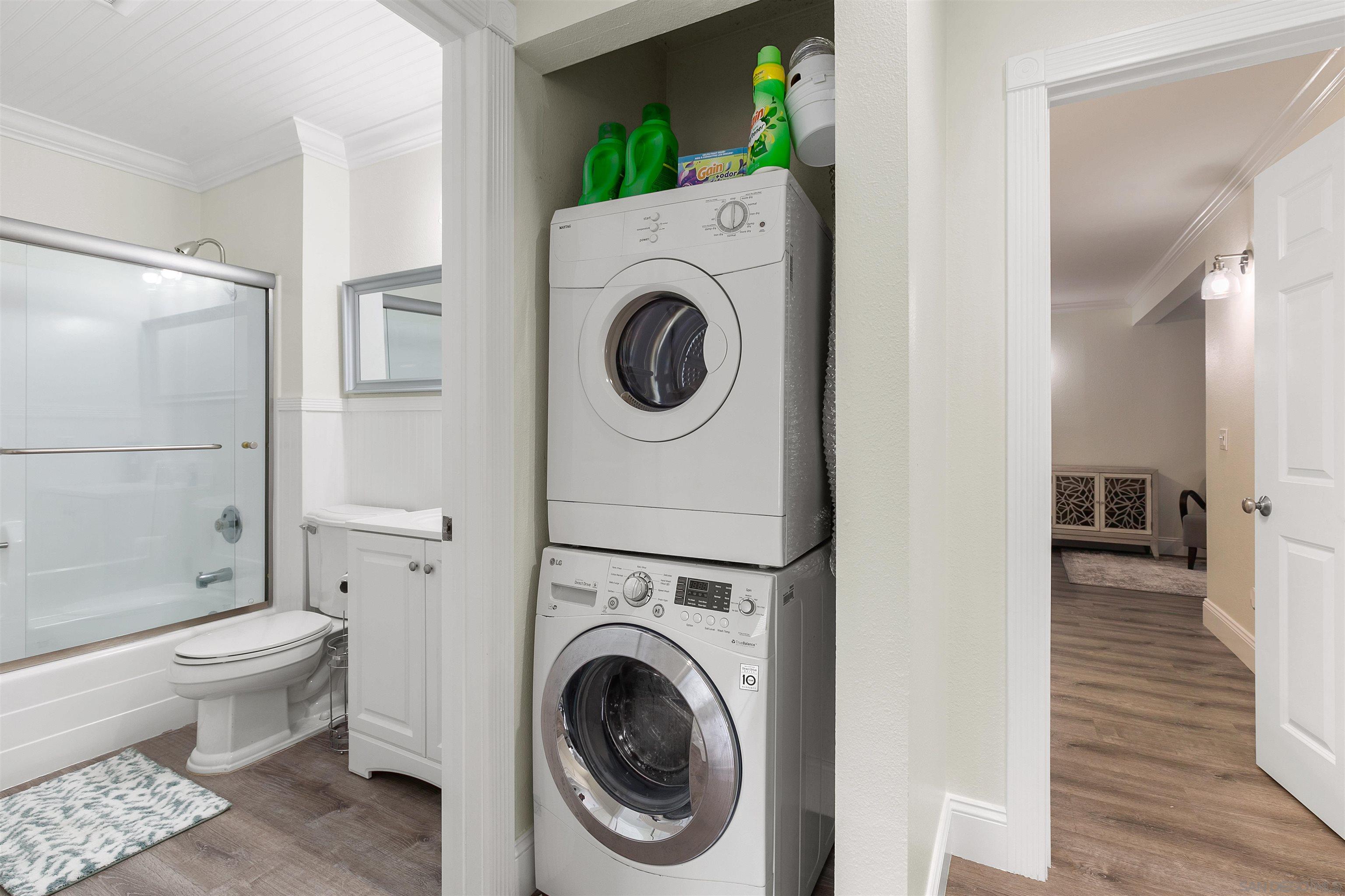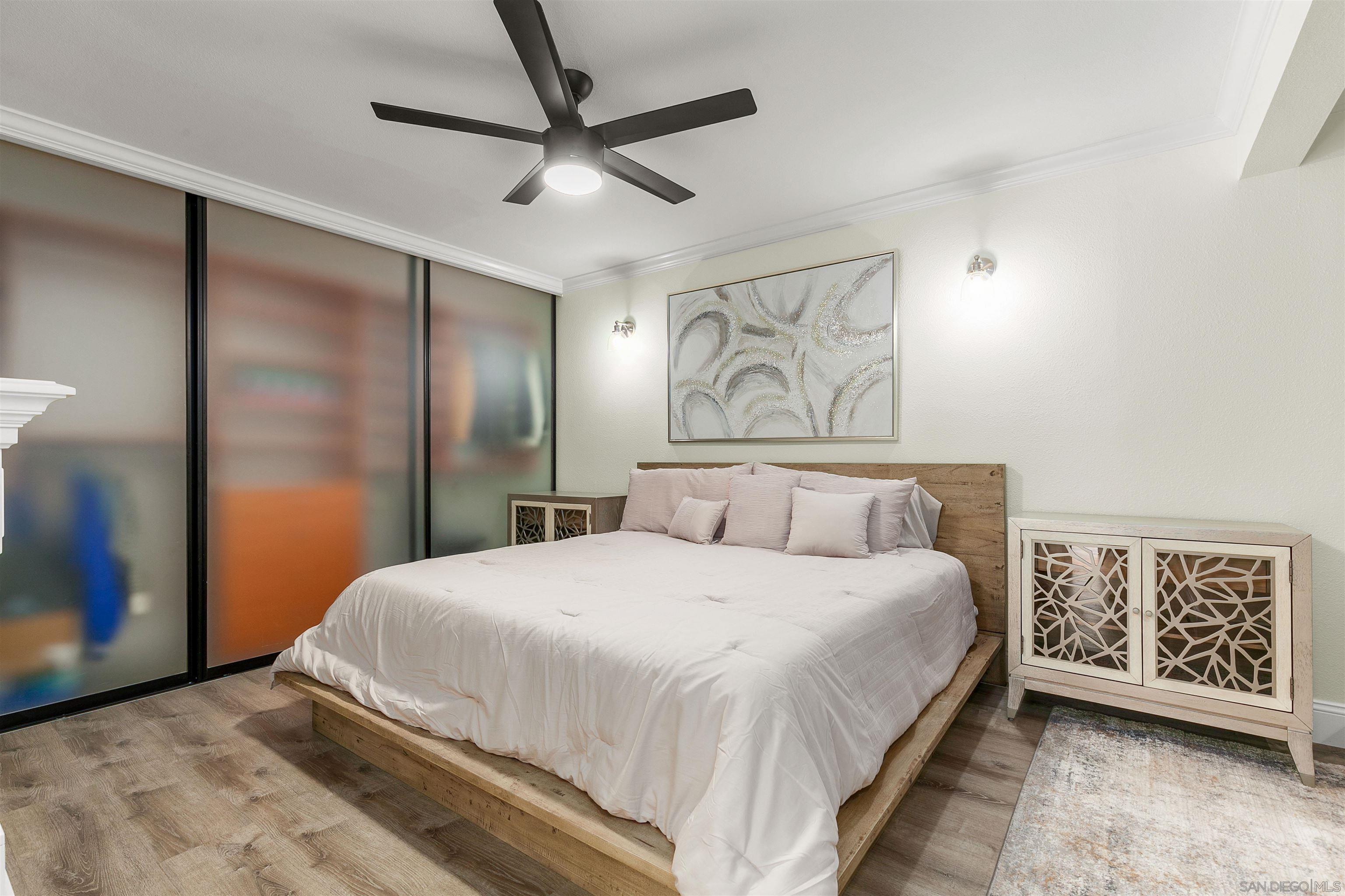 COME ENJOY the luxury of The Villas at Lomas Santa Fe! Located just minutes from the beach, and newly renovated just for you, including CENTRAL AIR (mini-split system) for your comfort and a wood burning fireplace for ambience! The unit has been outfitted well, complete with a fully stocked kitchen, richly appointed w/ gorgeous coffered ceilings, crown molding, wainscoting, and new LED canned lighting! Your kitchen comes complete w/new quartz counters & room for 3 at the bar, a pot filler, lots of cabinets and storage, and all kitchen pots and utensils to make your stay enjoyable! SEE SUPP FOR MORE DETAILS!
