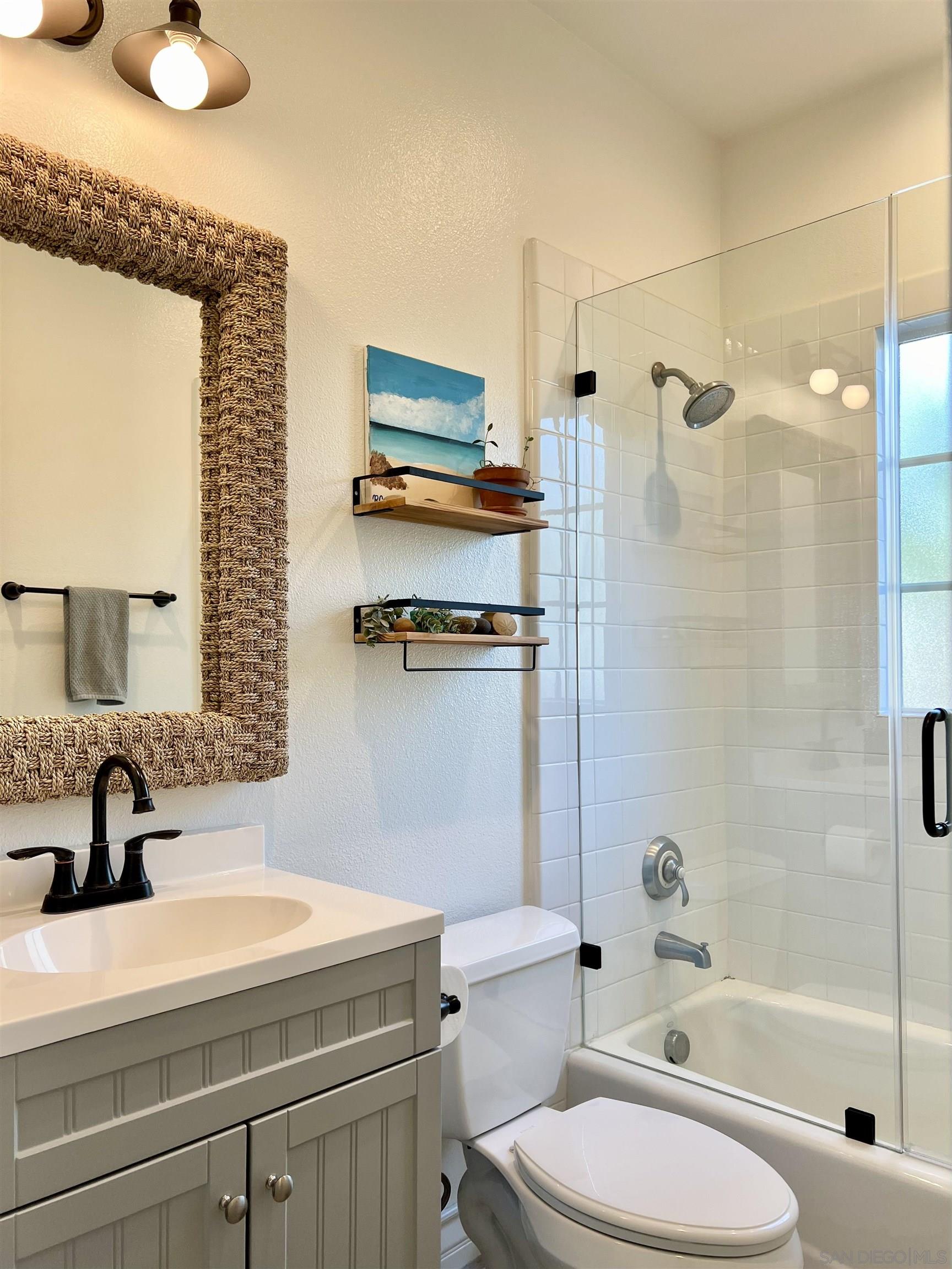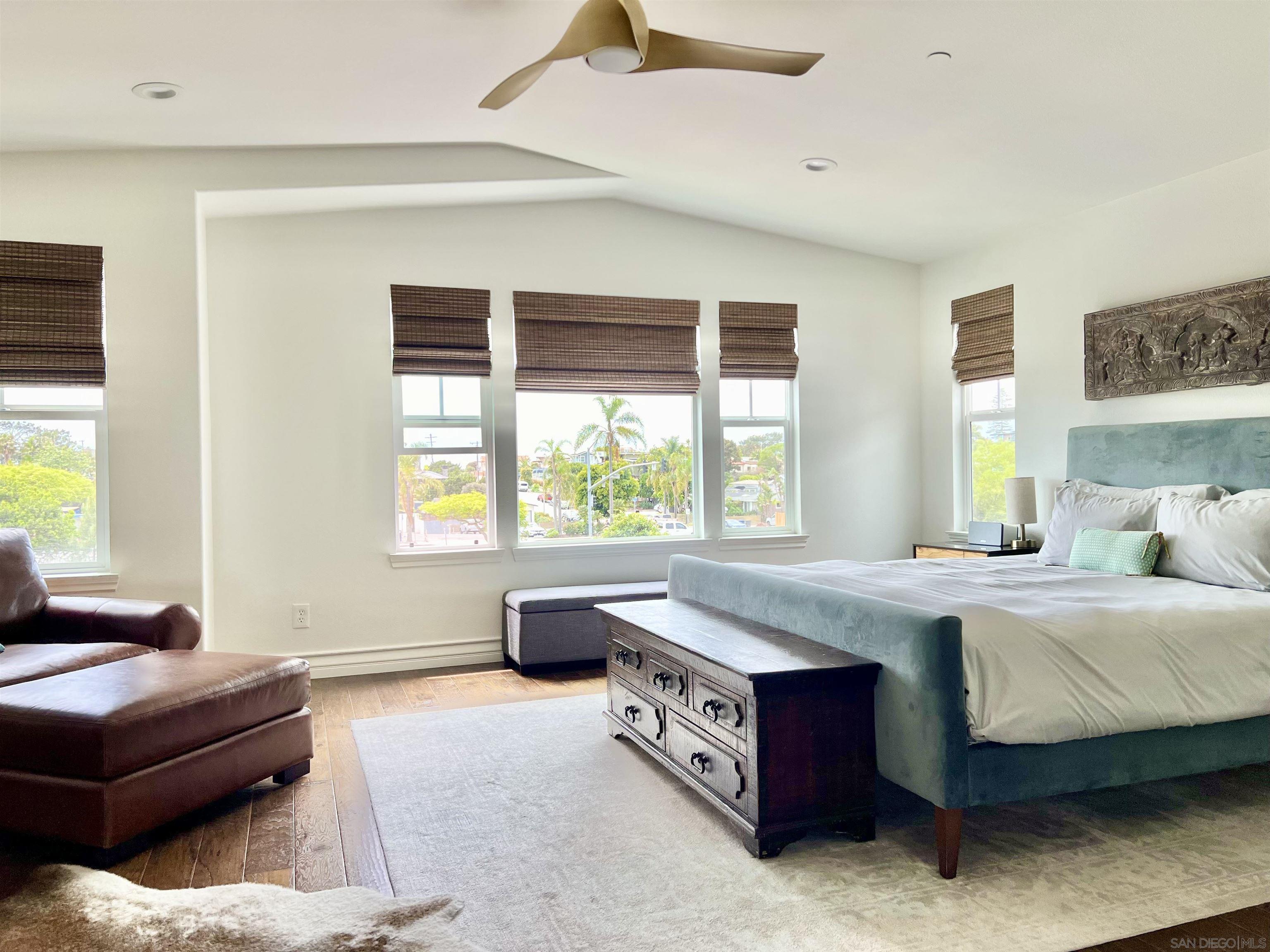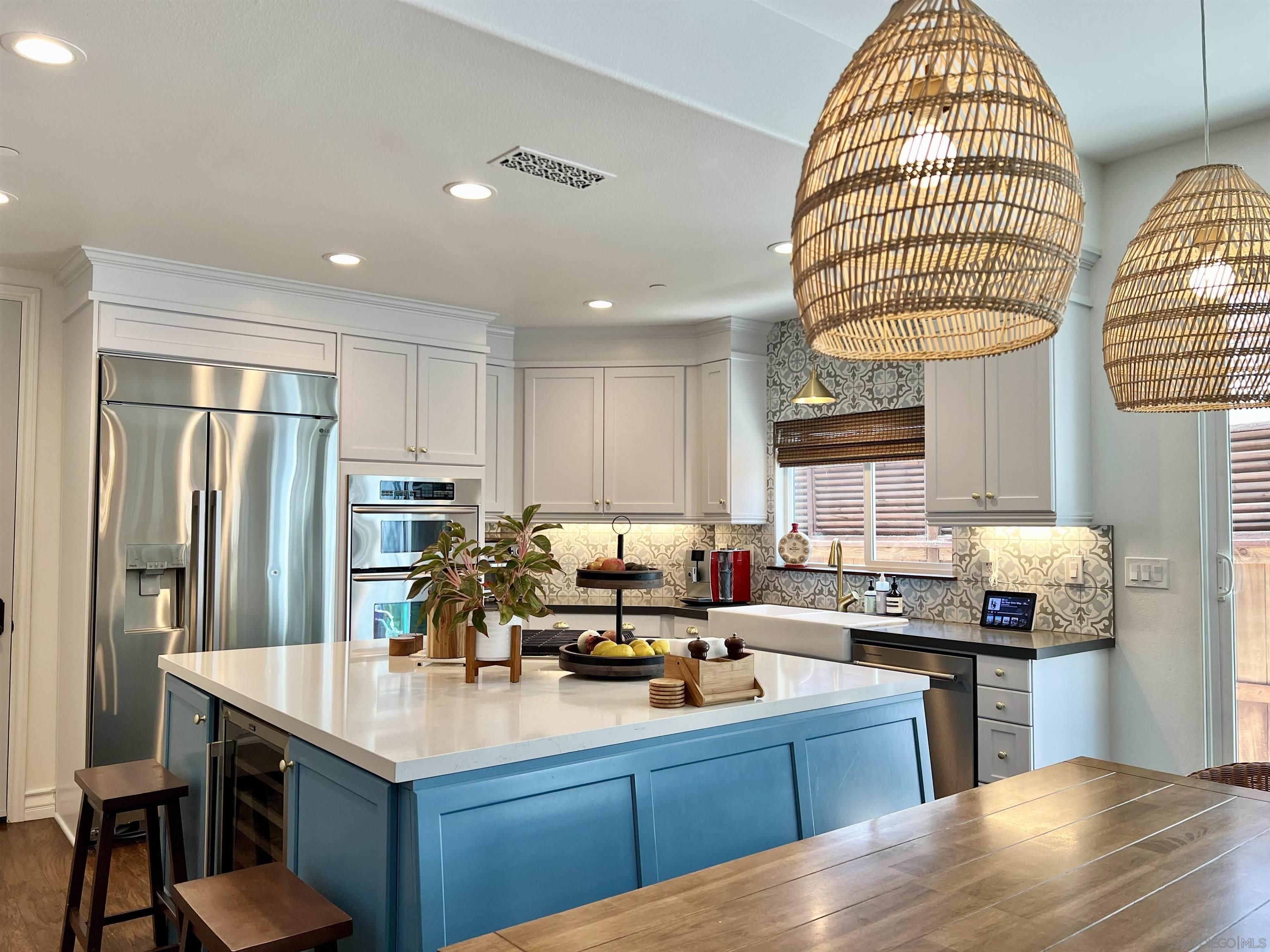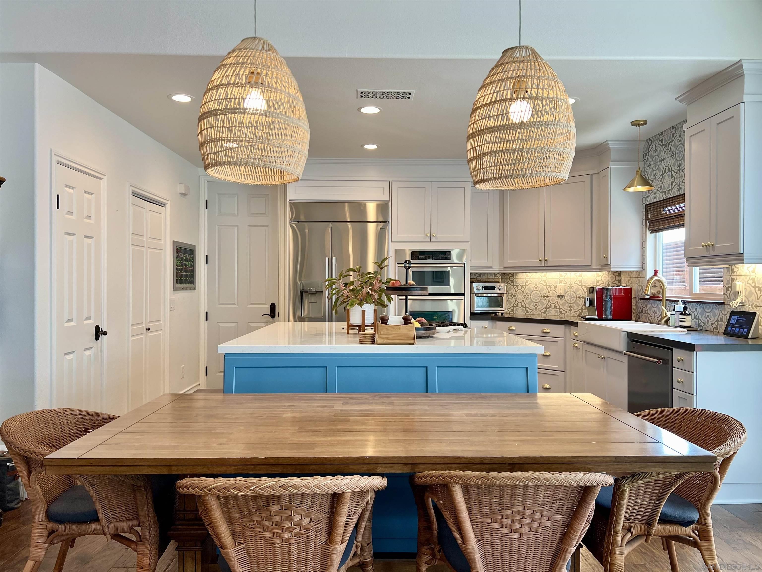 Discover the epitome of coastal living in this exquisite Solana Beach retreat. Walking distance to local beaches, shops, eateries and more. This 4 bedroom, 3 bath house blends luxury and convenience. The inviting foyer leads to an expansive great room connected to a chef's kitchen with custom island banquette. First floor features a private bedroom with sliders opening to the front patio, offering a tranquil sanctuary. The second floor unveils the master retreat boasting ocean views stretching to Swamis point. Indulge in the spa-inspired master bathroom, while two additional bedrooms and a spacious bathroom provide comfort and privacy. The third floor presents a versatile loft space, offering endless possibilities for a home office, media room, or yoga retreat, all with breathtaking ocean vistas. Outdoor living is a dream with multiple patios, including a side patio and an ocean-view deck, perfect for soaking in the coastal ambiance. The custom-built elevated Ipe wood deck provides an ideal setting for al fresco dining or basking in the sun. An outdoor shower offers convenience after a day at the beach, while the garage boasts epoxy flooring, storage racks, and an EV car charge outlet. Fully furnished with tasteful decor and high-end appliances, including a 77 UHD Sony TV and Control4 system, this home is an entertainer's delight. Commercial Wi-Fi and whole-house water filtration add modern conveniences, ensuring comfort and peace of mind. Whether you desire a furnished sanctuary or a blank canvas to fulfill your vision, this Solana Beach gem awaits your personal touch