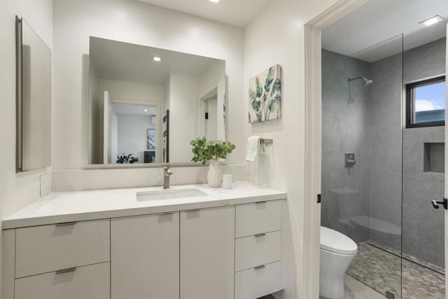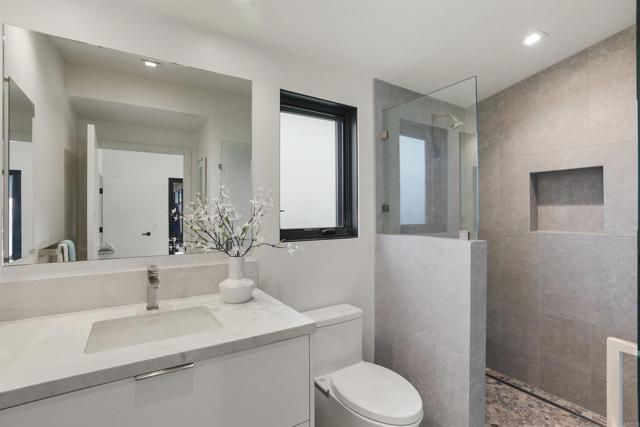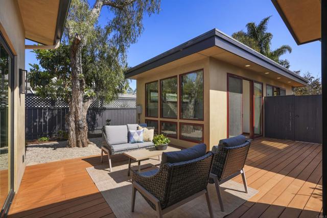 All new. Open concept, & modern. Beautiful oak floors. Gourmet kitchen. Gorgeous LR space opens to deck & patio through sliding glass door. Primary BR with oak wood floors, tall ceiling, & sliding glass door looking out to private deck, patio & office. Second ensuite bedroom with beautiful bath area. Separate elegant office off patio. ADU is 1000 sq feet. Separate office is 194 square feet. ADU is part of .27 lot.