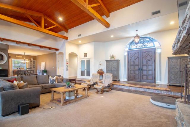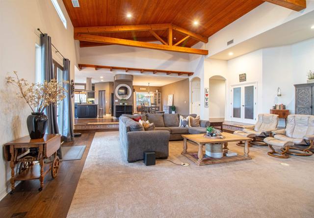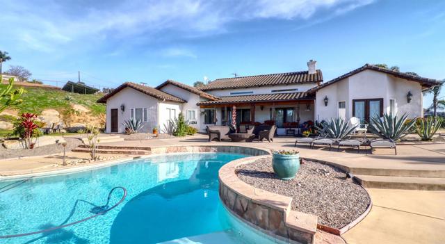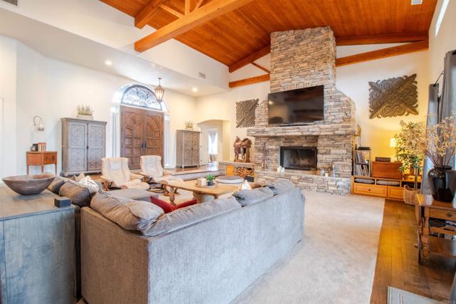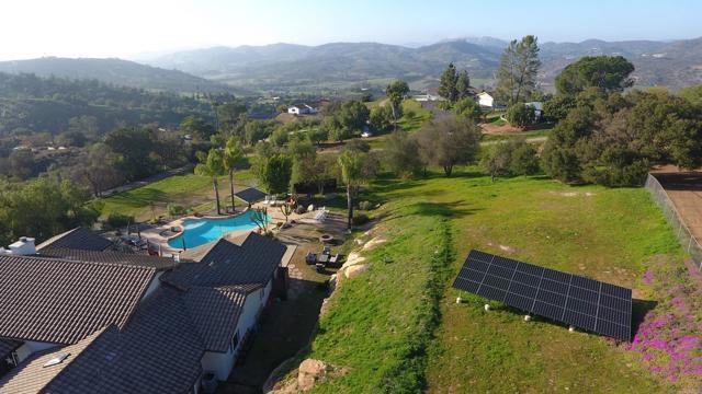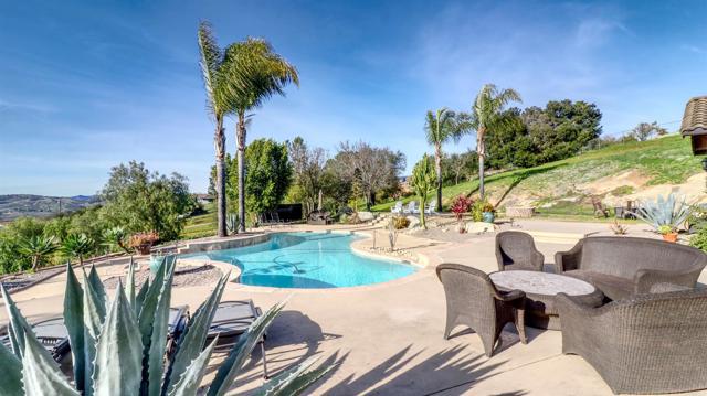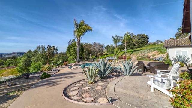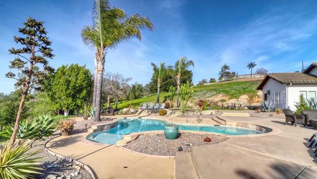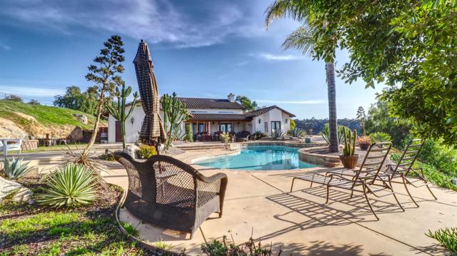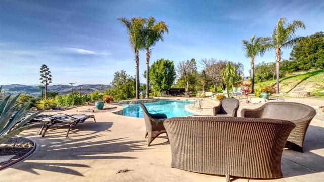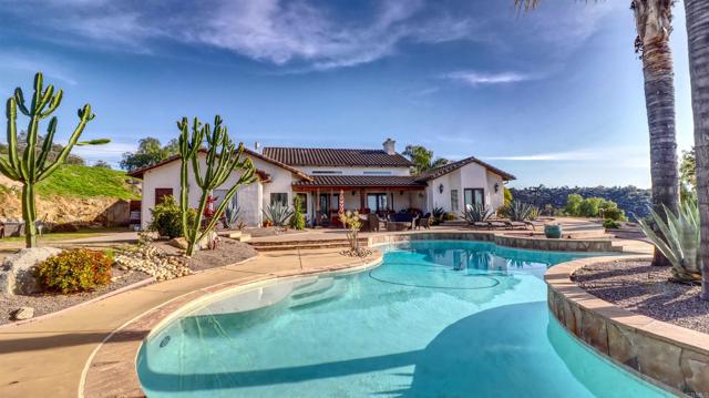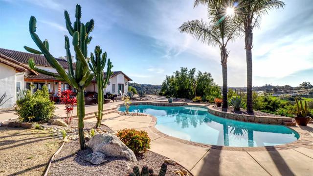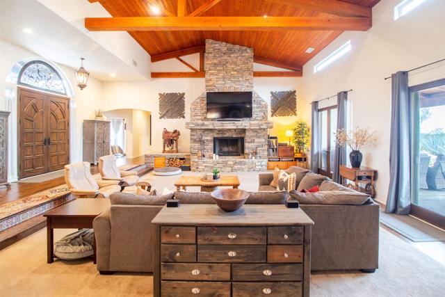 Welcome to Valley s View An Equestrian & Entertainer s Dream If horses could talk they d tell you this property isn t just a home it s a lifestyle. Nestled in the peaceful foothills of Valley Center, this custom single-story estate offers luxury living with land, flexibility, and charm that s hard to find. Step inside and you re greeted by soaring 18-ft exposed beam ceilings and an open-concept layout that flows seamlessly into sunset views through double French doors. At the heart of the home is a dramatic stone fireplace perfect for cozy nights and quiet mornings. The private primary suite features a spa-style bath with a jetted tub, walk-through closet with barn doors, and panoramic views that ll make you forget you re still in Southern California. The kitchen offers newer appliances, a cozy morning TV nook, and effortless access to the outdoor living spaces where the real magic happens. Resort-style amenities include a sparkling pool with Baja shelf, fire pit, outdoor shower, covered patio, and low-maintenance landscaping made for golden hour gatherings. For the equestrian at heart (or future hobby farmer), the property features a 3-stall barn with a tack room, space for large turnout pens, and a shaded riding arena plus vehicle access from the easement road for added convenience. Currently used as a workshop, this flexible space is ideal for animals, gardening, storage, or creative projects. The tack room? Perfect for tools, toys, or yes saddles and hay. And then there's the secret sauce: a fully graded lower pad with its own access, ready for an ADU, guest house, arena, or even income-producing rental. The oversized driveway fits at least 11 vehicles, RVs included. Additional perks include owned solar (for both home and pool), new 3-zone HVAC systems, new garage doors, a huge attic storage space, and a dedicated electrical panel prepped for backup power. Whether you're looking to build, host, ride, relax, or generate income this one-of-a-kind property gives you the freedom to do it all. Come experience Valley s View for yourself. He ll be waiting.Interested in this Listing?