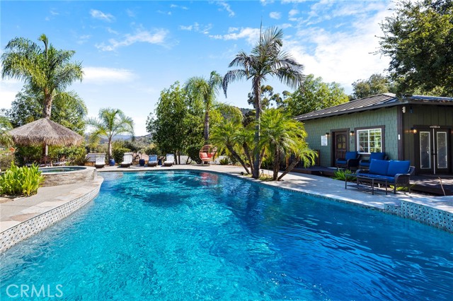MAIN HOME + GUEST HOME * POOL/SPA * PAID SOLAR * VIEWS! Resort Style Living at this Spectacular Estate in private gated community of only 4 homes. NO HOA! Dive into luxury in your entertainment sized saltwater pool with 50-foot slide & large spa. Outdoor kitchen w/ built-in BBQ, wood-burning pizza oven, fridge & more. Custom palapa complete with table & surround sound system. Plenty of room for entertaining & lounging in this Outdoor Oasis. Enjoy a game on the newly refinished pickleball court, practice your swing on the putting green, or relax in the gorgeous custom-built timber-framed pool house. Casita/Pool House is 350sf with a Murphy bed, full bath, & beautiful kitchen. This 2nd home offers Airbnb potential or use as guest house. Main home is 4bdrm, 3.5 bath, plus office & theatre room. The home lives like a 1-story with all bedrooms downstairs. Upstairs features a bunk room, home theatre/game room, full bath, & huge balcony with stunning views! The updated kitchen is a chef s dream with custom Alderwood cabinets, Quartzite counters & backsplash, 48" Thermador Range with grill & griddle, custom range hood, dual Dacor built-in ovens, built-in fridge, large pantry, & custom breakfast nook with built-in table & french doors leading to outdoor covered patio. Huge Great Room with gorgeous fireplace & built-in custom cabinets, open to the kitchen with tons of room to entertain. The piano room, dining room floors, and stairs are all built from Australian Mahogany. Entry & main floors are Peruvian Travertine. Spacious Primary Suite includes a fireplace, window seat, & doors leading to the covered patio. Custom walk-in closet, large ensuite bathroom with dual sinks, vanity, walk-in shower with dual heads, & large soaking tub. 3 additional bdrms & office downstairs. Upstairs includes a large theatre room with multi-level seating, full bathroom, & bunk room w/ extra storage. No expenses spared in the upkeep & updating of this gorgeous home. Oversized attached 4-car garage w/ epoxy floors plus an 800sf boat garage/workshop with epoxy floors. Huge laundry room with sink, whole house water filter, 24 PAID solar panels, tankless water heaters, central vacuum, house is smart wired, surround sound in great room and theatre, alarm system, mature fruit trees, greenhouse with raised garden bed & irrigation, metal carport for tractors/equipment, a treehouse & zipline, and ample space for RV parking or horse corral. Live Your Dream in this Amazing One-of-a-Kind Property!Interested in this Listing?