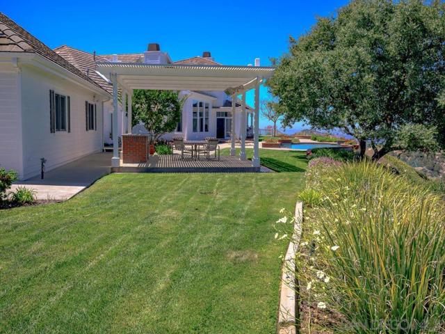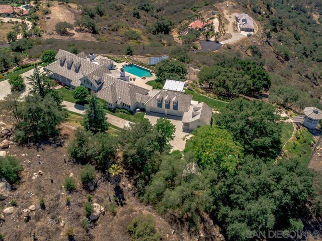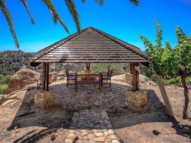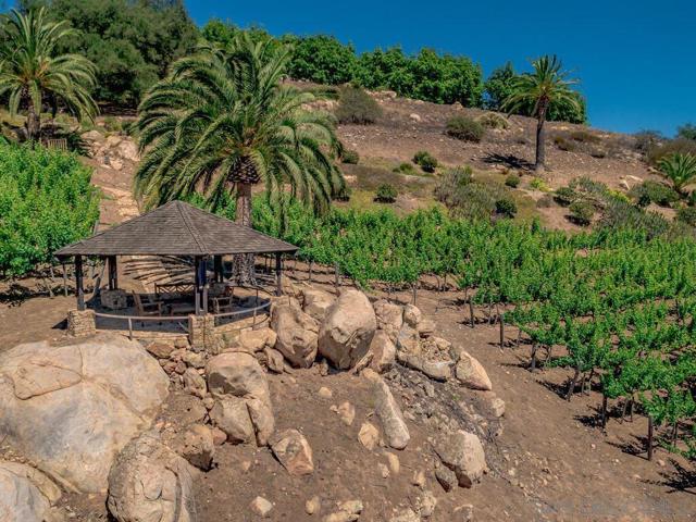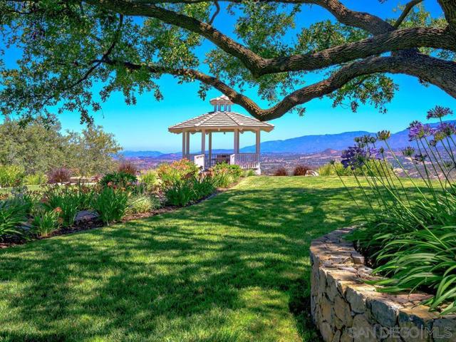 Unbelievable 240degree sweeping views for miles! Sitting prominently atop one of the highest peaks in Ridge Ranch, this custom estate offers something for everyone. High ceilings, expansive windows, stunning grounds and a breathtaking gazebo that has been the focal point of weddings. Vanishing edge pool, spa, large detached guest house, built-in bbq, 2 fully owned solar systems, auto-back up generators, and a productive 20year old Sauvingnon blancBlanc vineyard that produces between 3-5 tons of grapes per year. Just a few minutes from the 15 freeway, this expansive estate offers the beauty and easthetics of a winery retreat and is just moments from the fine dining, arts & entertainments found in bustleing downtown Escondido. Architectural Style: Custom Built View: Custom Built Equipment: Dryer,Fire Sprinklers,Garage Door Opener,Pool/Spa/Equipment, Satellite Dish, Shed(s), Vacuum/Central, Washer, Water Filtration Sewer: Septic Installed Topography: ,RSLP,GSL,SSLP Guest House Est. SQFT: 500Interested in this Listing?