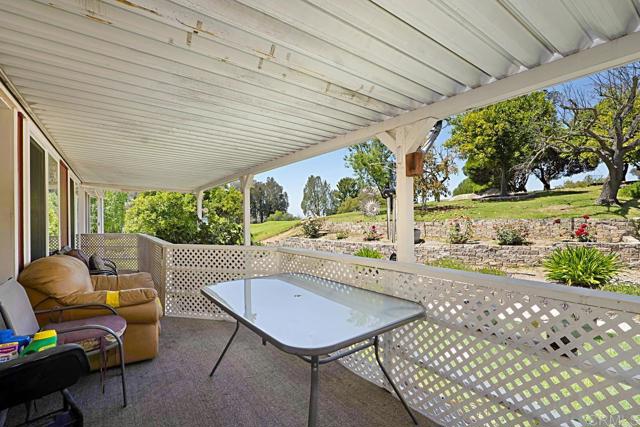 LIVE RIGHT ON THE GOLF COURSE!! Please come and see this lovely 2 bed/2 bath 1976 manufactured home that has 1344 esf and is listed for only $169,000!!! Located in Skyline Ranch Country Club, a premier Senior Park that is located in the foothills of Valley Center. It includes a lovely back yard with mature fruit trees including an orange, lemon, lime, grapefruit, and a tangelo. There is a beautiful rose garden, an area to garden, and a nice storage unit. The home has a screened porch perfect for dining or perhaps an exercise room. A pellet stove warms the living room plus adds nice ambience. The covered carport offers side by side parking. This home is located in Skyline Ranch Country Club, a premier Senior Park that sits in Valley Center. Currently offering free golf to all residents, full clubhouse use, dog park, gym, senior community, and much more. Skyline Ranch is a land leased park where the monthly space rent here is 1600.00. Please come and see this amazing home.Interested in this Listing?