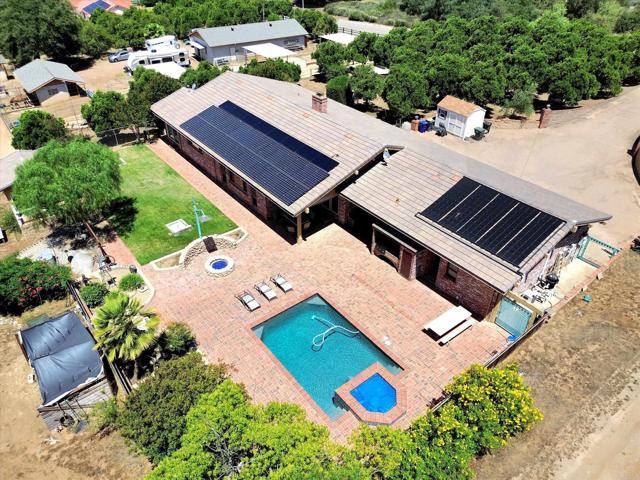 Must see to appreciate all upgrades and added value. Updated well-maintained custom-built brick home, spacious rooms, open wood beam ceilings, new flooring. Kitchen and master bathroom recently upgraded w new counters, cabinets, appliances. New concrete roof. Paid solar and solar heated pool, backyard patio designed for entertaining. Bring horses, 2.54 ac level double fenced w 3 access gates, includes 140 x 110 arena w viewing deck, sprinkler system and lights. 6 pipe corrals, concrete block well-built 2 stall barn w tack room. Concrete block 1800 sq ft workshop with 220, water and office. Plus, nicely landscaped lot including orange grove appx 60 trees and family fruit tree orchard in back. Room for RV, Also has an undeveloped well cased no pump. At the end of a quiet road no traffic.Interested in this Listing?