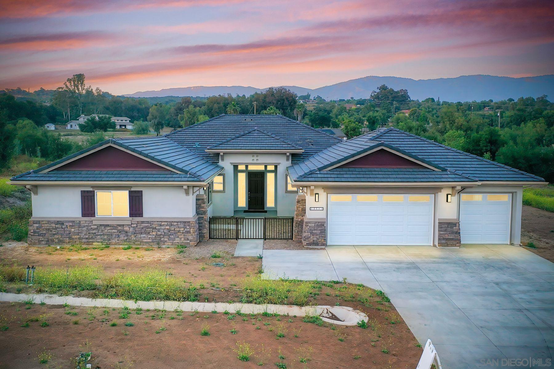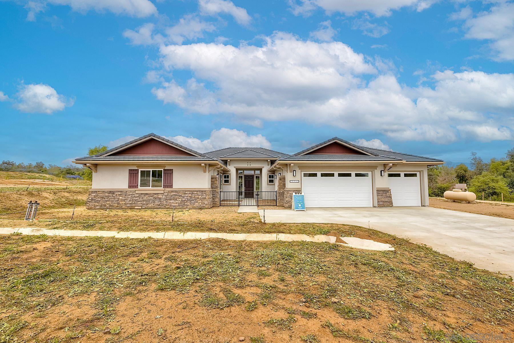 Model Home Now Available for Touring, New Construction, Ready for Move In, Phase 2 release. Set in the foothills of Valley Center, New Pointe Communities proudly presents our plan 1 single level estate home presented on 2 acre plus private and elevated lots. The plan 1 features high volume ceilings, a well appointed gourmet kitchen, large prep island, 4 Bedrooms, 3.5 baths, with 3,307 sq ft open floor plan with a rare 4 car garage. Great room with fireplace and high ceilings, led lighting, functional gourmet kitchen featuring white shaker cabinets and quartz countertops with generous center island and walk in pantry. An upgraded stainless steel appliance package, propane gas range and a built-in 48 inch GE Monogram Refrigerator/Freezer. Well appointed master suite and master bath with large walk-in closet, dual vanities and a luxurious freestanding soaking tub, elegant standalone shower. Two secondary bedrooms with a shared full bath and private ensuite bedroom excellent for in-laws or a home office with a private entrance. Functional outdoor entertainment space in California room accessed through gorgeous oversized sliding doors. Indoor laundry/mudroom with direct access to the 4 car tandem garage, owned solar system included. Home includes a 1 year fit and finish warranty, No HOA, very usable lots for an elaborate outdoor living space or swimming pool. Near local golf courses, wineries and casinos. Ask about interest rate incentives, new grocery stores completed soon.Interested in this Listing?