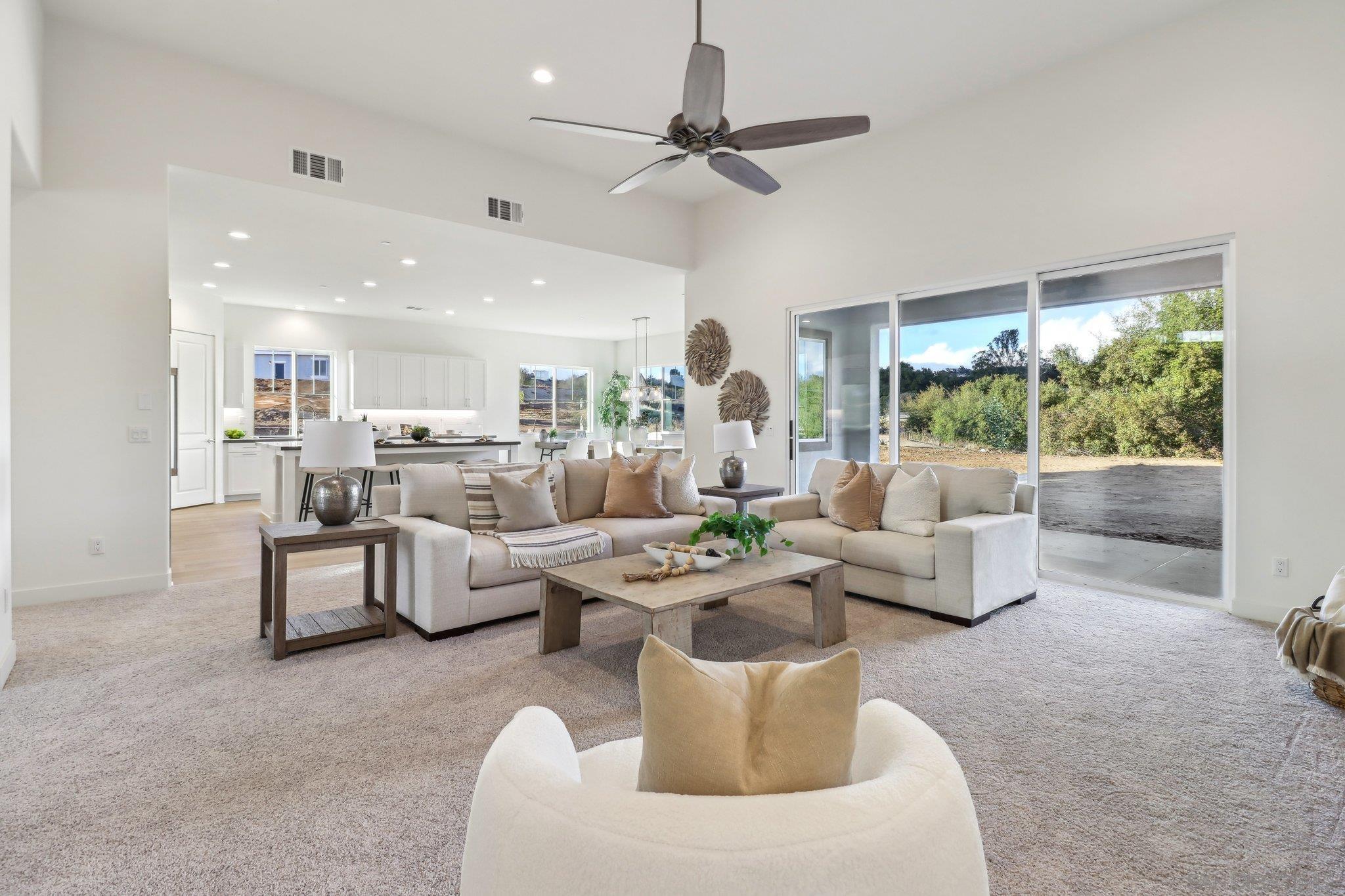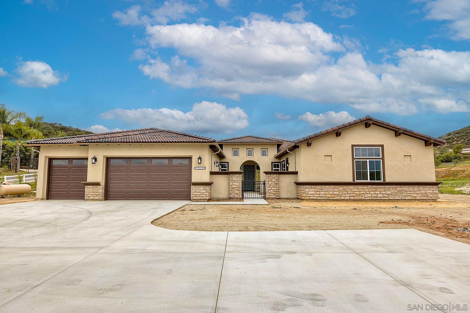 Model Home Now Open, New Construction, Phase 2 release, set in the foothills of Valley Center, New Pointe Communities proudly presents 3 private single level estate homes presented on 2 acre plus private and elevated lots. The plan 1 features high volume ceilings, a well appointed gourmet kitchen, large prep island, 4 Bedrooms, 3.5 baths, with 3,307 sq ft open floor plan with a rare 4 car garage. Great room with fireplace and high ceilings, led lighting, functional gourmet kitchen featuring white shaker cabinets and quartz countertops with generous center island and walk in pantry. An upgraded stainless steel appliance package, propane gas range and a built-in 48 inch GE Monogram Refrigerator/Freezer. Well appointed master suite and master bath with large walk-in closet, dual vanities and a luxurious freestanding soaking tub, elegant standalone shower. Two secondary bedrooms with a shared full bath and private ensuite bedroom excellent for in-laws or a home office with a private entrance. Functional outdoor entertainment space in California room accessed through gorgeous oversized sliding doors. Indoor laundry/mudroom with direct access to the 4 car tandem garage, owned solar system included. Home includes a 1 year fit and finish warranty, No HOA, very usable lots for an elaborate outdoor living space or swimming pool. Near local golf courses, wineries and casinos. Ask about interest rate incentives and new grocery store completed soon. Ask about incentives for an April closing dateInterested in this Listing?