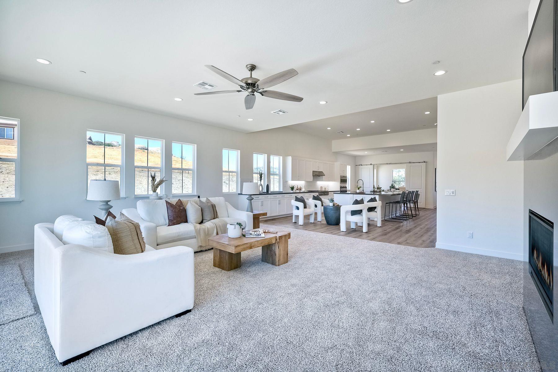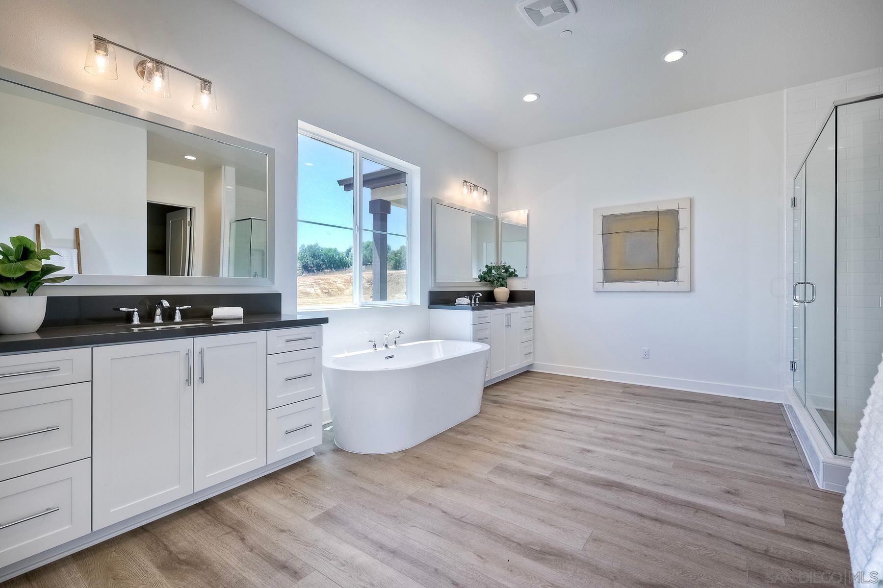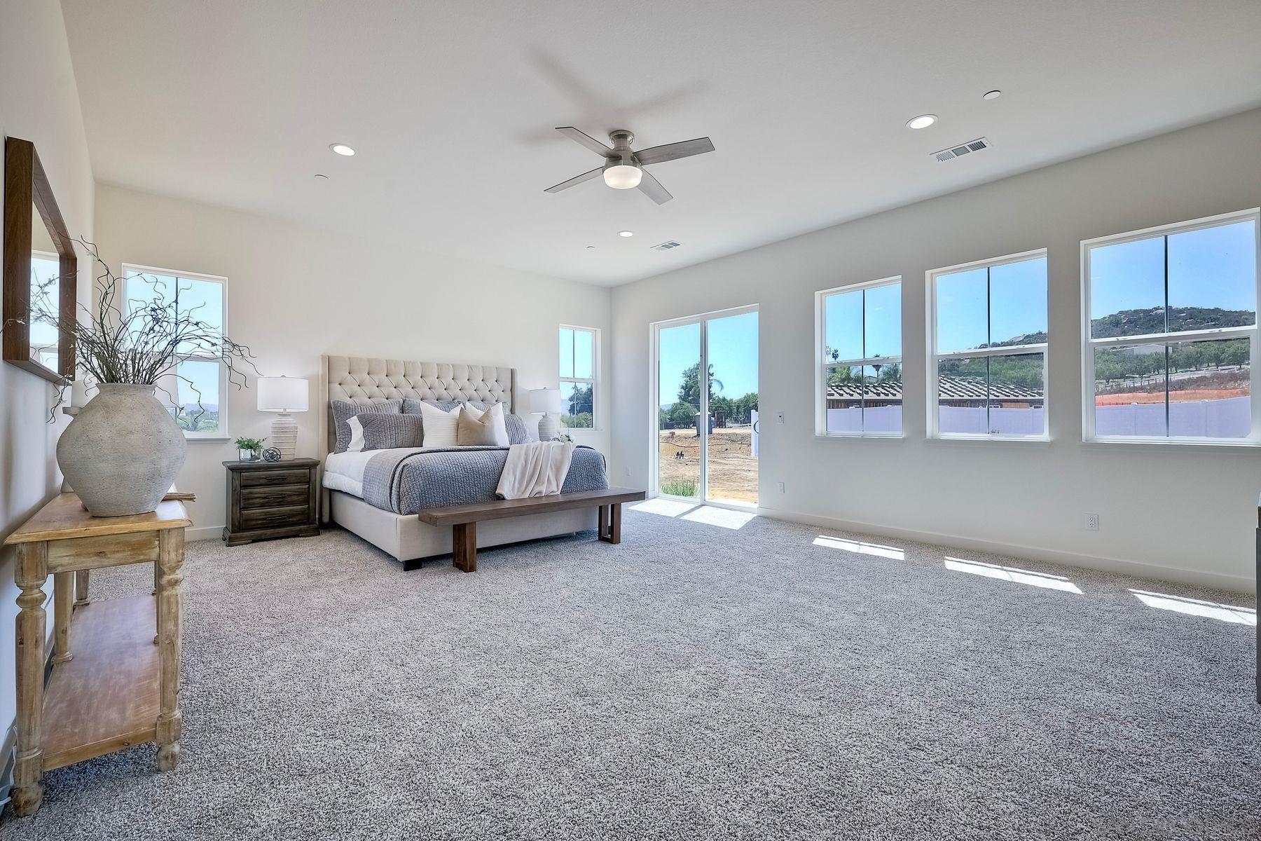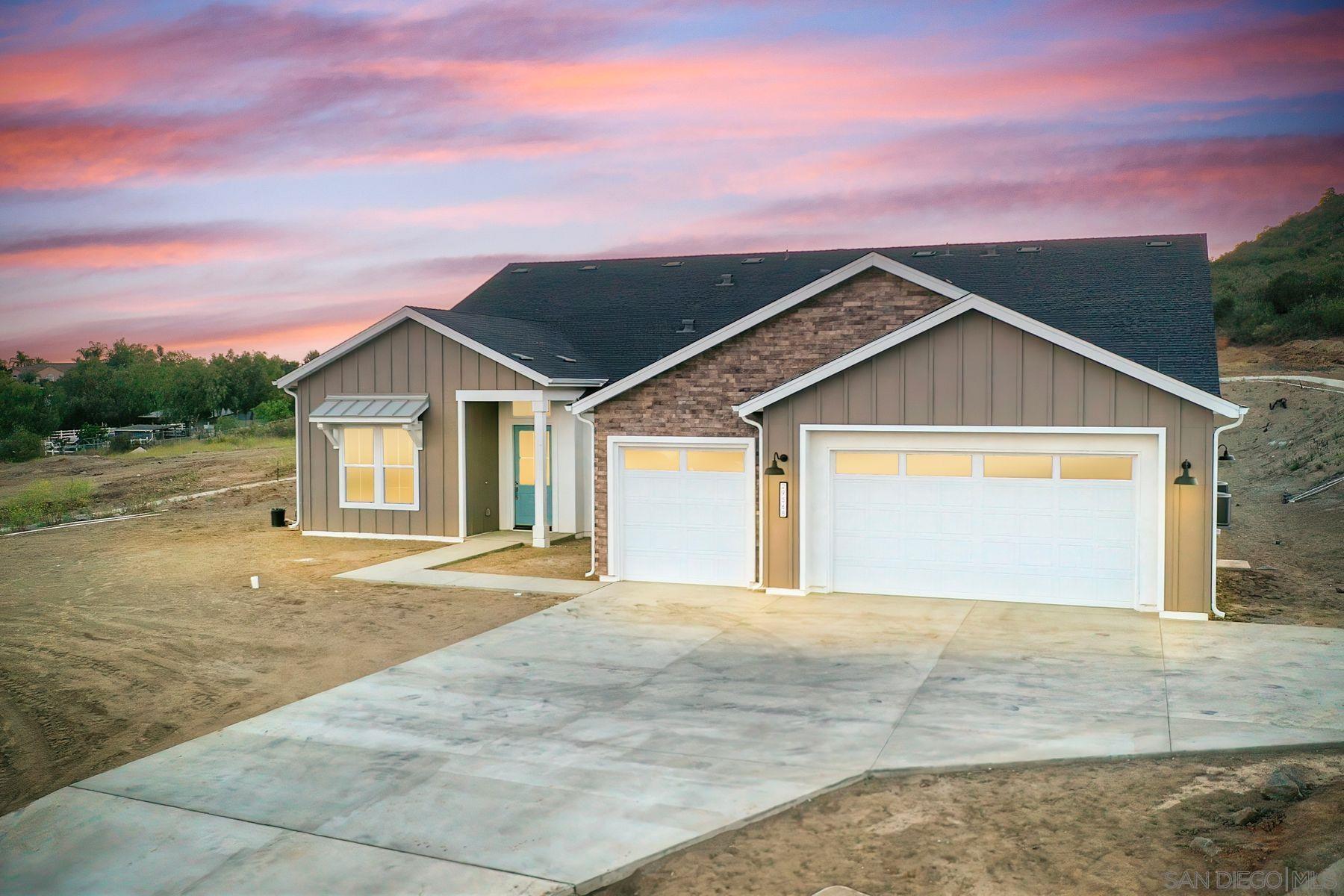 New Construction, Move in June 2025, surrounded with panoramic views, set in the foothills of Valley Center on a new Cul De Sac, New Pointe Communities proudly presents this final series of single level estate homes presented on 2 acre plus elevated lots. This home is the plan 3, the largest model, a rare 5 bedroom plus bonus room, the great room features a fireplace and high ceilings, led lighting, functional gourmet kitchen featuring white shaker cabinets and quartz countertops with generous center island and walk in pantry. An upgraded stainless steel appliance package, propane gas range and a built-in 48 inch GE Monogram Refrigerator/Freezer. Well appointed primary suite and master bath with large walk-in closet, dual vanities and a luxurious freestanding soaking tub, elegant standalone shower. Two secondary bedrooms with a shared full bath and two ensuite bedrooms with private full bathrooms. Functional outdoor entertainment space in the California patio outdoor sitting area accessed through gorgeous oversized sliding doors. Generous indoor laundry room with sink and storage, owned solar system included. Home includes a 1 year fit and finish warranty, No HOA room for RV, Boat and Trailer parking, very usable lots for an elaborate outdoor living space or swimming pool. Near local golf courses, wineries and casinos.Interested in this Listing?
