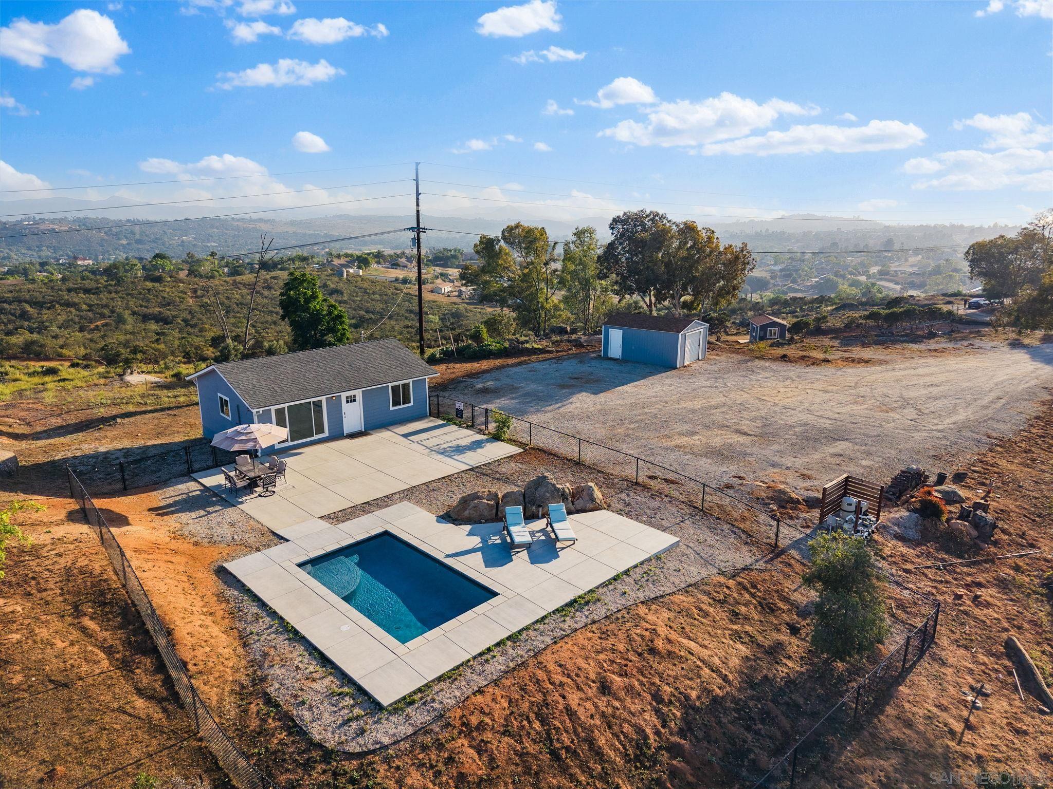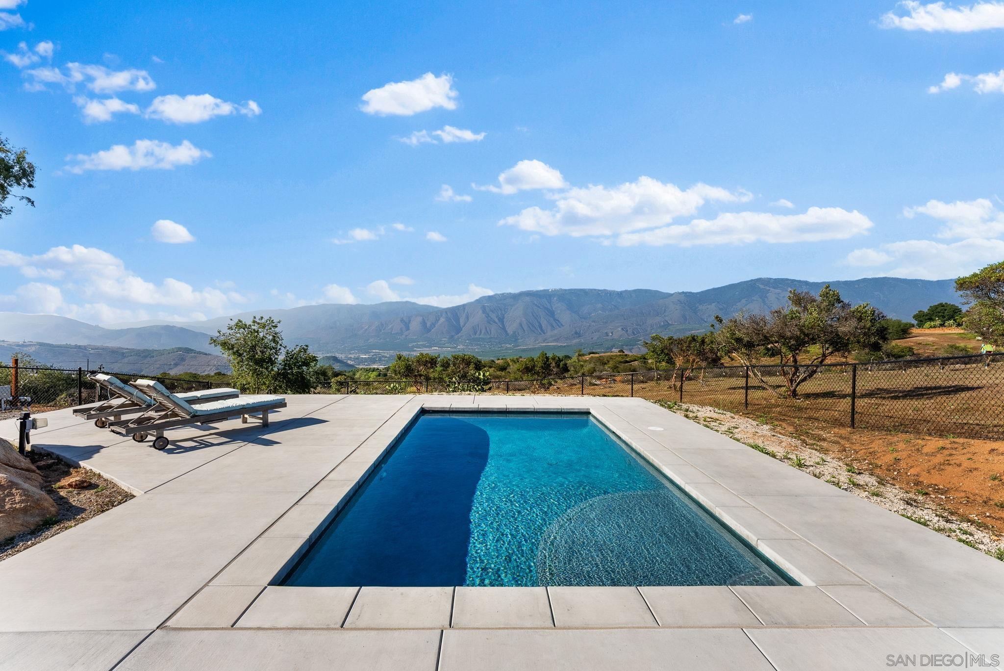 Modern country living on 37 private acres in scenic Valley Center! This custom-built home features a clean, contemporary design and breathtaking views from every window. Inside, the stylish kitchen offers new white cabinetry, stainless steel appliances, and a spacious dine-in island. Updated flooring runs throughout the home. The bright living room is anchored by a large custom window that perfectly frames the surrounding natural beauty and fills the space with light. A separate, stand-alone home office and a detached garage with extra storage provide flexible space for remote work or creative use. A custom pool with a large patio overlooks the valley an ideal place to unwind and take in the sunset as it reflects off the nearby mountains. Make this your primary residence, convert it into a guest house while building a larger custom estate, or explore the potential for developing multiple homes. With acres of open land, the possibilities are nearly endless whether for recreation, business ventures, hobbies, or future expansion. Located near other luxury home communities, this property offers privacy without sacrificing convenience close to top-rated schools, shopping, and dining. A rare blend of space, style, and opportunity ready for your vision.Interested in this Listing?