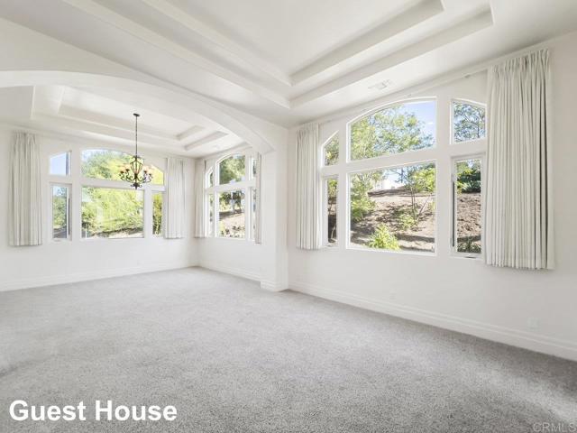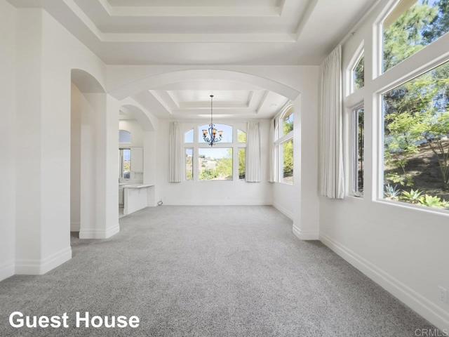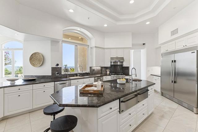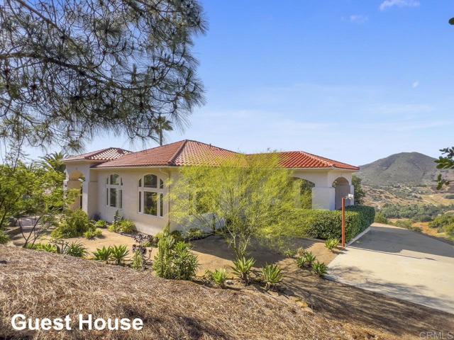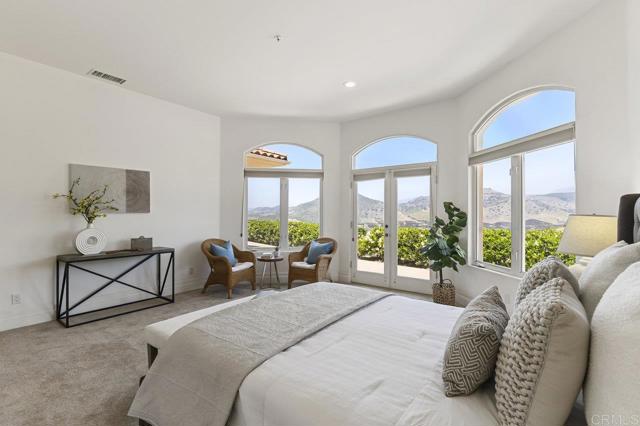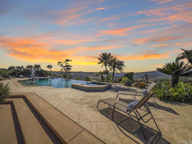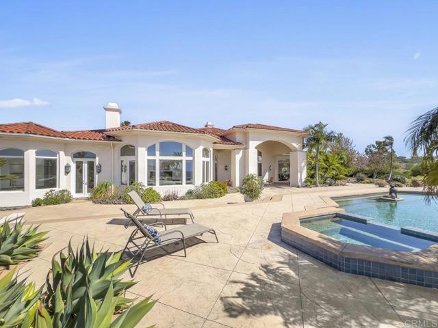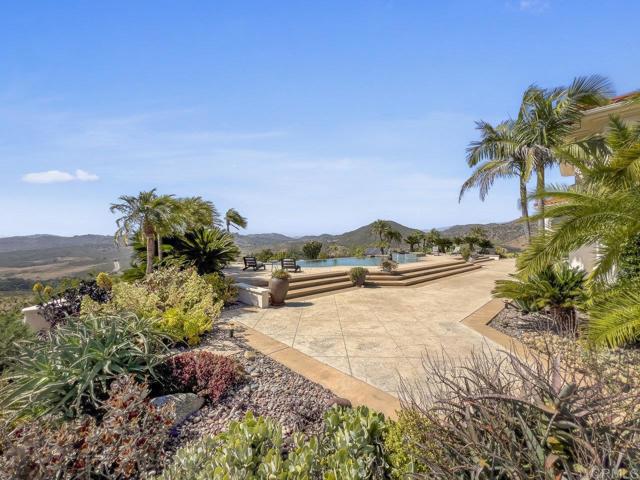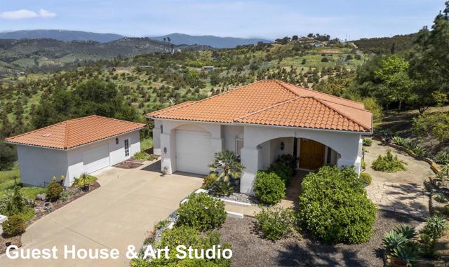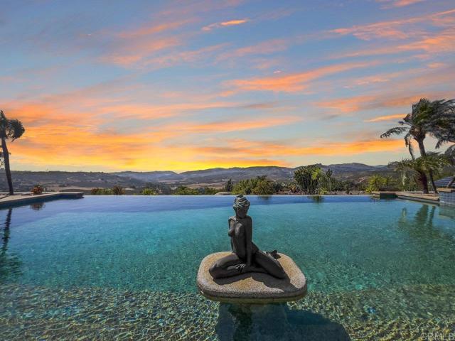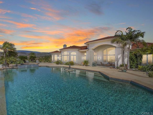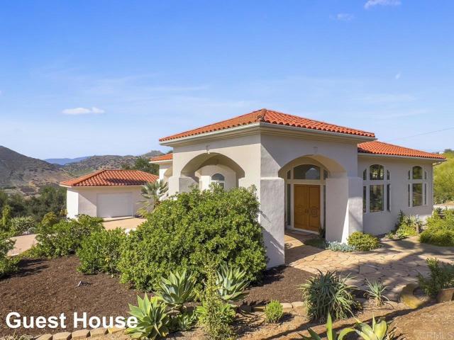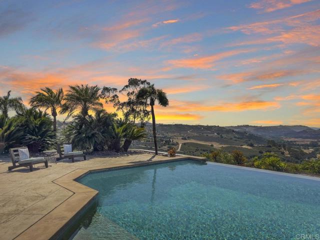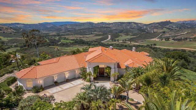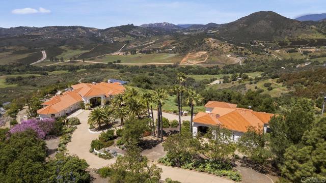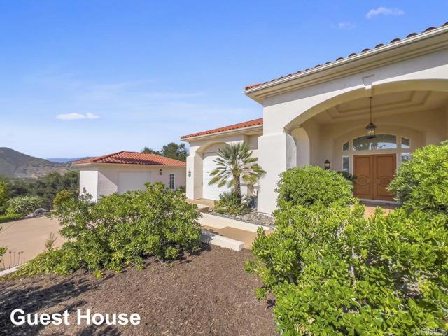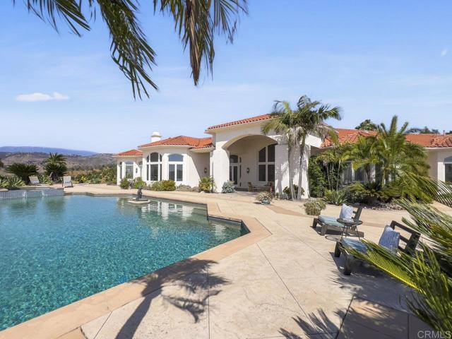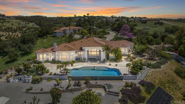 Overlooking the 900 acre Rancho Lilac Preserve, this property occupies a majestic hilltop, combining staggering views of the mountains delivering both privacy and elegance from the moment you enter the private gates. The striking custom-built retreat-like estate affords 9,000+ SF of unmatched scale and is comprised of the 4,995 SF main house with attached 1,500 SF garage and shop, separate 900 SF private guest house, an RV garage, storage building, greenhouse, pool, and 5.44 acres. The main residence is anchored by a dramatic entryway boasting beveled-and-leaded arched glass panels and sidelights. Upon entering the home, soaring 18-foot ceilings draw your eyes straight through to the horizon. A wall of windows frames the infinity-edge pool, creating a seamless visual connection to the panoramic sky and hills beyond. Enjoy amazing sunsets reflected in your infinity edge pool. The expansive covered porch can be accessed from the Dining Room, Library, and Primary Suite. The hand-crafted double-sided fireplace brings the Great Room and Library together, creating an environment of sophistication and class. The library features an intricately detailed ceiling and contains 7 custom bookcases made from South American Mahogany and inlaid with lighting to showcase your delicate art pieces or collection of literary works. The primary suite is a true sanctuary spacious, serene, and thoughtfully designed. Expansive windows provide panoramic views and fill the room with natural light. The spa-inspired bathroom features a steam shower, a jacuzzi tub, dual private water closets, each with sink and window, and a dedicated makeup vanity with a third sink. A generously sized walk-in closet with custom cabinetry offers beautifully organized storage, while separate exterior doors provide private outdoor access from both the suite and the connected gym/office.Additionally, there is a junior primary suite complete with its own walk-in closet, en-suite bathroom, and private exterior access ideal for extended guests or multi-generational living. A third en-suite bedroom offers versatility as a media room, home theater, or additional guest quarters. A separate dedicated office provides a quiet space for work or study. The kitchen is centrally located between the breakfast room and formal dining room, with large windows that bring in natural light and frame beautiful views. It features a 64-inch side-by-side refrigerator and freezer, two cooking areas a 6-burner cooktop with griddle and a separate 4-burner cooktop plus double ovens, dual dishwashers, and two warming drawers. A walk-in pantry with wine fridge, a built-in coffee bar, and plenty of cabinet space add to its everyday function and convenience. Both dining areas feature tray ceilings and are positioned to take full advantage of the surrounding scenery. The guest house is a spacious 1-bedroom retreat with cathedral ceilings, a full kitchen, comfortable living and dining areas, and a full bathroom. It also includes a private yard and an attached RV garage with dedicated laundry hookups making it ideal for extended stays or long-term guests. The property is well-suited for hobby farming or home gardening, with a variety of mature fruit trees, a greenhouse, raised garden beds, and a dedicated gardening shed. Whether you're growing citrus, avocados, or seasonal vegetables, the setup provides everything you need for a productive and enjoyable outdoor lifestyle. Crafted with exceptional attention to detail, the home features top-quality finishes throughout, including Smooth Venetian Plaster walls, imported granite, and custom wood cabinetry. Energy efficiency is enhanced with 50 owned solar panels, along with dedicated pool solar to maintain ideal swim temperatures nearly year-round. The resort-style vanishing-edge pool completes the picture of luxury and comfort. Rancho Larga Vista is a rare opportunity to own one of Valley Center s most distinguished estates.Interested in this Listing?