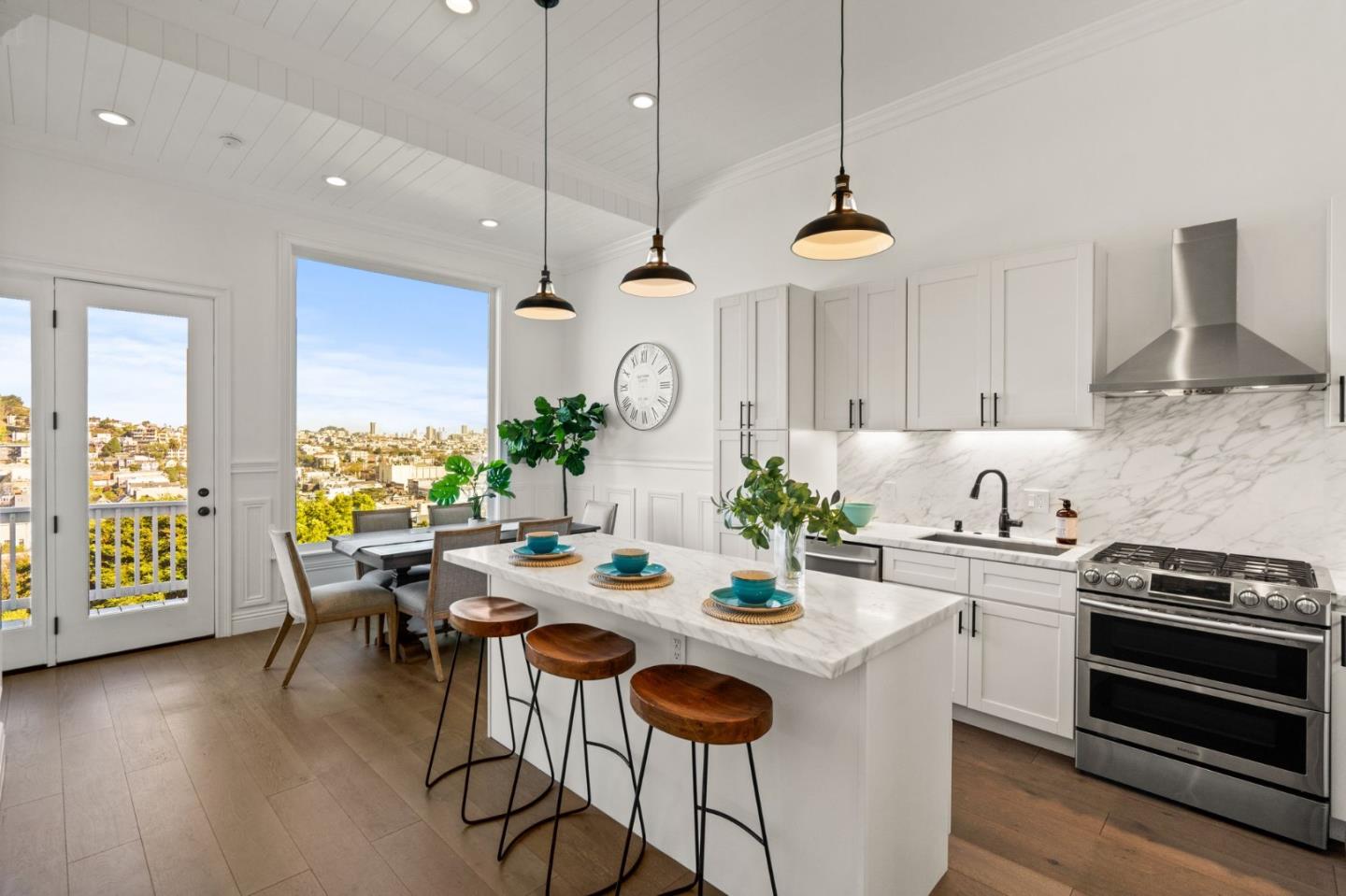 What an amazing view over San Francisco Financial District! This vacant duplex offers everything you can imagine! This refined property features vacant 2 units, each one with 2 BR &1BA. The upper unit has 12.5-foot ceilings, wall moldings, crown moldings, modern upgrades, new bathroom black/white designed tiles, a kitchen featuring marble countertops and an island. The downstairs unit is composed of an open kitchen, large dining and living room space and remodeled bathrooms. Engineered flooring is present throughout both properties. Both units have access to the charming and peaceful outdoor area where one can relax and enjoy some of San Francisco's best weather with family and friends. Both units have separate water heater ready for income use. This is a turnkey opportunity to either live there or rent out. Located in an exquisite part of Eureka Valley, just a step away from Castro, Market Street and all the vibrant restaurants. Welcome Home!Interested in this Listing?