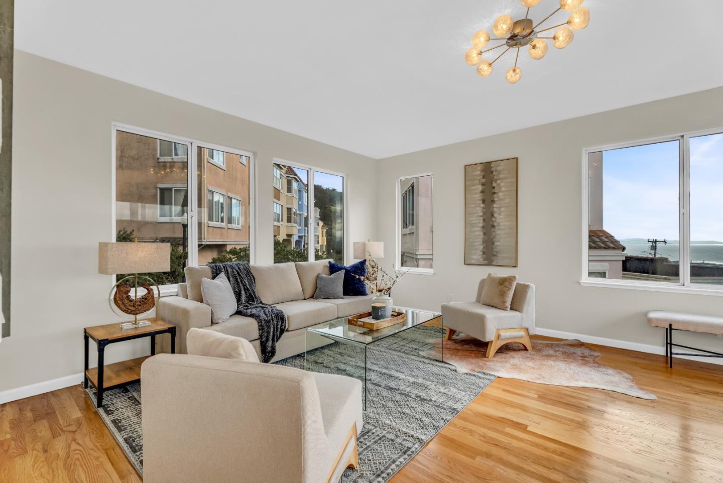 Nestled in a quiet neighborhood in SF, 59 Lois Ln offers an enchanting blend of tranquility & urban accessibility. Enjoy the abundant natural light & panoramic views of the iconic SF Bay from the large windows. One of our favorite things - all 3 bedrooms have their own attached FULL bathroom! This home is freshly updated w/ refinished hardwood floors, freshly painted kitchen cabinetry, new light fixtures & new coat of interior paint. The home begins at the front door on the 2nd story w/ access to the attached 2-car garage & the 1st bedroom w/ its full bath & taste of the home's bay views. Both downstairs beds have their own full, tiled bathroom & walk-in closet. From 1 bedroom, a sliding glass door opens into the backyard w/ beautiful greenery & space for outdoor seating. From the top story, enjoy a beautiful open floor plan w/ the home's dining room, living room, and kitchen, featuring plenty of storage space & stainless steel appliances. With skylightsInterested in this Listing?