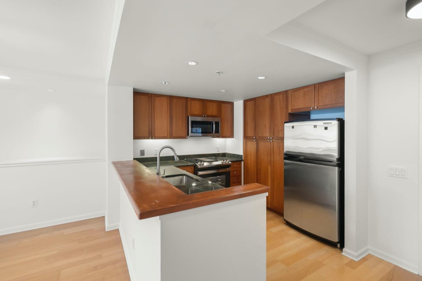 Feel greeted and invited as you step in to this light and bright, east-facing, gorgeous unit on the 10th floor. This unit includes views of the Bay Bridge and an open-concept living space, perfect for creating lasting memories with loved ones. Additional highlights include: an in-unit washer and dryer, plenty of storage space (including a separate storage unit downstairs) and a designated parking space. Experience city living at its finest at Bridgeview, a well-managed building with a heated pool, spa, fitness center, 24h Doorman, packaging delivery area and a sunroof deck with BBQ for grilling on the weekends. South Beach is one of SF's most dynamic neighborhoods, located steps away from the Embarcadero, Philz coffee, Luxfit Gym, Woodland Grocery shop and world class restaurants.Interested in this Listing?