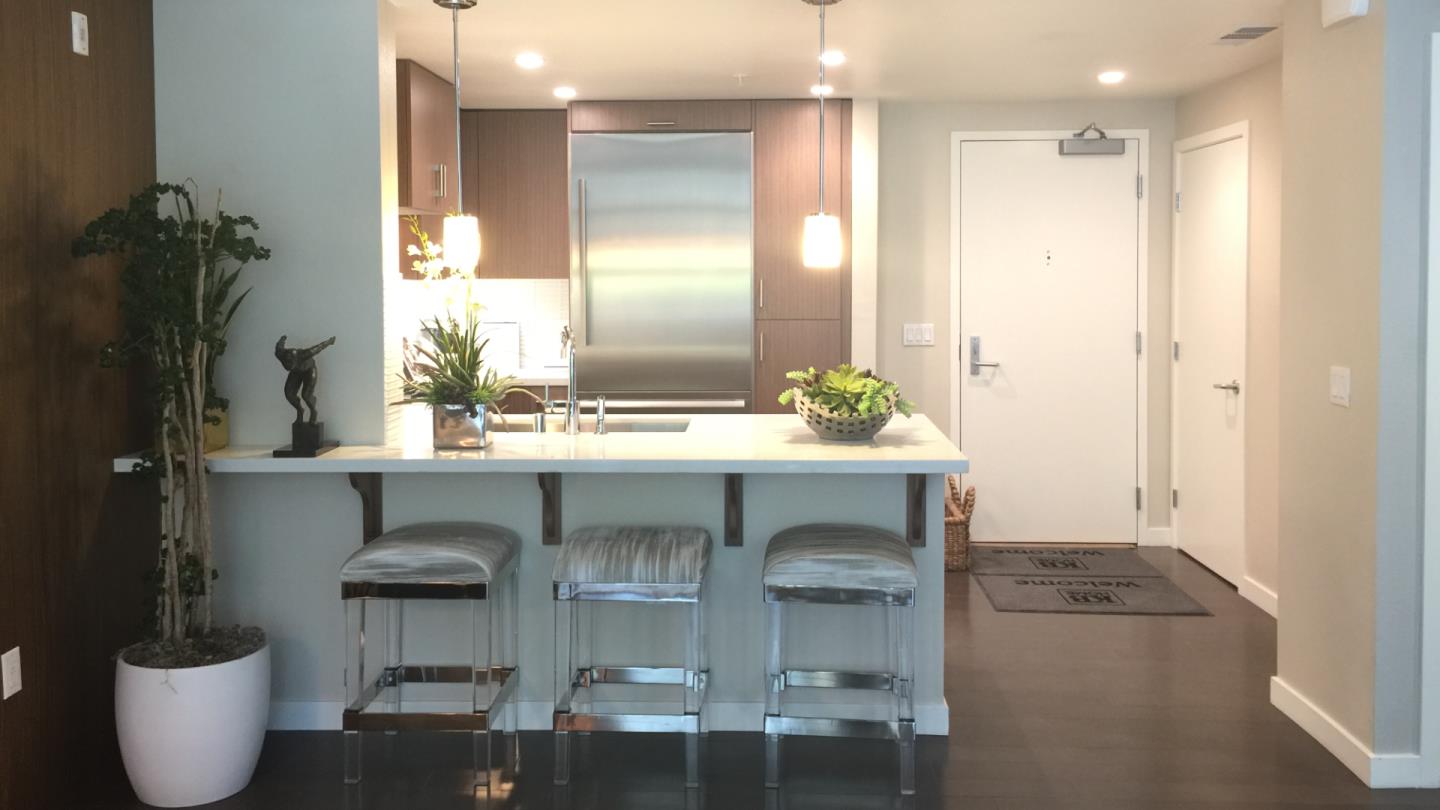 Former model home at The District in Lower Pacific Heights. Most sought-after neighborhood with a 97 walk score. A deeded parking space! Amenities include fitness center, a large landscaped interior courtyard, a sky terrace w/city views, built in BBQ and fireplace w/seating areas for entertaining, an attended lobby and owners lounge. Home features European style kitchens including Thermador built in refrigerators and Bosch stainless steel appliances, sleek Caesar stone counters with glass backsplash, upgraded wood veneer art wall and media wall unit at living room, upholstered headboard and designer light scones at master bedroom, in unit laundry with Bosch washer and dryer included.Interested in this Listing?