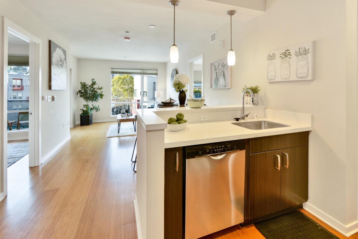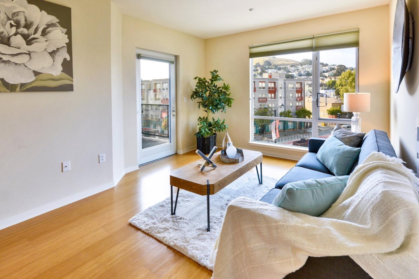 This 2-bed, 2-bath gem boasts abundant natural light, bamboo floors, a seamless living/dining area leading to a charming balcony. The kitchen features quartz counters and stainless steel appliances. The primary bedroom flaunts custom closets and a spacious bath, while the second bedroom offers versatility as an at-home office. Enjoy deeded underground parking, bike storage, CAT 5 wiring and superb common area provide residence an exceptional standard of living. Common areas elevate your living experience, with stunning Mission district and Bernal Hill views. Located near dining, shopping, 280 and 101 freeways, with in-unit laundry adding further convenience. Established as one of San Francisco's most select areas, the location is blocks from Bart, Precita Park, Bernal Heights Park while Google/Facebook Shuttle stops nearby.Interested in this Listing?