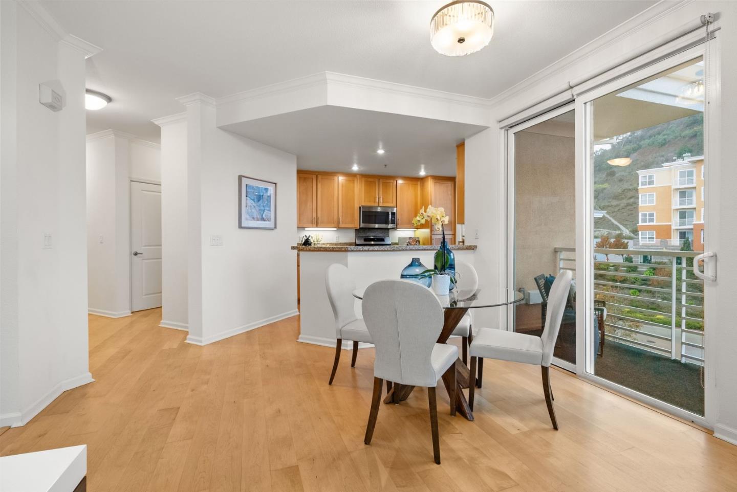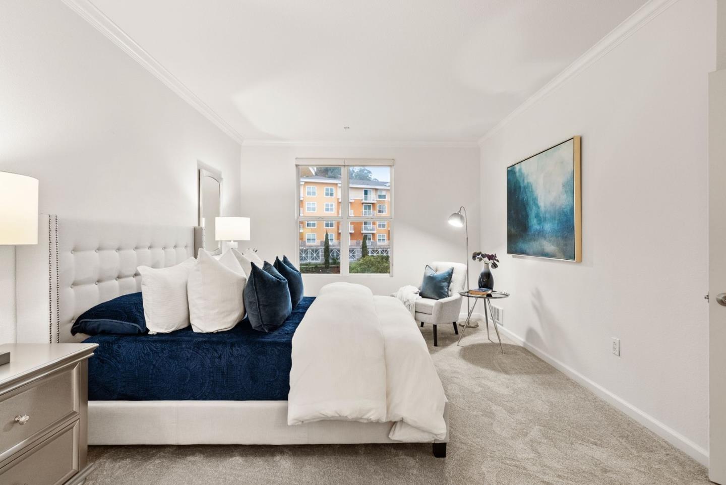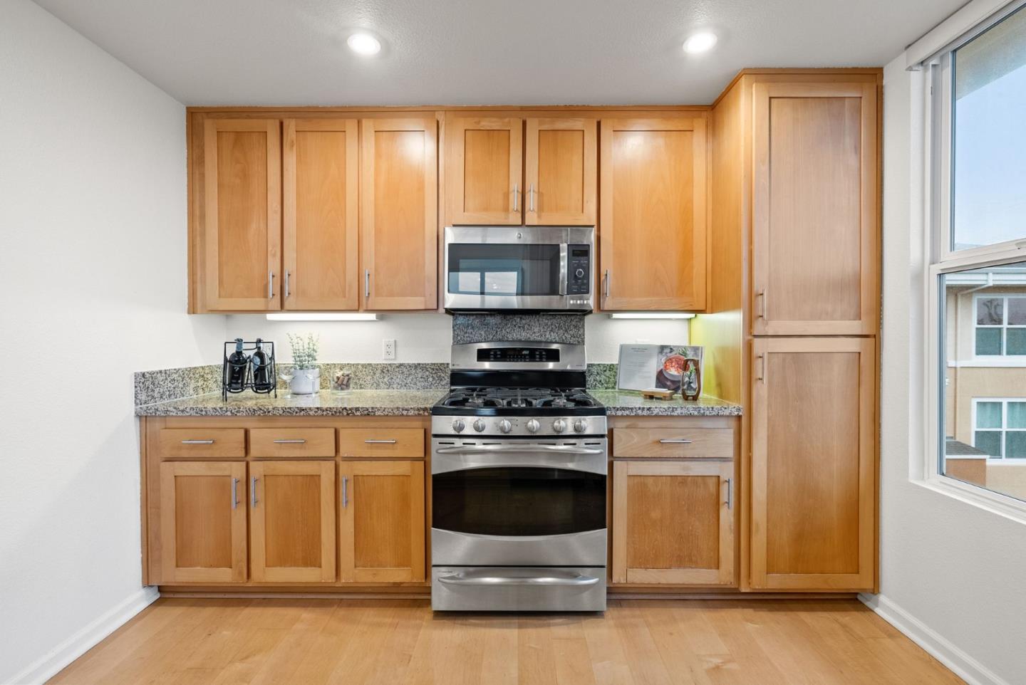 Discover the charm of this top floor, corner unit with 2 bedrooms and 2 bathrooms spanning 1106 sq. ft. Enjoy an abundance of natural light highlighting the wood floors and new carpet. The kitchen boasts maple cabinets, stainless steel appliances, granite countertops, and a gas range. Crown molding adds an elegant touch throughout. The primary suite offers a walk-in closet and double sinks. Relax on your balcony, located off the living room and enjoy peek-a-boo bay views from living room and second bedroom. Additional amenities include in-unit washer/dryer, one secured parking space, and a gated entrance to the complex. This is the perfect blend of comfort and style.Interested in this Listing?
