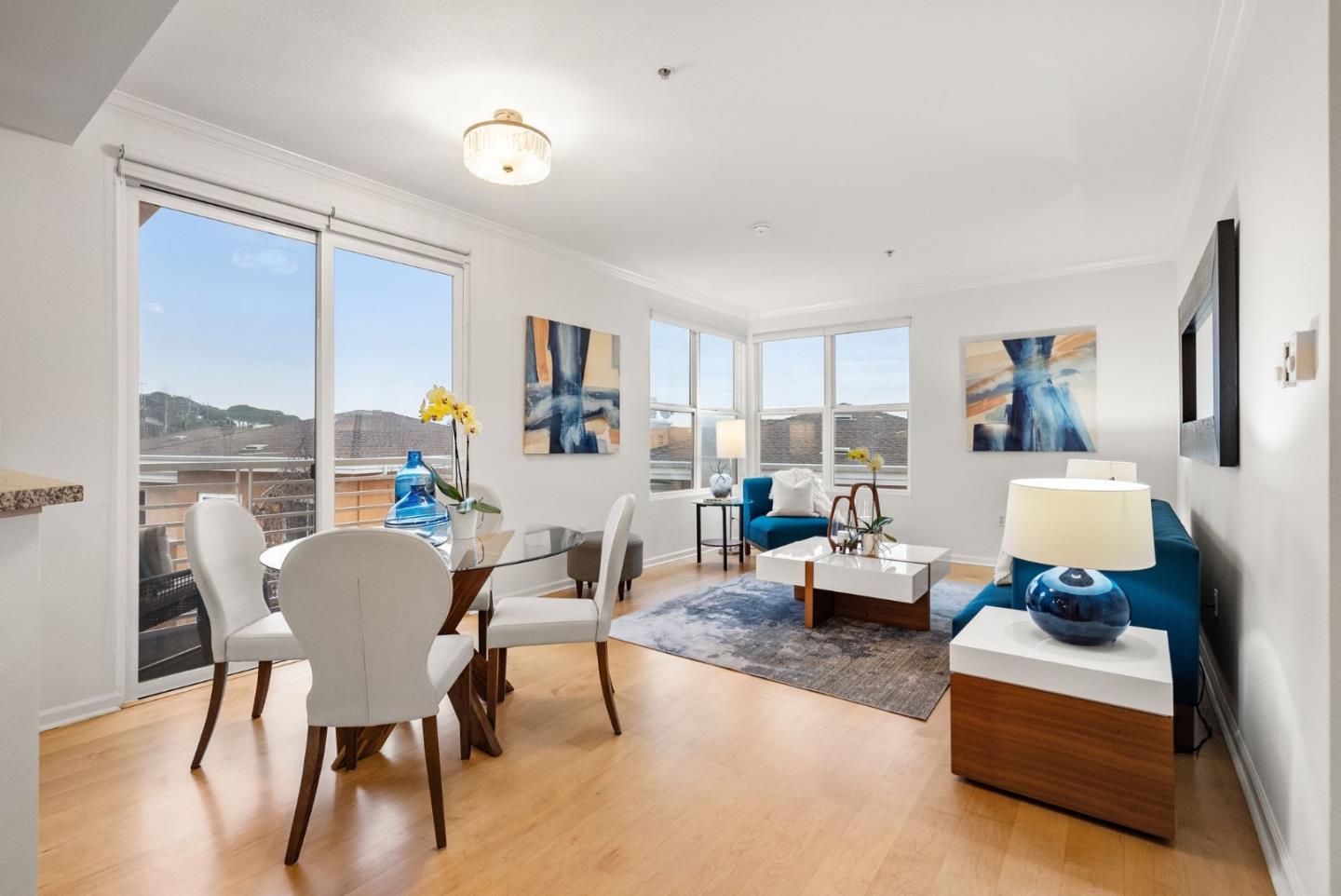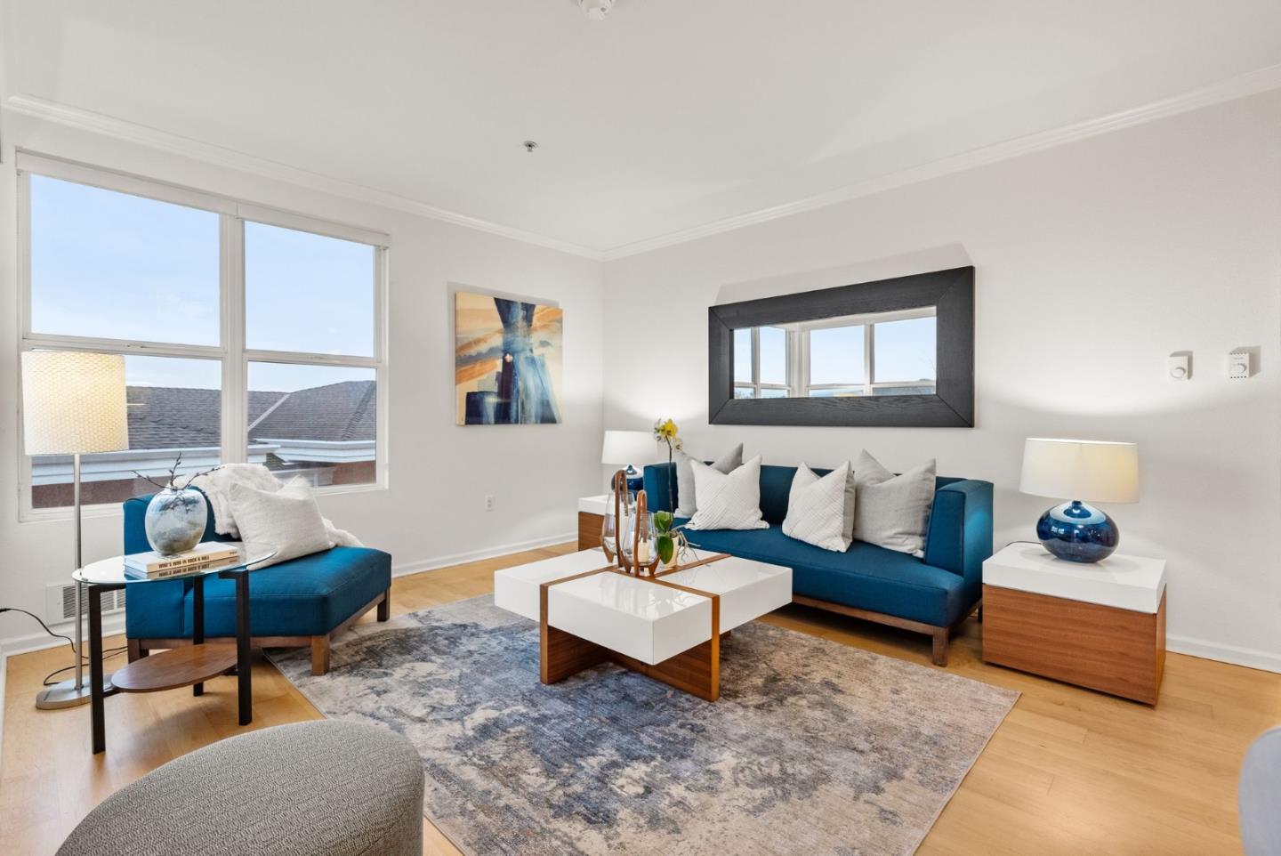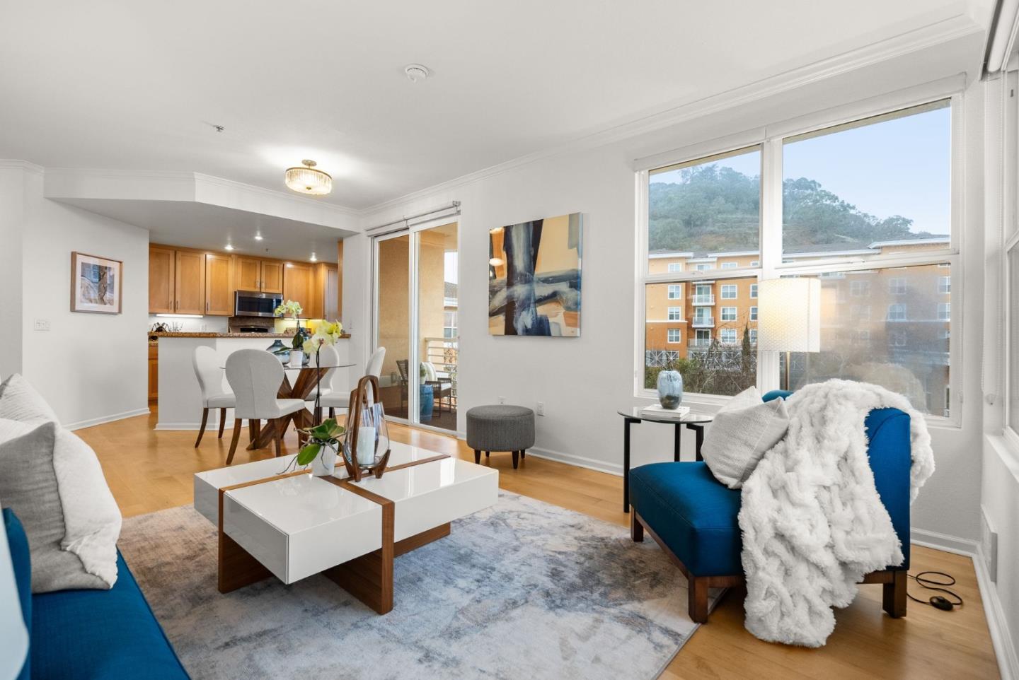 Discover the charm of this top floor, corner unit with 2 bedrooms and 2 bathrooms spanning 1106 sq. ft. Enjoy an abundance of natural light highlighting the wood floors and new carpet. The kitchen boasts maple cabinets, stainless steel appliances, granite countertops, and a gas range. Crown molding adds an elegant touch throughout. The primary suite offers a walk-in closet and double sinks. Relax on your balcony, located off the living room and enjoy peek-a-boo bay views from living room and second bedroom. Additional amenities include in-unit washer/dryer, one secured parking space, and a gated entrance to the complex. This is the perfect blend of comfort and style.Interested in this Listing?