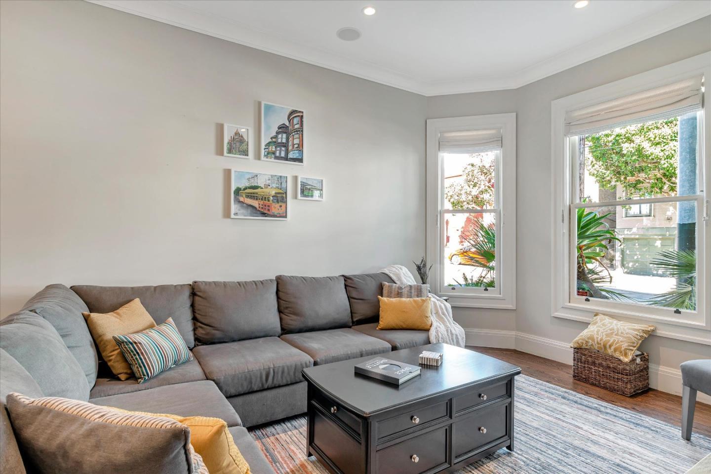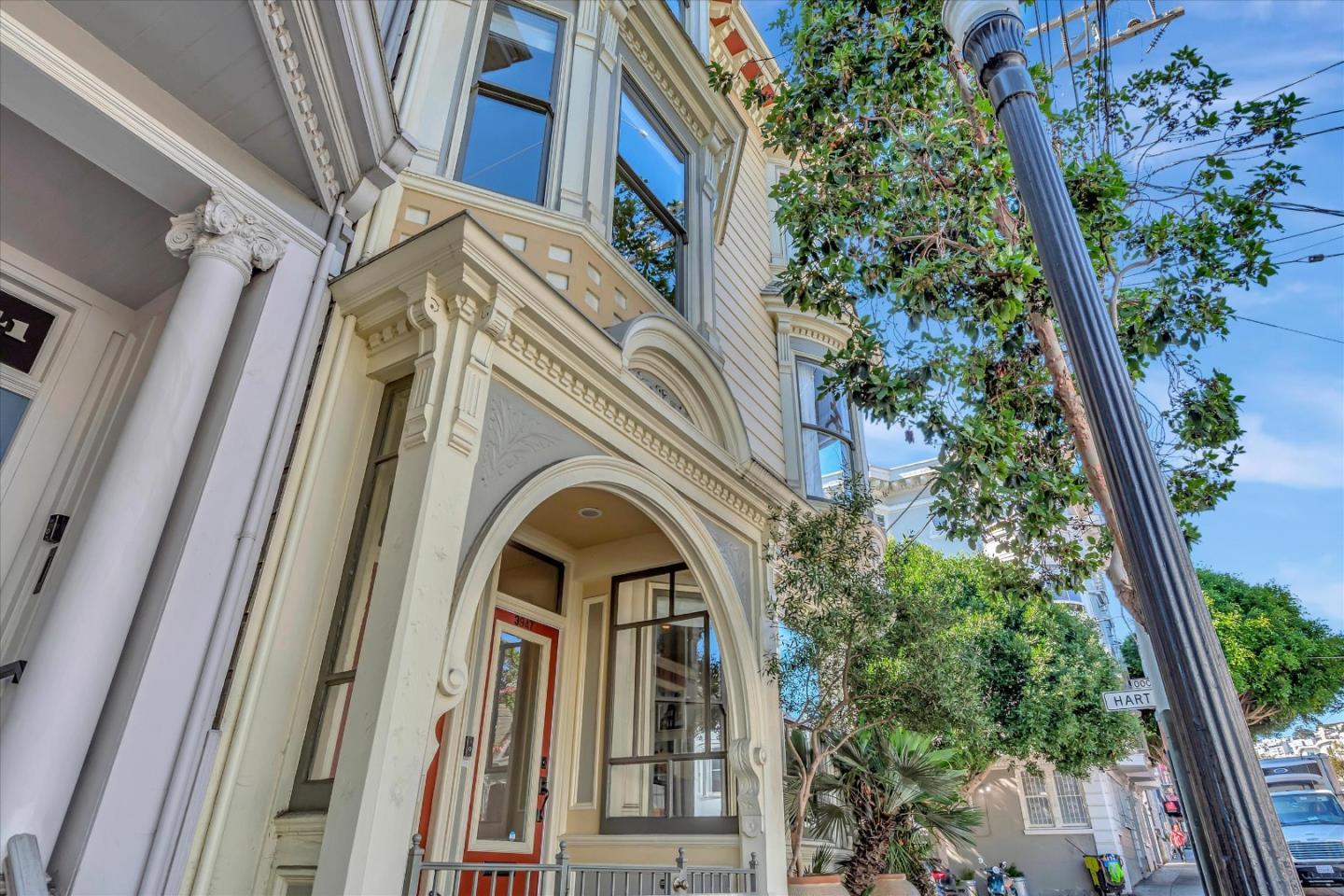 Welcome to this stunning home located in the vibrant Castro neighborhood in San Francisco. This contemporary residence offers a perfect combination of modern elegance and urban convenience. As you step inside, you'll be greeted by the spacious living area with its soaring 12-foot+ ceilings, an updated kitchen featuring Carrera marble countertops and stainless steel appliances along with in-unit washer/dryer. The open-concept lower level is perfect for entertaining guests. Upstairs, the master suite features an Edwardian Oriel circular window that floods the room with natural light. Additional deeded storage space along with ample closets on both levels. This home is a walker's paradise with an array of world-class dining options, night spots, and parks just moments away. With multiple transit options nearby, you'll enjoy easy access to explore everything San Francisco has to offer!Interested in this Listing?
