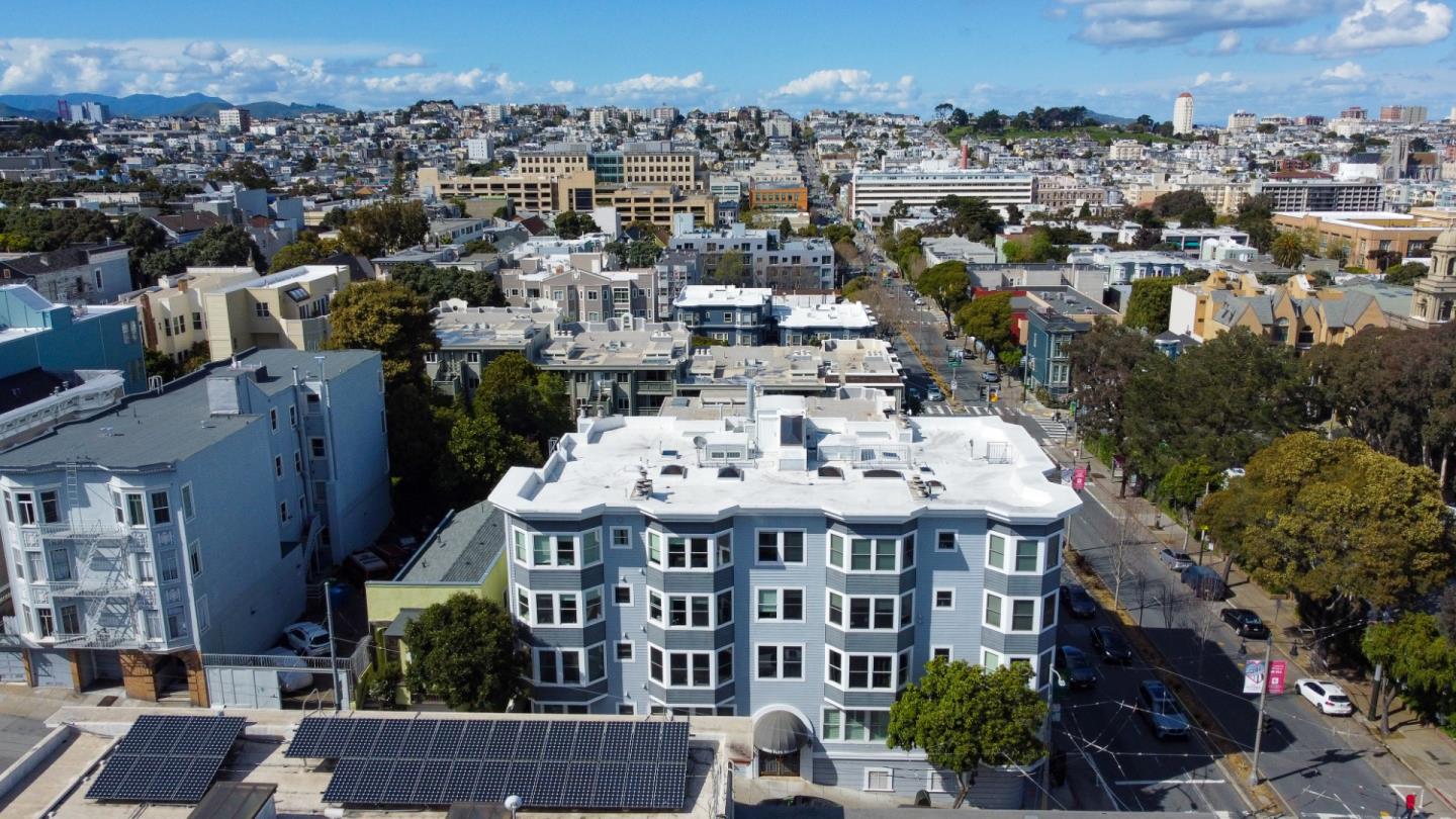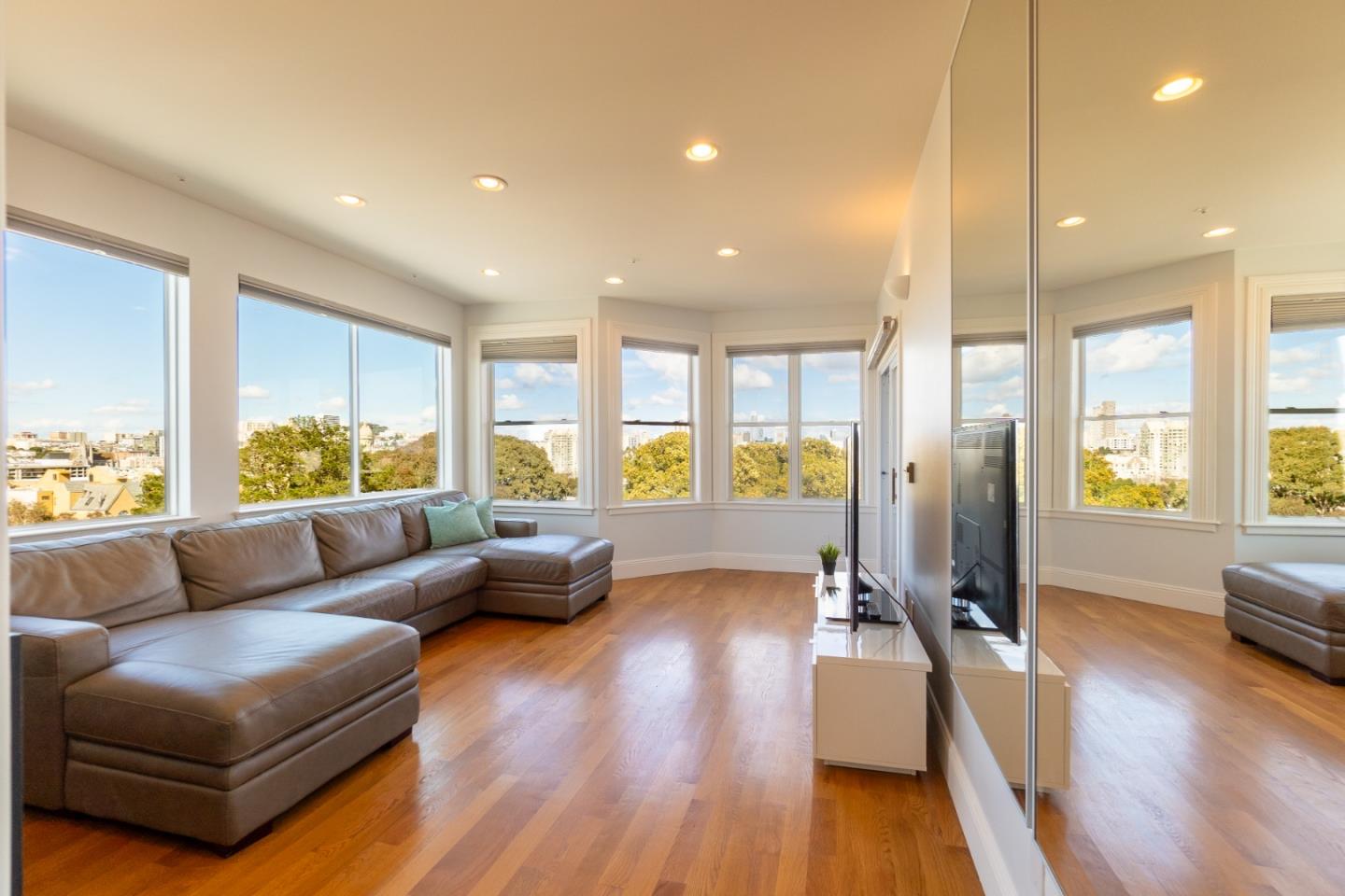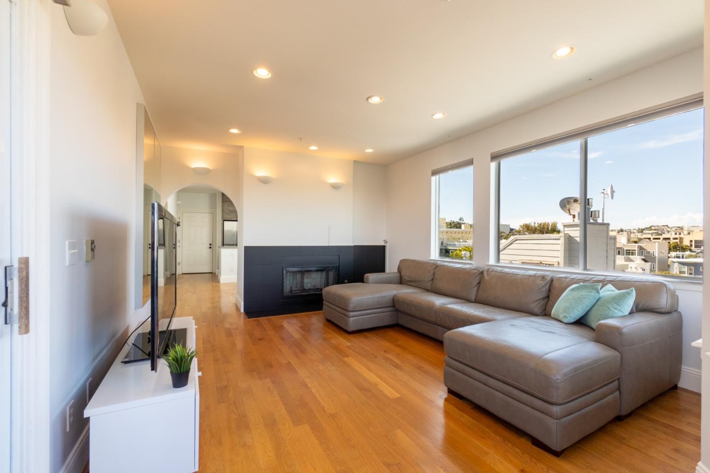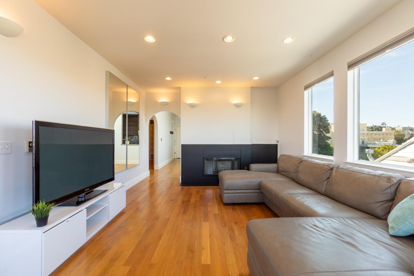 Welcome to SF urban living at its finest. This stunning Penthouse-level condominium offers modern convenience and historic charm. Situated in the vibrant NOPA/Anza Vista neighborhood of San Francisco. Upon entering, you are greeted by an abundance of natural light from skylights + windows with captivating iconic San Francisco views from the living room + balcony. The interior features an open-concept layout seamlessly connecting the living, dining, and kitchen areas, creating an ideal space for entertaining or quiet evenings at home. The updated kitchen boasts stainless steel appliances, sleek ample countertops, and cabinetry space. The kitchen has an open floor plan to the dining room with hardwood floors throughout, high ceilings, radiant heat, gas fireplace, and recessed lighting. The 2 bedrooms have abundant closet space with the bathroom central to the bedrooms. Features a deeded parking space, private balcony for outdoor space, and a spacious elevator for convenience. Located inInterested in this Listing?