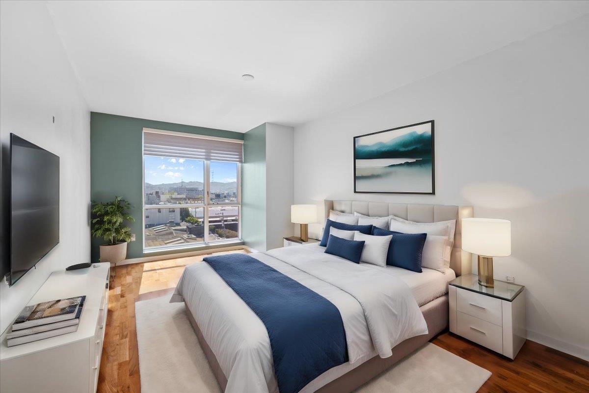 Welcome to 555 4th St #723, a bright and spacious 2-bedroom home at the Palms in the heart of San Francisco. This fantastic floor plan features split bedrooms and 2 full baths, with one en-suite for added convenience. The sizable primary bedroom provides ample space for a king-size bed, seating area, and dressers. The kitchen and both bathrooms feature elegant cabinetry, complemented by quartz counters and top-of-the-line appliances. Expansive windows in each room flood the space with natural light while the balcony allows for amazing indoor-outdoor living. This wonderful city home is not to be missed! The Palms building offers a host of amenities, including a 24-hour lobby attendant, concierge services, fitness center, business center, theater, club lounge, and outdoor courtyard. Residents will also enjoy the convenience of one-car parking, with a remarkable walk score and easy access to Whole Foods, dozens of restaurants, as well as Muni & Caltrain stations. This location is trulInterested in this Listing?