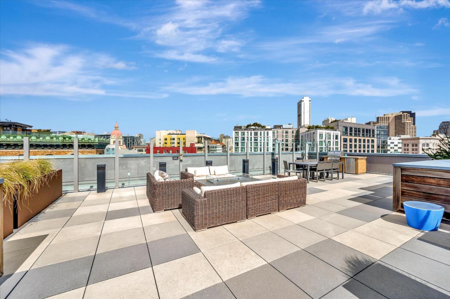 Discover the vibrant lifestyle awaiting you in this charming 2-bedroom, 2-bathroom San Francisco condo! As you step into the spacious living room, tall windows flood the space with natural light, creating a welcoming atmosphere. The kitchen seamlessly flows into the living room, making entertaining a breeze. Well-appointed and open, it invites culinary adventures with its modern appliances and ample countertop space. With the allowance for two pets, furry friends are more than welcome here, plus, the convenience of a stacked washer and dryer concealed in a laundry closet. This condo offers a plethora of communal amenities to enhance your living experience. From package lockers to a dog run and even a dog wash station, not to mention a rooftop deck complete with a BBQ lounge, every need is catered to. Don't forget the bike storage, perfect for those who love to explore the city on two wheels! Conveniently located near restaurants, theaters, public transit, and tech companies, this c