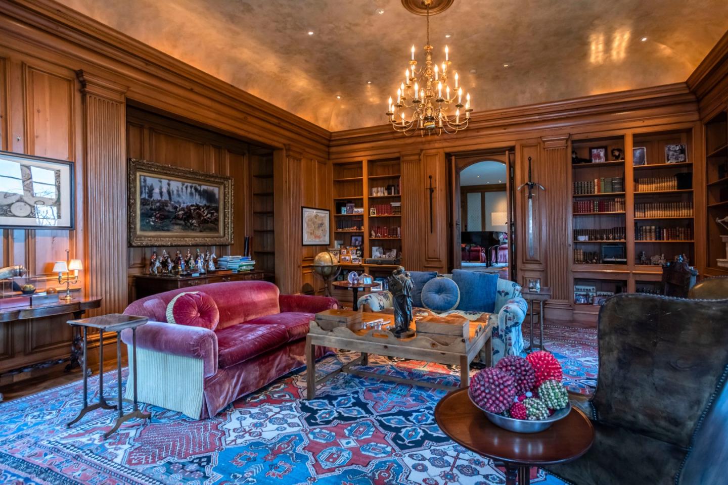 Situated on a private side street, this grand estate sits on a majestic 2-acres with jaw-dropping panoramic bay views, some of the best in all of Hillsborough. Exquisite architectural detailing and finishes throughout, including inlaid parquet walnut floors, hand carved fireplaces, and walls of glass framing iconic bay views and landscaping. The main level includes a stunning office, billiard hall, and the "Morocco Room" lounge. Upstairs, the large master suite enjoys equally stunning views of the bay, in addition to a luxury spa bath and formal sitting room. A separate in-law suite and wine cellar with tasting room are located on the lower level of the residence. Equally impressive are the surrounding grounds, fully landscaped with grand-scale trees, expanses of manicured lawn, and an elevated terrace overlooking the views and swimming pool. All of this just minutes from shopping, dining, golfing, parks, and top rated Hillsborough schools. (Square Footage Per County Records: 8,629)Interested in this Listing?