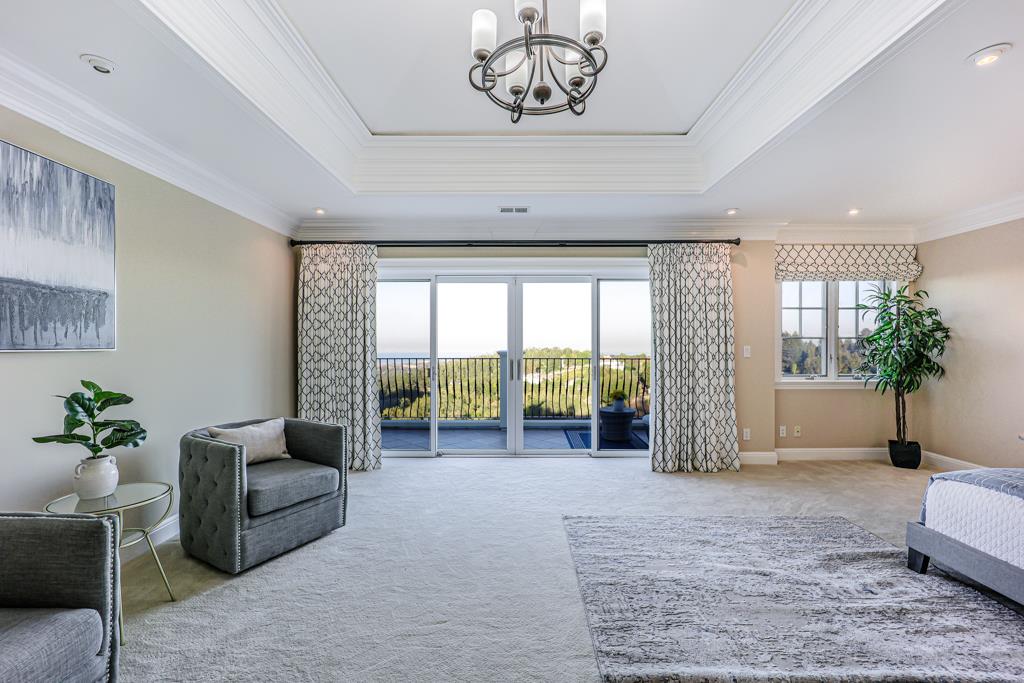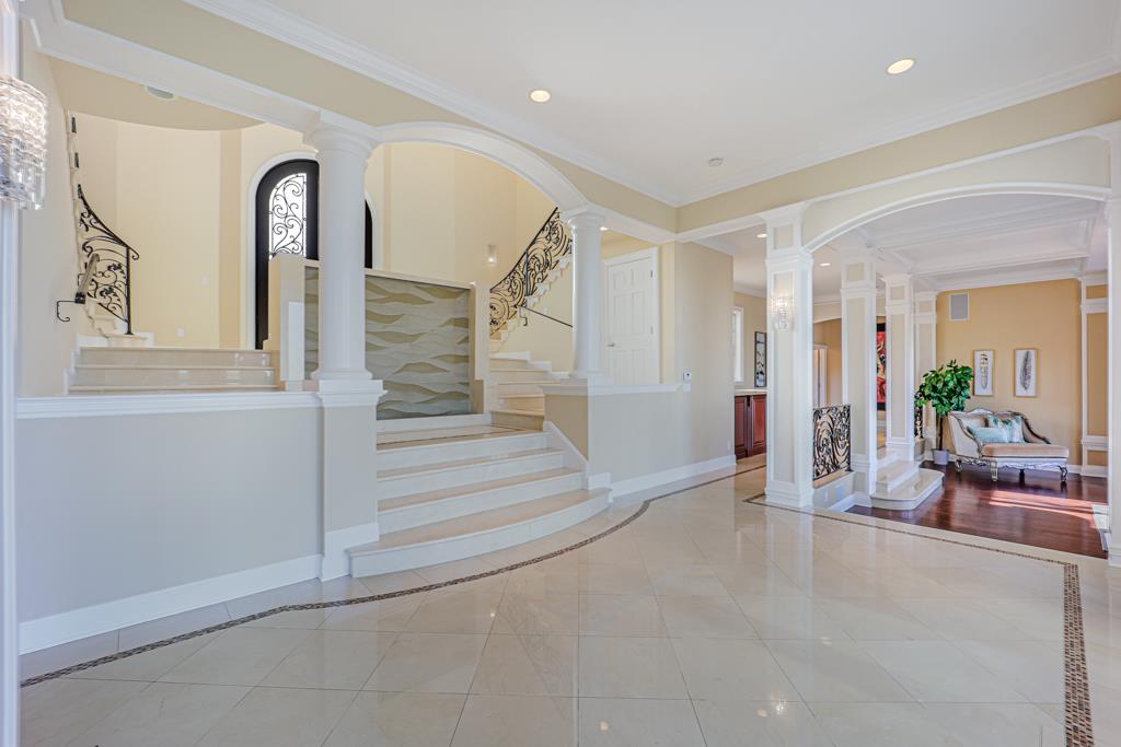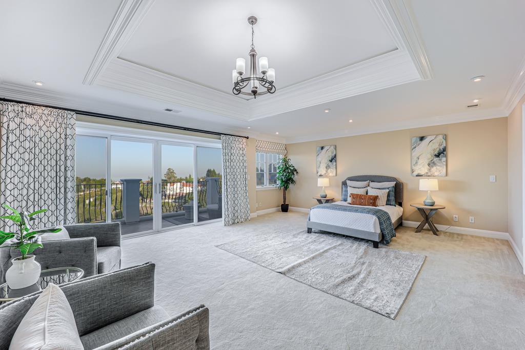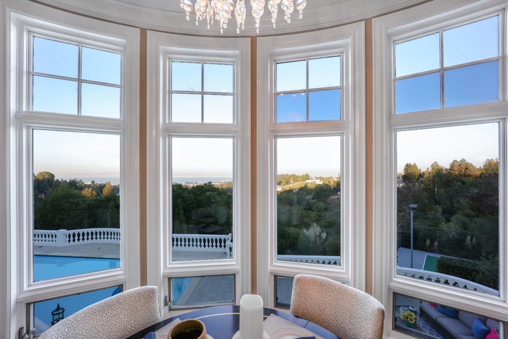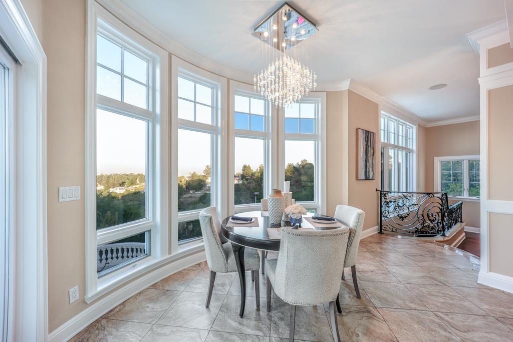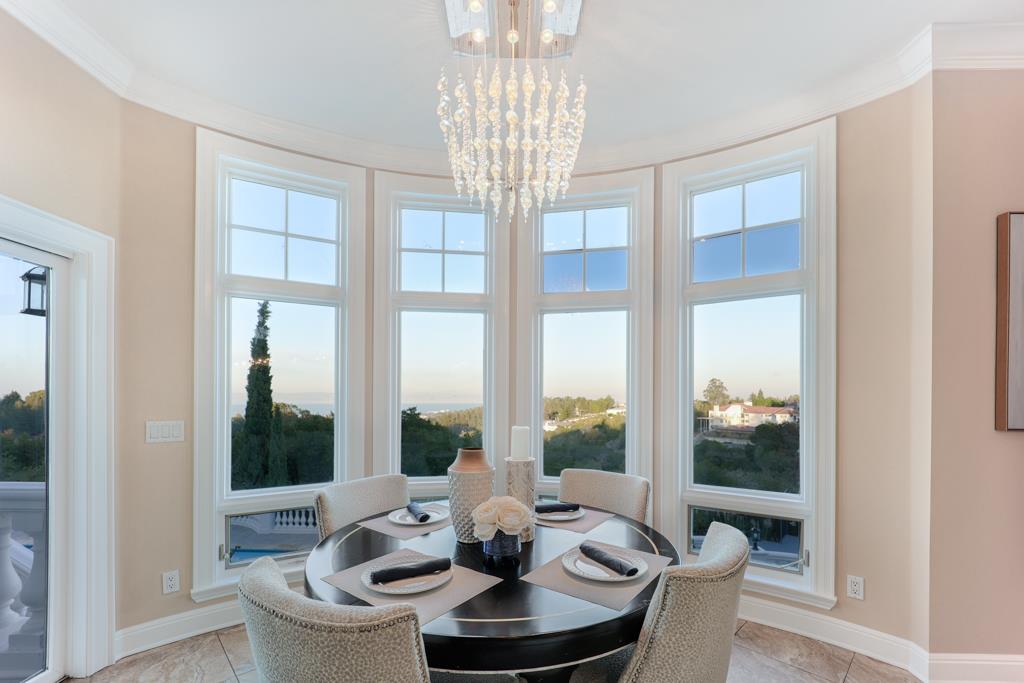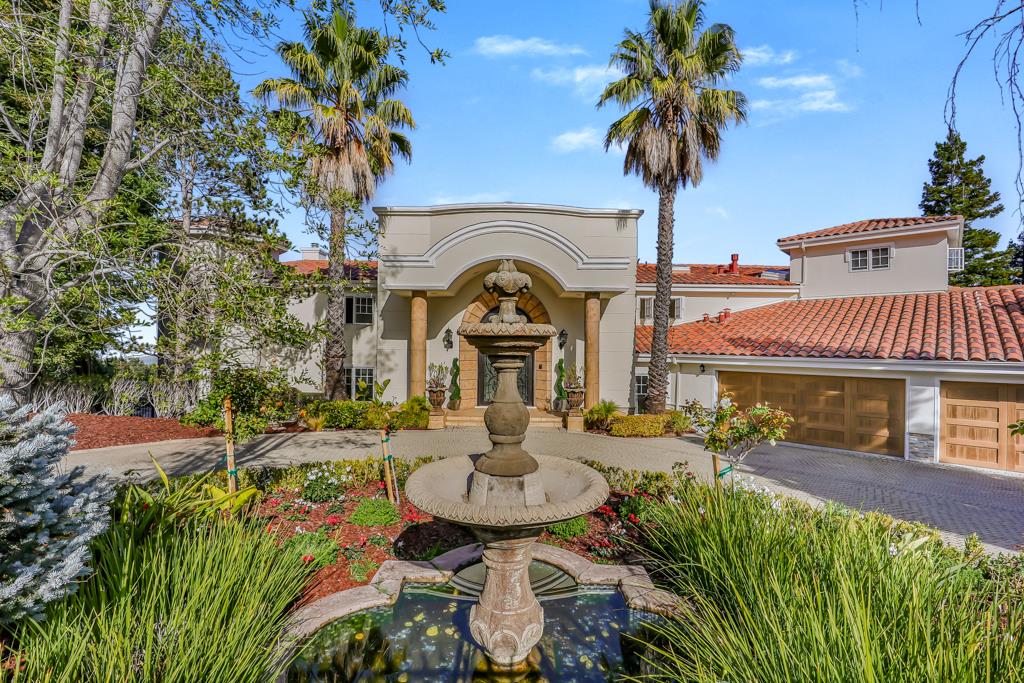 Magnificent Mediterranean Estate with 6 bedrooms, 6 bathrooms, plus an additional two half bathrooms/Soaring ceilings with custom skylights provide an abundance of natural lighting over the dramatic entry that features grand columns and graceful staircases with custom ironwork and a cascading water wall feature/Spacious Primary bedroom with high coffered ceiling, bold crown molding, fireplace, a separate walk-in closets and spacious main bathroom that features a large shower with dual heads and a separate tub/Sizable office/study with cozy fireplace and built-in bookshelves that are blessed with an abundance of natural lighting from multiple sides/The resort-style backyards is perfect for entertaining and relaxing. Dramatic views of San Francisco Bay and beyond can be enjoyed from the spacious terraces and patio that surround the huge refreshing pool and jacuzzi. Other feathers include a sports court, water fountains, fireplace, and fire pit. A spacious gated driveway and 3-car garage.Interested in this Listing?