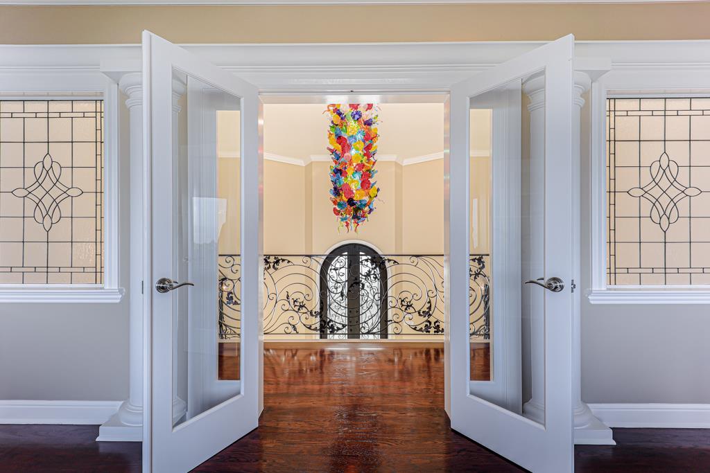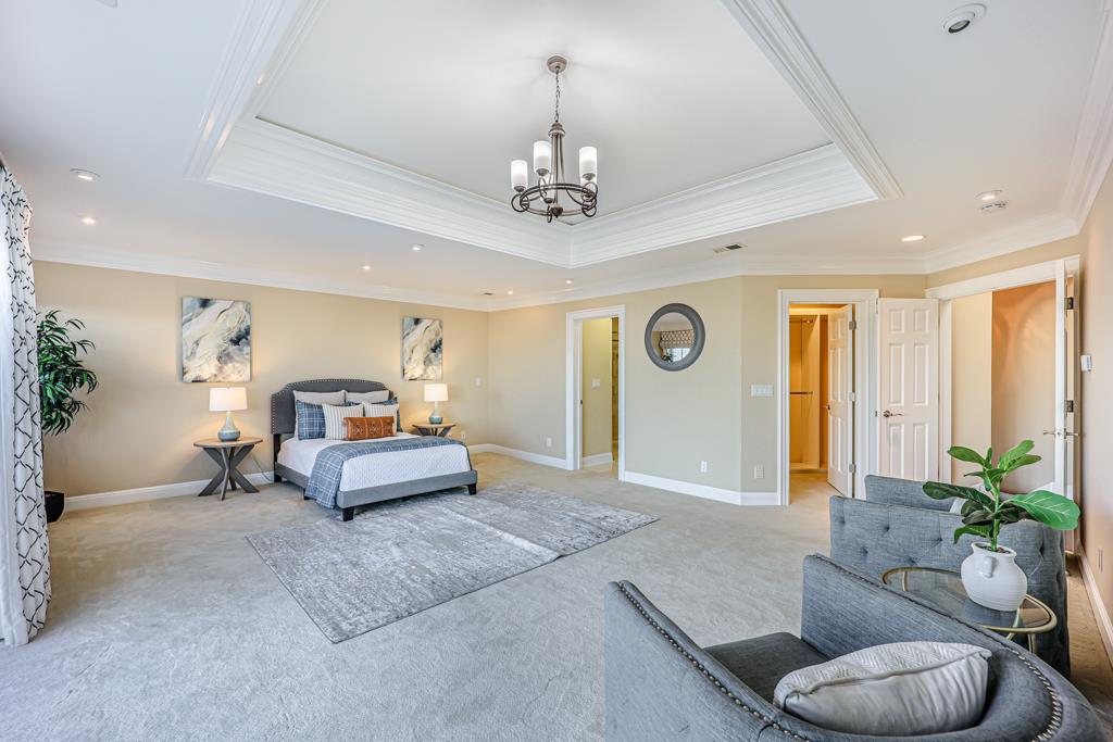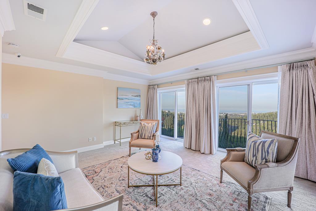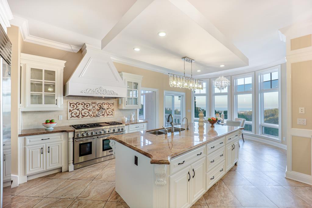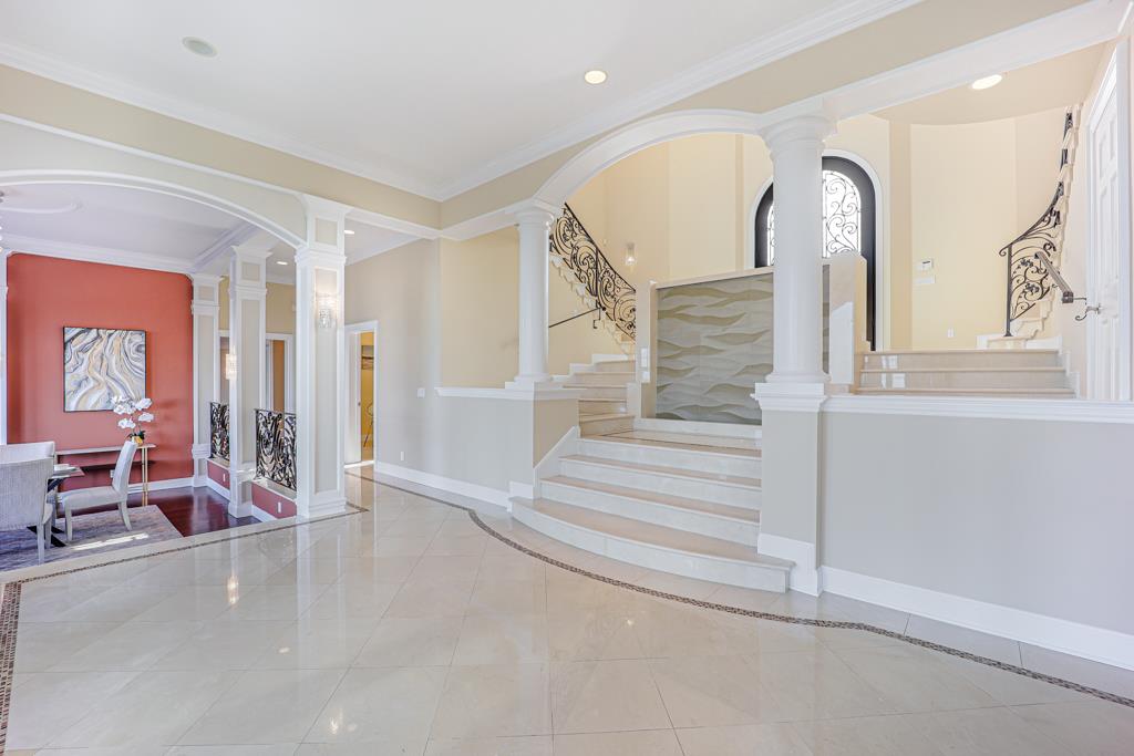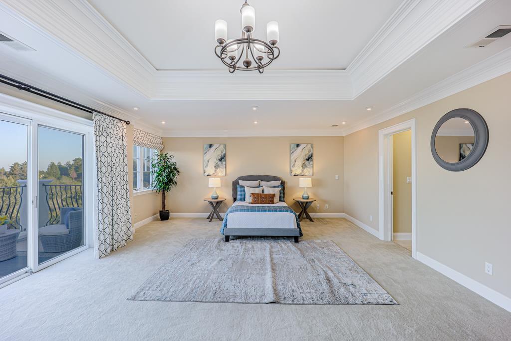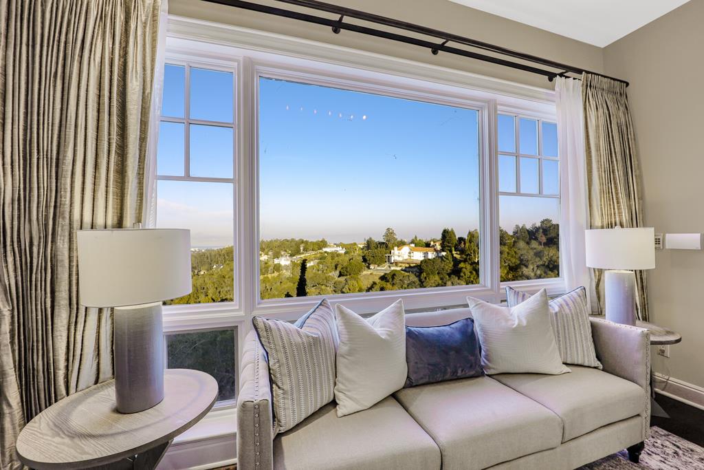 Magnificent Mediterranean Estate with 6 bedrooms, 6 bathrooms, plus an additional two half bathrooms/Soaring ceilings with custom skylights provide an abundance of natural lighting over the dramatic entry that features grand columns and graceful staircases with custom ironwork and a cascading water wall feature/Spacious Primary bedroom with high coffered ceiling, bold crown molding, fireplace, a separate walk-in closets and spacious main bathroom that features a large shower with dual heads and a separate tub/Sizable office/study with cozy fireplace and built-in bookshelves that are blessed with an abundance of natural lighting from multiple sides/The resort-style backyards is perfect for entertaining and relaxing. Dramatic views of San Francisco Bay and beyond can be enjoyed from the spacious terraces and patio that surround the huge refreshing pool and jacuzzi. Other feathers include a sports court, water fountains, fireplace, and fire pit. A spacious gated driveway and 3-car garage.Interested in this Listing?