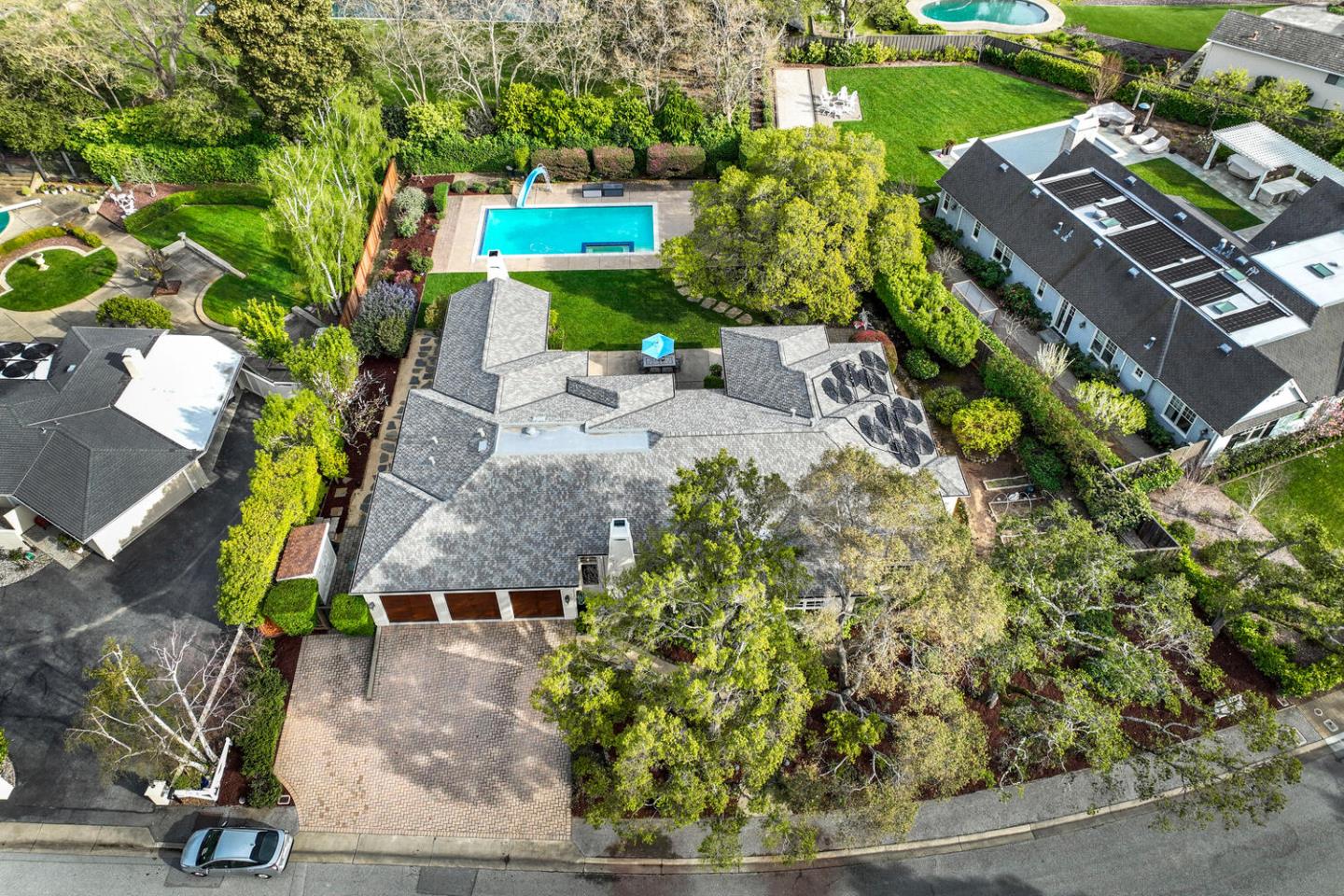 Step into this custom-designed home, constructed in 2001, boasting a sprawling 3,600 square feet all on one level, nestled on a coveted level lot. The architecture exudes charm with its lofty ceilings, creating an open, luminous ambiance. Expansive windows frame picturesque views of vibrant flowers and lush trees, bringing the outdoors in. This spacious abode features 5 bedrooms, 4.5 baths, all thoughtfully arranged. Entertain guests in the formal living and dining areas, or retreat to the elegant wood-paneled office for quiet productivity. Gather in the generous family room, seamlessly connected to the functional kitchen with a granite-topped center island & top-of-the-line stainless steel appliances! Outside, discover a meticulously landscaped backyard oasis, complete with a solar-heated pool and spa, surrounded by mature greenery on the flat lot. A charming gazebo adds a touch of serenity & beauty. Convenience meets luxury with a spacious 3-car garage, while the tranquilInterested in this Listing?