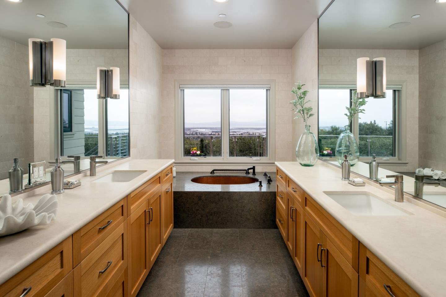 Stunning single-level craftsman-style home, rebuilt in 2017, meticulously designed, features an open floor plan, vaulted ceilings, large picture windows, and vast entertaining deck (1342 +/- sf) with spectacular views. Kitchen includes 2 luxurious islands, abundant counter space and cork floors. Generous built-in cabinets, convenient pull-out drawers, and stylish bookshelves are throughout. Cathedral ceilings and wood floors accentuate the open floor plan, while the entertaining deck offers 180 degree views of the bay and beyond. The living/dining room is adorned w/stone fireplace and access to the deck. The primary suite retreat features deck w/sliding glass door, large sidelights w/automatic blinds for optimum natural light, and spa bath w/beautiful copper soaking tub and Toto Washlet. The entertaining deck is plumbed for gas fire pit and BBQ w/exhaust venting plus an indoor/outdoor sound system. Electronic gate w/3-car garage. Dont miss this enchanting custom-built home w/breathtakInterested in this Listing?