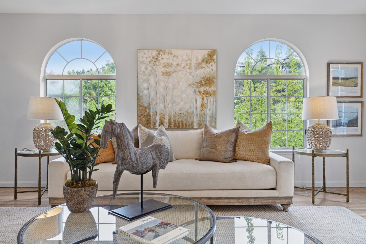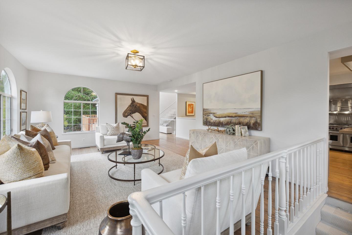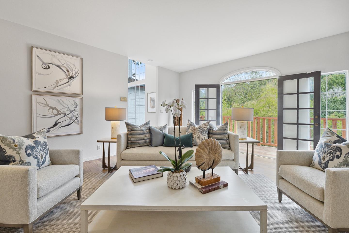 In the Highlands of Emerald Lake across from Handley Rock Park is a majestic home nestled in a terraced hillside adjacent to Edgewood Park and Natural Preserve. Tranquil treetop views from nearly every room add grounding to the homes striking white interior with lofty ceilings, modern fixtures, premium finishes and luxurious amenities. Arched windows, sleek stone surfaces, pristine oak floors, and new carpeting, light fixtures and interior paint elevate the semi-rural lifestyle. Special features: a three-story stairwell bathed in natural light; living room with polished stone fireplace and deck access; family room surrounded with arched windows; dining room with custom buffet; entertainers kitchen with 48-inch Wolf range; primary suite retreat with sitting area, walk-in closet and en suite bathroom with an elevated tub and adjoining shower; secondary suite off the living room; tree-studded grounds with extensive decking and a terraced hillside evoking communion with Mother Nature.Interested in this Listing?