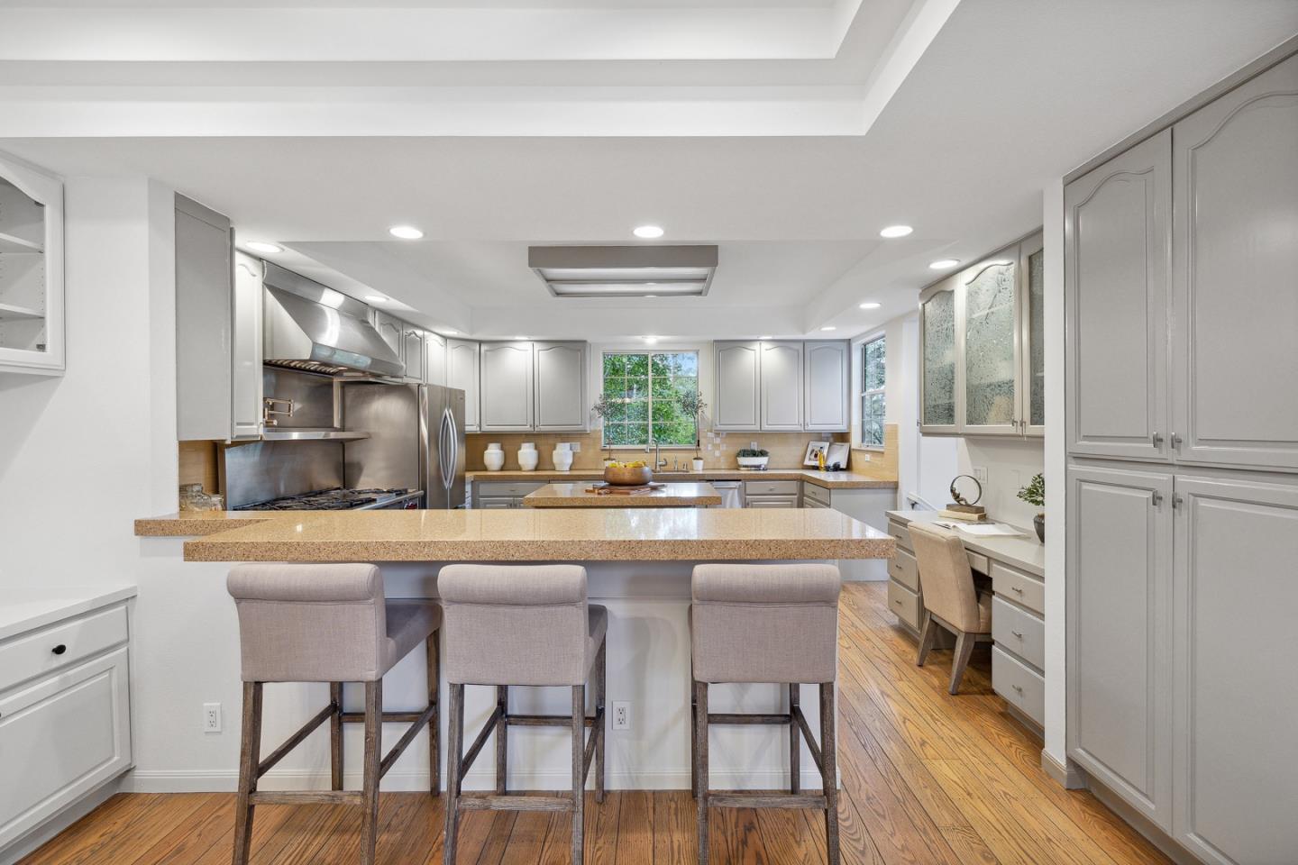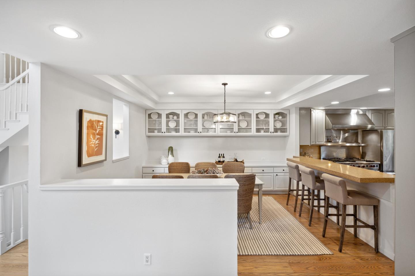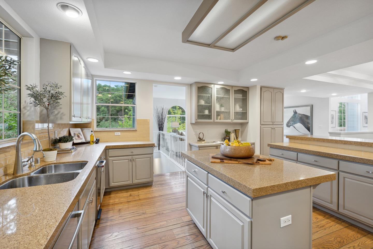 In the Highlands of Emerald Lake across from Handley Rock Park is a majestic home nestled in a terraced hillside adjacent to Edgewood Park and Natural Preserve. Tranquil treetop views from nearly every room add grounding to the homes striking white interior with lofty ceilings, modern fixtures, premium finishes and luxurious amenities. Arched windows, sleek stone surfaces, pristine oak floors, and new carpeting, light fixtures and interior paint elevate the semi-rural lifestyle. Special features: a three-story stairwell bathed in natural light; living room with polished stone fireplace and deck access; family room surrounded with arched windows; dining room with custom buffet; entertainers kitchen with 48-inch Wolf range; primary suite retreat with sitting area, walk-in closet and en suite bathroom with an elevated tub and adjoining shower; secondary suite off the living room; tree-studded grounds with extensive decking and a terraced hillside evoking communion with Mother Nature.Interested in this Listing?