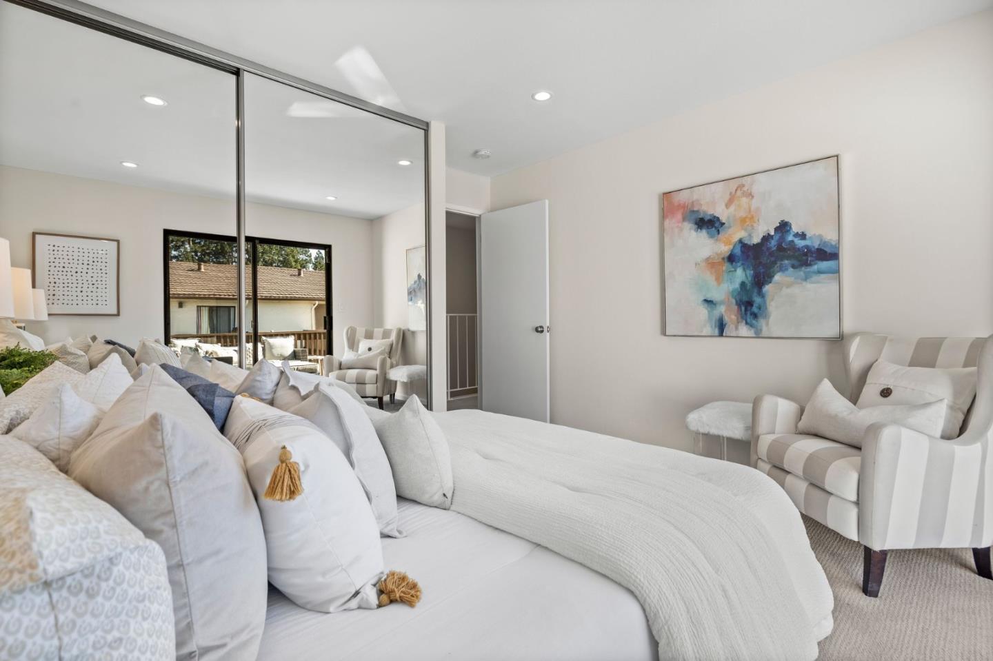 Splendid landscaping encompasses a path that leads you into 1,585 square feet of pure charm. Upon entry, fresh paint & hardwood floors lead you to the open living space, brightened by recessed lighting. Prepare meals in the connected kitchen, boasting endless functionality, & serve dinners in the formal dining space or on the enchanting back patio for al-fresco dining. The entry-level floor has a half bath, while the 3BR/2BA awaits upstairs. The impressive primary suite includes three closets, a lovely ensuite & an enclosed patioready to be reimagined. Both guest bedrooms are expansive, flow out to a shared deck, & accompany a full hallway bathroom. This abundant condominium includes an attached 2-car garage, & laundry space. When youre not lounging by the sparkling community pool, appreciate a mix of amenities that will appeal to everyone. Youll have your choice of popular restaurants, excellent shopping, & seamless transportation with CalTrain & nearby hiInterested in this Listing?