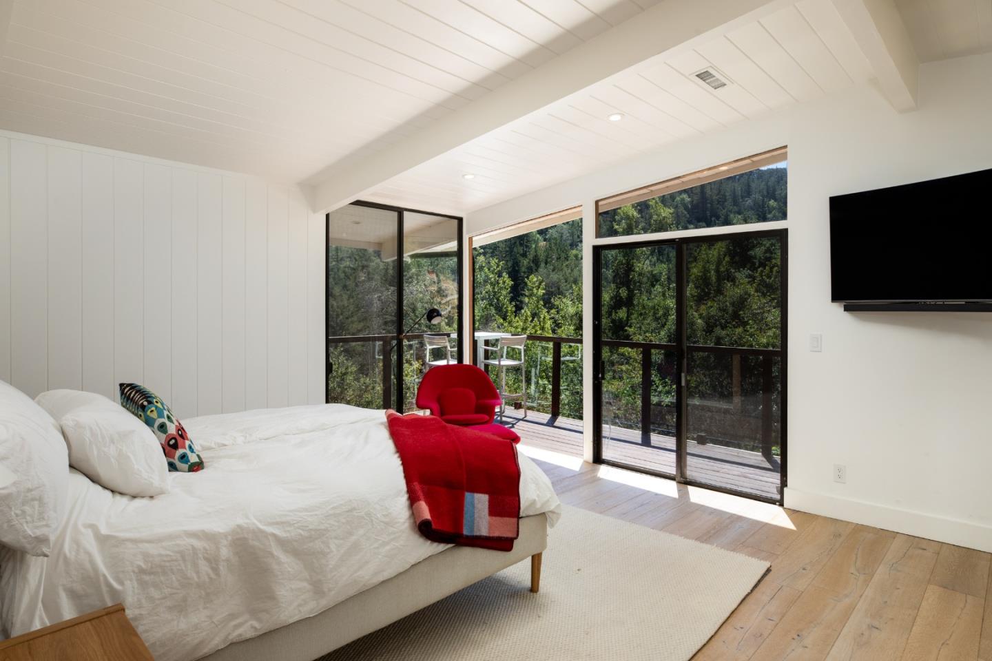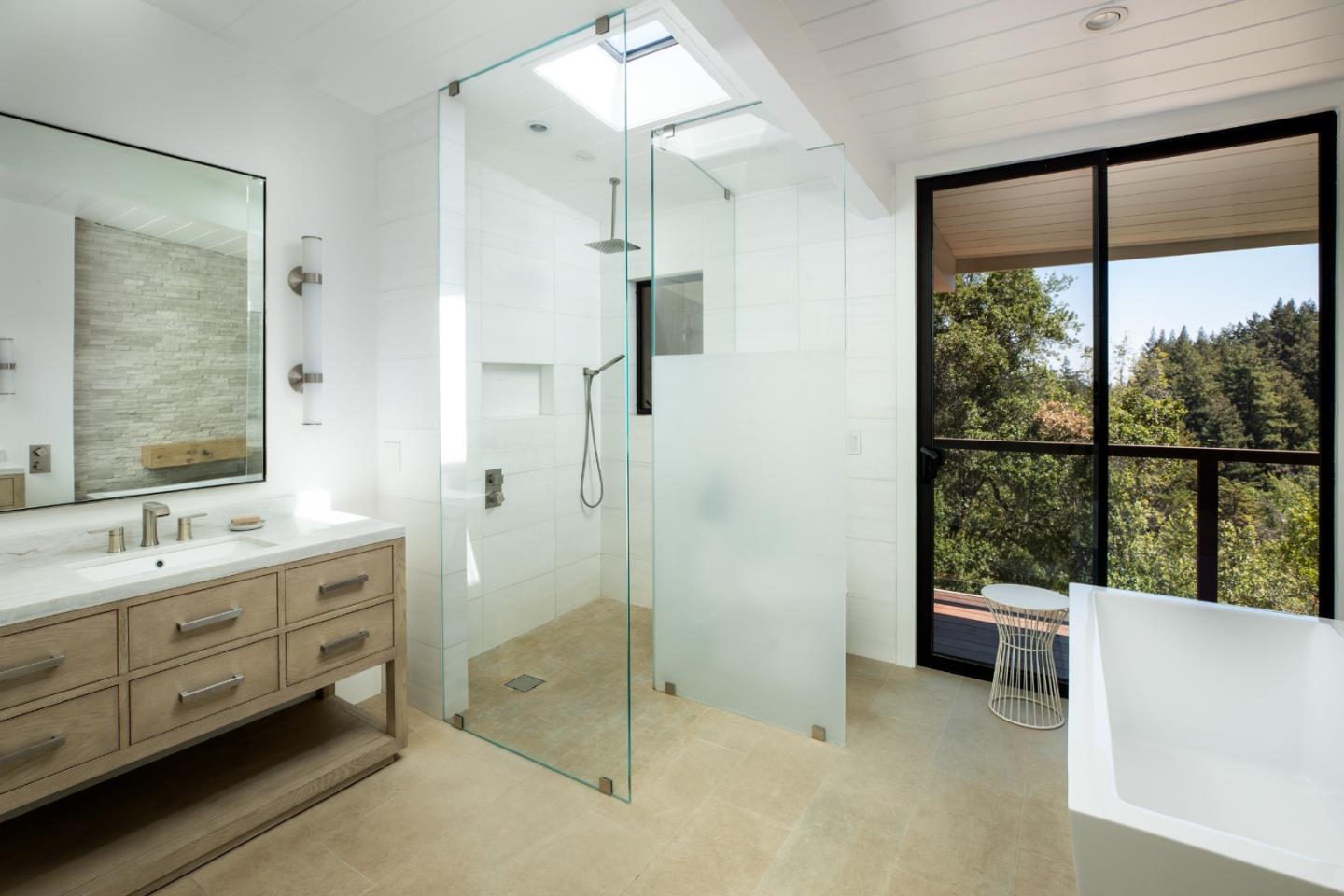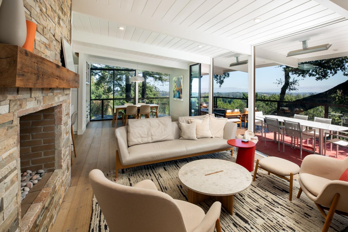 New price! Over $600,000 in improvements with sustainability features including new metal roof with solar panels and a 5-battery backup system. Experience contemporary luxury with captivation San Francisco Bay views in a retreat setting with pool and hilltop yoga/meditation area. This fully renovated home exudes designer sophistication blending wood, natural stone and glass to create an organic ambiance. A synthetic front lawn plus a dedicated farm area for crops or animals. The interior boasts European white oak floors, ultra-smooth walls and premium finishes such as Dolomite and Italian statuary marble. The open floor plan spans two levels with every room opening to a deck for fresh-air enjoyment. On the main level are 3 bedrooms including the primary suite with Western hill views. The lower level offers 2 additional bedrooms, a spacious family room, full bath, laundry room and access to the garage. Located off a private road on more than 2.5 acres, this location is superb - just 4 mInterested in this Listing?