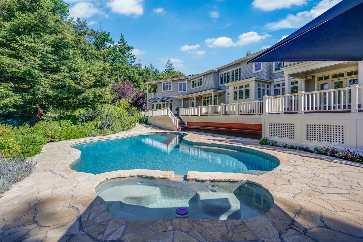This exceptional hilltop residence features dramatic bay views from Mt. Diablo to the coastal mountain range. The Hamptons-inspired shingle home has the ambiance of a resort retreat and the privacy that comes with being adjacent to 5000+ acres of Open Space yet minutes from the heart of Silicon Valley, A giant office suite, complete with lounge, meeting area and private deck is perfect for work from home with high speed internet access supplied by Etheric Networks. A separate library, professional gymnasium, and acres of land to run and play makes this a true sanctuary for all ages.. There are 5 bedrooms and 4.5 bathrooms including a stunning master wing with a private master deck. The outdoor spaces include a pool and patio as well as 4000~ square feet of ipe deck, covered porch with fireplace, outdoor kitchen, and lovely native landscaping. Starwood is a gated private road. The end of road privacy is further enhanced by private trail access from your front door to Open Space.Interested in this Listing?