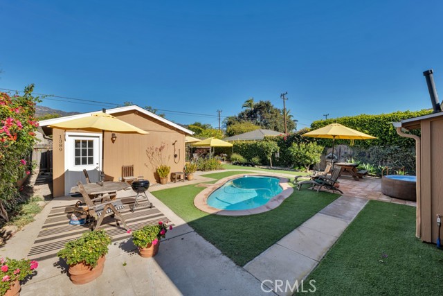 A GREAT OPPORTUNITY HAS JUST GOTTEN BETTER! REMODELED TO PERFECTION AND BRAND NEW SECOND COTTAGE (ADU), COMPLETED 2023. TWO COTTAGES ON ONE LOT, 1387 AND 1389 VALLECITO PLACE (two legal addresses) located in the prime historic "Vallecito enclave" of custom cottages in the scenic Carpinteria by the sea. One mile walk to sandy beach/village, half mile to the many new shops and restaurants. BEACH LIVING with near perfect central coastal climate. Gated and walled "mini-compound" RARE JEWEL with MOUNTAIN VIEWS and NEW CUSTOM HEATED POOL (COMPLETED 2023) and separate spa. Front house is a custom "architectural" 2+1 cottage with cathedral beamed ceilings, European black oak hardwood plank floors, recessed lighting, gourmet center island kitchen with honed marble counters, Dutch door, high end designer fixtures/finishes, santori wood working cabinetry with Carrera marble tops, third bedroom and second bath is in the rear BRAND NEW cottage (ADU, completed 2023), also includes a second kitchenette and laundry area for a total of 1,240 sq ft for front and rear cottages, you could fence off the second house for privacy if so desired. Manicured "landscape-architect" backyard with the new pool, hot tub, artificial turf, fruit trees, two fountains, TOTAL BEACH SPA-LIKE ambiance to go with the glorious location and climate. Outdoor hot water shower to rinse off sand from the beach, new roof, rent out the back house and live in the front house, QUIET street, great investment opportunity, escape to gorgeous Carpinteria by the sea. All appliances included along with hot tub, fountains and washer/dryer.Interested in this Listing?