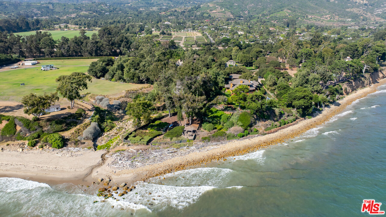The last large beach estate on the Southern California coast awaits, a rarity found directly on famous surf break Loon Point, promising an extraordinary life in harmony with sand, ocean, and sun. Positioned in a celebrity-studded enclave, Rancho Carinoso is a world-class legacy property offering an astounding 4.2 acres of oceanfront allure. A long driveway leads to a motor court surrounded by mature trees, new landscaping and lush greenery. Inside, the three-bedroom, four-bathroom home spans a single, thoughtfully designed level. A 1000-square-foot detached garage adds ease. This exquisite property is zoned for up to nine horses to be stabled on its grounds. A private trail leads directly to the horse-friendly beach. Enjoy the rare opportunity as the homeowner to ride your horse on the beach down to Santa Claus Lane at any hour of the day, a coveted privilege and treasure as all other riders on the beach must use the public trail under strict time constraints. Dock your yacht conveniently in front of the homesite and tender to shore to the private beach/backyard area. Residents have the ability to keep a hangar of water toys, such as small boats and kayaks on the beach portion of the property; launch a jet ski from your backyard. Ride small ATVs on the property and trails all the way to the private beach cabana an opportunity that no other home on Padaro Lane or in the area is privy to. Experience world-class lobster diving in the backyard, barbecue on the beach and enjoy views of the Santa Barbara harbor fireworks from the cabana. Explore a private hiking trail on-site, enjoy the fruits of avocado and citrus trees and luxuriate in the spa with direct views of the Channel Islands in the distance. The property provides a drip irrigation system for turnkey landscaping. With multiple building sites on the property, the possibilities for streamlined building are endless. Two structures have already been built, and residents will have the creative opportunity to expand on the two existing structures or build anew. A flat area below the main house is an ideal location for a state-of-the-art pool and pool house. The ideal location lends proximity to the Rosewood Miramar, the Santa Barbara Polo & Racquet Club and a private airport. Rancho Carinoso is nothing short of a wonderland, and all who step foot within its gates are sure to be enchanted and inspired by its magical splendor.