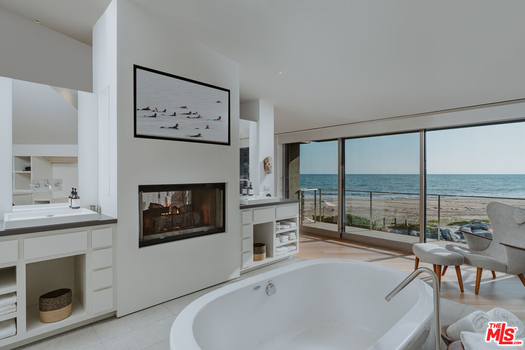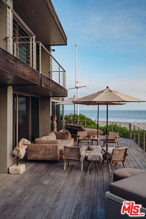 Welcome to the ultimate oceanfront estate! Stunning contemporary architecture & finishes highlight the ever-evolving grace of the Pacific & offer an extraordinarily luxe and laid back home, epitomizing the California Dream. Expertly poised, the home's position captures an overly expansive view of the coast that spans well beyond its apx 77' of beach front. An intelligent design ensures that dramatic ocean views are seen from nearly every room of the residence, all of which open to outdoor spaces. Whether on the expansive seaside deck, the private rooftop patio, or by the fireplace of a central enclosed courtyard, the ocean breeze floats throughout the home with ease. A beautiful guest house & a lit tennis court round out this magical seaside compound. FURNITURE IS AVAILABLE SEPARATELY.Interested in this Listing?