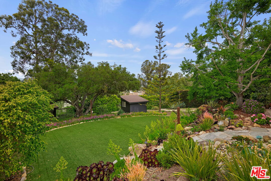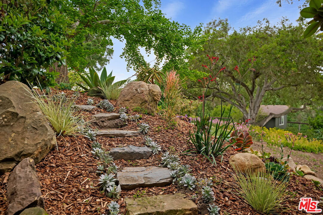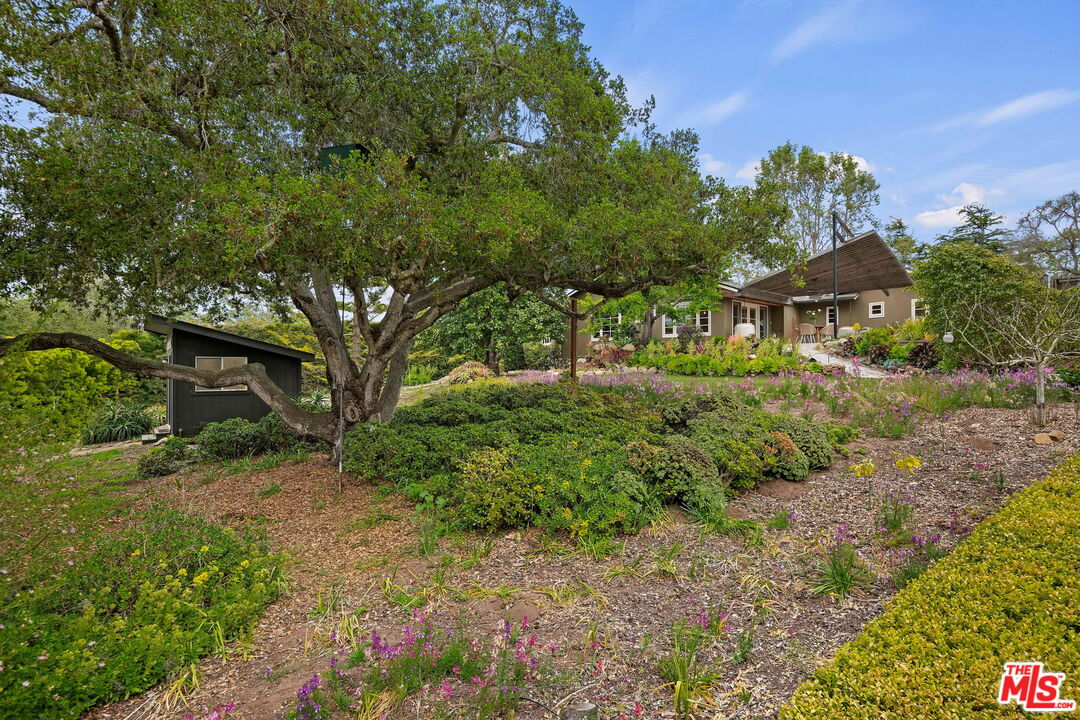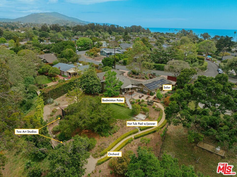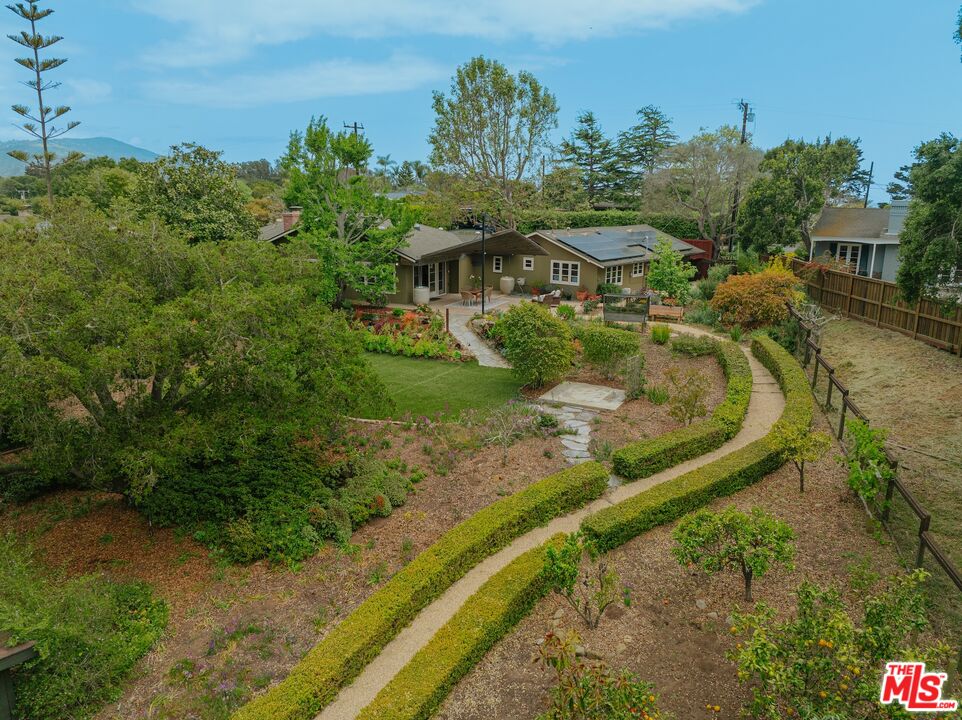 SCENIC COASTAL LIVING IN CARPINTERIA - Tucked into the sought-after Concha Loma neighborhood of Carpinteria, this 4BR/3BA home fuses natural beauty & single-level architectural grace in a serene setting. With ocean, Channel Island & Santa Ynez mountain views the curated, botanic-rich grounds are a living tapestry with shade trees, vivid gardens, an orchard, and an array of succulents & seasonal wildflowers. The luminous, sunlit great room is anchored by soaring ceilings, a fireplace, corner windows, and French doors capturing the views. The interplay of light & landscape blurs the boundaries between indoors & out, often with rhythmic sounds of waves in the distance. On the back terrace overlooking the vast yard, a dramatic custom-designed wood canopy casts filtered shade & sunlight. Meandering paths lead to two secluded art studios thereby expanding the scope of restful living spaces. In the east wing is the primary suite with a remodeled primary bathroom & fully lined cedar closet. Two bedrooms & a hall bathroom complete the wing. In the west wing, through the upgraded kitchen & new laundry is a separate guest suite, with a full bathroom, which presents the ideal sanctuary and autonomy. In Carpinteria, a town prized for its understated charm, walkability, & coastal authenticity, this property is a rare find within minutes of sunset walks on the beach and lively downtown Carpinteria. This prized property makes exceptional coastal living a reality. FEATURED AMENITIE: Orchard, Irrigation. Raised Garden Beds. Sound System,. Security System. Hot Tub Pad w/Power. Badminton. Artificial Turf. Solar. Artisan Grey-Water "Rain Chain" Catch Basin. 1-Car Attached Garage. 2-Car Garage. RV parking.Interested in this Listing?