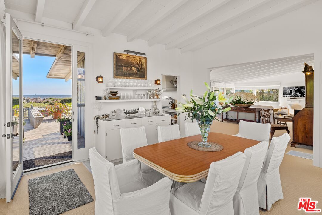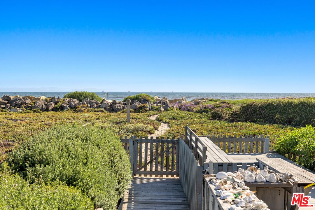 Discover a rare opportunity to embrace the quintessential California beachfront lifestyle with this classic beach cottage, located in the prestigious gated Sand Point community. Set on nearly 200 feet of ocean frontage, this charming residence offers uninterrupted views of the sparkling Pacific. Inside, the home features four spacious bedrooms and three baths, all accentuated by vaulted ceilings that create an airy and inviting atmosphere. The dining room and bedrooms offer stunning mountain views, allowing you to wake up to a serene landscape. The living room, bathed in natural light from expansive windows, frames breathtaking ocean vistas, enhancing the tranquil coastal ambiance.Step outside to a generous deck, perfect for relaxing and soaking in the ocean's beauty, or ascend to the upper deck for even more spectacular views. This remarkable beachfront retreat is a haven of tranquility and a rare find in California's coveted coastal market.