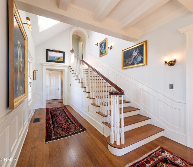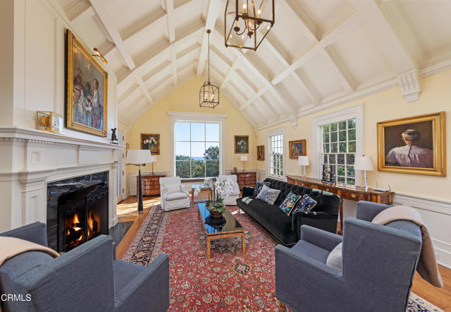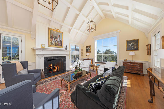 Perched on a knoll-top amid lush coastal landscapes, this Traditional New England estate will transport you to a world of classic architectural beauty and timeless allure. Designed by the late Peter Becker, a visionary Santa Barbara architect whose legacy endures through his successor firm, this property exemplifies bespoke craftsmanship and distinctive design that sets it apart. From featuring unique oval ''porthole'' windows inspired by Jefferson's Monticello to a soaring 14-foot cathedral-style ceiling composed of 54 individually crafted panels--a 12-month endeavor in itself. With materials thoughtfully sourced from near and far, every element reflects a dedication of unparalleled artistry and a reverence for authenticity. Completed in 2012 after a meticulous five-year process, this residence features elegant French doors with beamed ceilings throughout the living areas and boasts 4 bedrooms, 6 bathrooms, a total of 7 fireplaces, and a 3-level elevator. The spacious layout encompasses a living room, a dining room, and an impressive chef's kitchen equipped with Viking appliances, along with a cozy breakfast nook and a family room. The media room offers the perfect space for entertainment, while the 640-bottle wine cellar and a secret walk-in safe concealed behind a wall panel provide additional luxury. A separate guest wing includes a bedroom, living area, and kitchenette, ensuring comfort and privacy for visitors. Outside, you'll find a bocce ball court, an authentic wood-fired pizza oven, several patios perfect for entertaining, a 3-car garage (with additional parking for 25+ cars across the street), and an abundant landscape with a garden that enhances the property's natural beauty.Interested in this Listing?