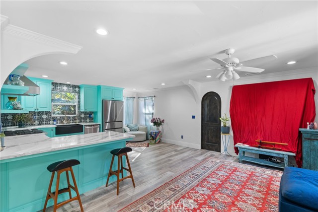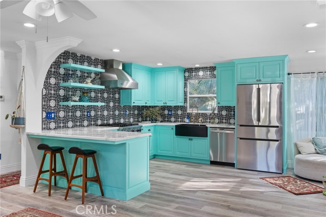This beautifully remodeled two-bedroom, one-and-a-half-bath home showcases an open floor plan that creates a seamless flow throughout the living spaces including arched doorways with gorgeous wood doors and crown molding in the living areas. The heart of this home is its stunning kitchen, featuring eye-catching Tiffany blue cabinets that add a splash of personality and coastal charm. High-end finishes include elegant quartzite countertops and premium Viking appliances, including a professional-grade stove and hood. The kitchen is further equipped with modern stainless steel appliances, including a dishwasher and refrigerator, making it a dream for both everyday cooking and entertaining. Outdoor enthusiasts will appreciate the tranquil backyard, thoughtfully enclosed with new fencing, gates, and an outdoor sink-dog bath station providing a perfect space for relaxation or gardening. A high-quality greenhouse opens up possibilities for year-round growing and adds a unique feature to this property. The location is awesome, offering the quintessential Santa Barbara lifestyle. Just a short distance from East Beach, you can enjoy daily walks along the shore or quick dips in the Pacific. The home's proximity to the Santa Barbara Zoo makes for fun weekend outings, while nearby shopping and dining options, including Sprouts Farmers Market, ensure convenience in your daily routine. This thoughtfully updated home combines modern amenities with a great location close to the beach, shopping, & restaurants creating an ideal setting for coastal living at its finest.Interested in this Listing?