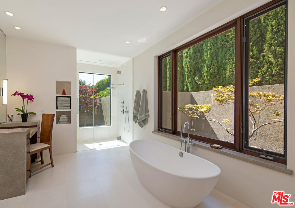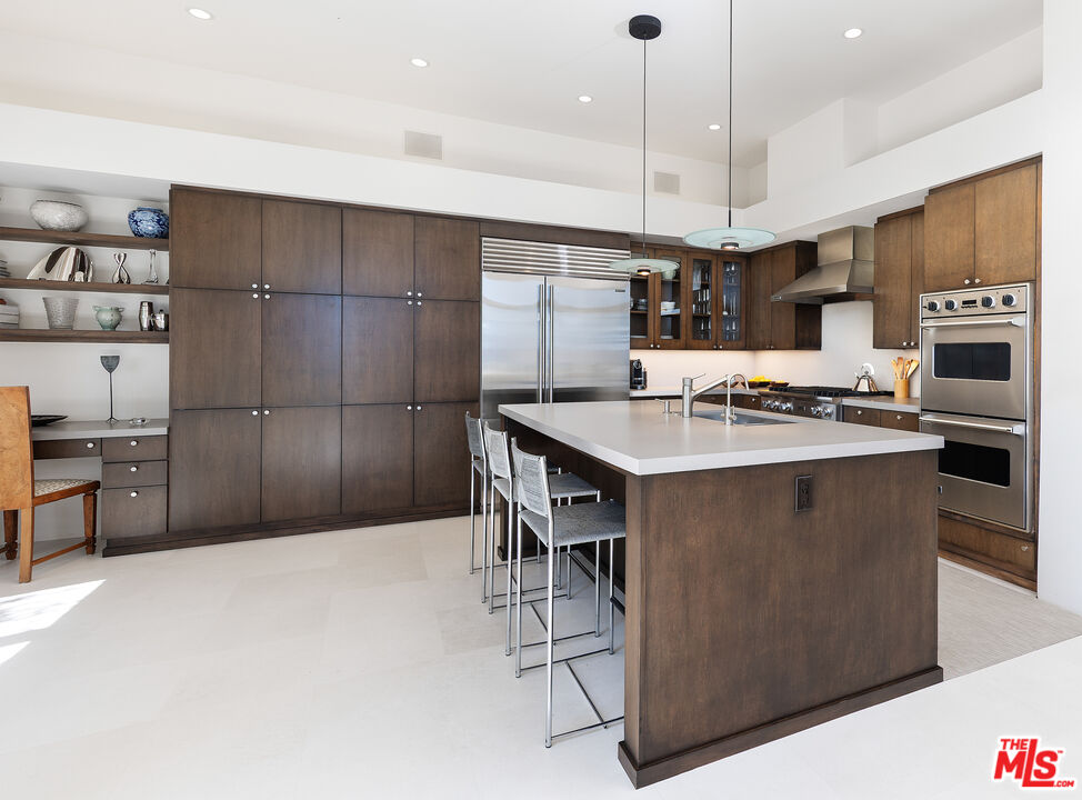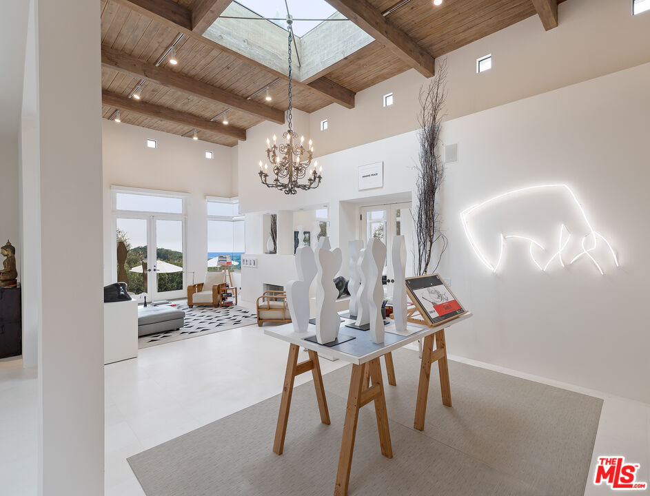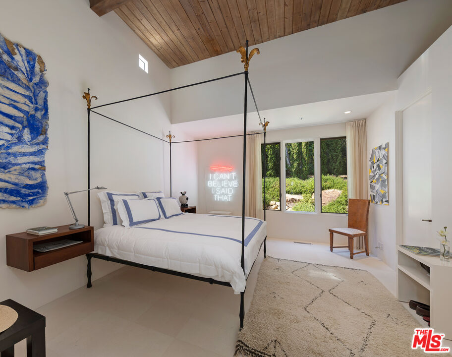A sophisticated retreat in the hills of Montecito, this architectural gemdesigned by internationally renowned Barry Berkusboasts incomparable views of the harbor, Pacific Ocean, Channel Islands, and beyond. The 4-bedroom, 4-bath residence is a masterful expression of bold lines, soaring ceilings, and light-filled interiors. Champagne limestone floors flow continuously throughout the home. The landscaping, curated by acclaimed designer Mark Rios, elevates the outdoor experience with serene gardens featuring a koi pond, lavender beds, an infinity-edge pool with spa, towering cypress trees, climbing bougainvillea, and a charming alfresco dining area shaded by century-old olive trees. This is a Mediterranean daydream-just ten minutes from Coast Village Road and Butterfly Beach.A beautifully carved door marks the entry, revealing an alle of cypress trees that sets the tone for the tranquil elegance within. The open-plan living and den areas feature 15-foot ceilings, exposed wood beams, a skylight, and clerestory windows that bathe the space in natural light. Defined without walls, the layout flows effortlessly. Just off the main living area, a spacious private study-or optional fourth bedroom-offers flexibility and privacy. The kitchen and dining areas, accessed through another set of French doors, are designed for both function and beauty. Oversized windows frame panoramic views, while a central Caesarstone island anchors the space. Top-of-the-line appliances include a Viking cooktop and ovens, Sub-Zero refrigeration, and Miele appliances. A few steps above the main level, the bedroom wing includes two en-suite guest rooms and a beautifully reimagined primary suite. The primary suite enjoys its own private patio with ocean views, a luxurious dressing area with custom European-style closets, and a serene spa-like bath. Picture windows frame Japanese maples, while a soaking tub, seashell limestone counters, and bespoke cabinetry complete the sanctuary. Additional amenities include a Sonos sound system throughout the interior and exterior, newly installed solar panels with backup battery, and access to a shared private well with two neighboring residences. Located on a quiet private lane, this exceptional home offers the perfect balance of refined design and peaceful seclusion.