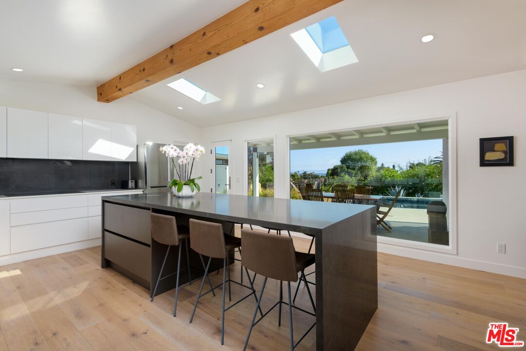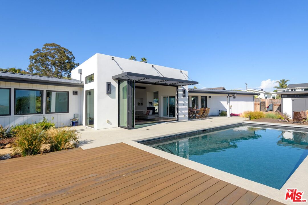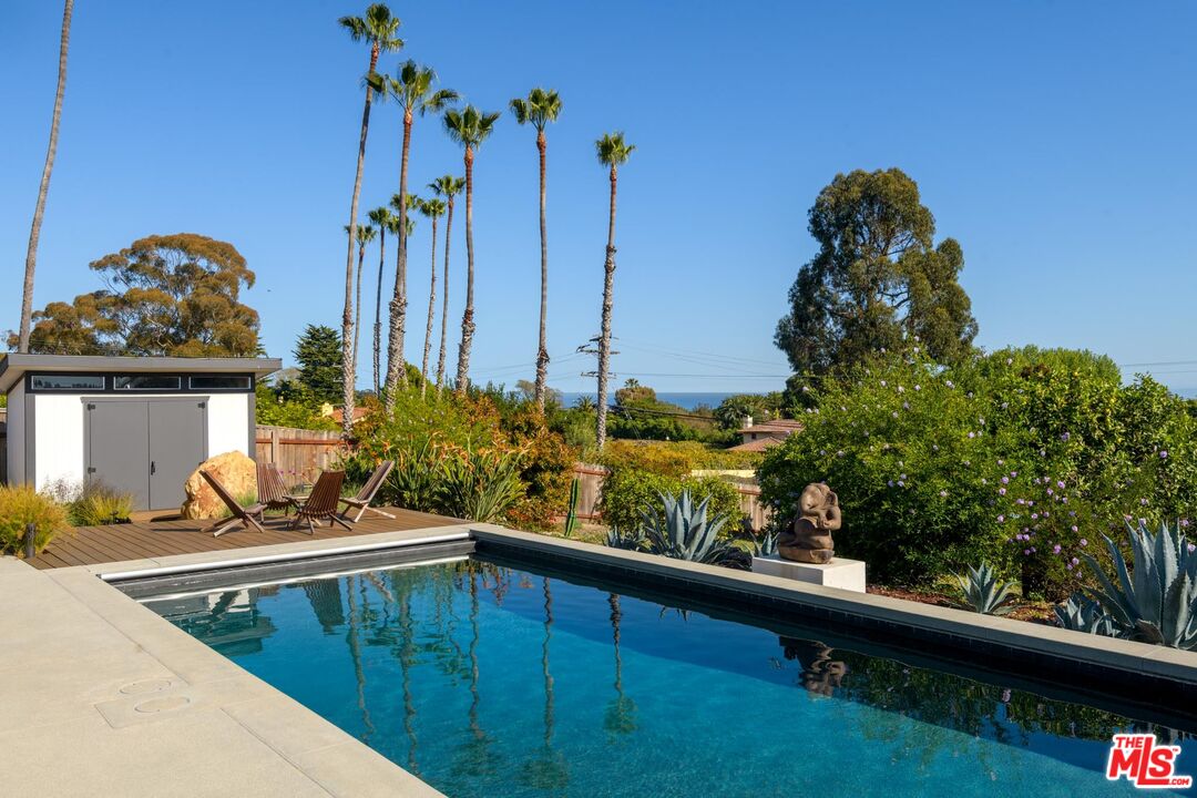 Set on just over an acre in Santa Barbara's highly desirable Yankee Farm neighborhood, 415 Yankee Farm is a design-forward, single-level contemporary home that offers privacy, light, and meaningful outdoor space just moments from Hendry's Beach / Arroyo Burro Beach. The home is oriented around a Dakari-designed heated pool, bordered by mature agaves and stone paths that connect a series of outdoor spaces designed for use year-round. A covered dining area sits just off the kitchen, while a separate patio with a built-in concrete fireplace offers a more intimate spot framed by blooming perennials and sculptural desert plants. Inside, the layout is open and natural light is constant. Wide-plank solid White Oak floors run throughout the living areas. The kitchen is fitted with white lacquer cabinetry by Armony, granite countertops, and a suite of Miele appliances including an induction cooktop, microwave, oven, and exhaust fan. Bosch refrigerator, dishwasher, washer and dryer are also included. The island serves as the functional and visual centerpiece of the space, set beneath a vaulted ceiling with exposed beams. The primary suite includes a custom walk-in closet by RD Interiors and a bathroom finished in imported Italian tile. Dual vanities by Puntotre and towel warmers reinforce an upscale, modern design. Multiple bedrooms open directly to the garden, creating a consistent connection between indoors and out. Additional features include solar panels, two Tesla chargers, an extensive irrigation system, a water softener system, and Navien tankless water heaters. Located just minutes from the coastline, upper State Street, and the prestigious Hope Ranch community, Yankee Farm offers one of the few remaining acre-plus parcels in the neighborhood and all within a short drive to the city's best farmers markets, restaurants, and beaches.Interested in this Listing?