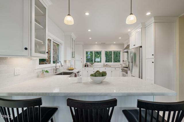 Welcome to 703 Colina Lane, where old-world charm meets modern elegance in this ever-so-lovely Santa Barbara home. Perched above the city with sweeping ocean views from the living room, dining room, kitchen, and primary suite, this thoughtfully updated residence blends timeless character with contemporary upgrades. Inside, you'll find beautifully refinished original hardwood floors, charming windows, and classic pocket doors that speak to the home's vintage soul. The chef's kitchen is a standout, featuring all-new custom cabinetry, sleek countertops, and top-of-the-line appliances--perfectly balancing function and style. The expansive primary suite offers a peaceful retreat with a walk-in closet, luxurious bath with dual rain showers, and direct access to a private deck overlookingthe coastline ideal for soaking in California's indoor/outdoor lifestyle.Situated on a generous lot with a spacious front yard and wraparound grounds, the property offers multiple vignettes to take in mountain and ocean vistas. With its elevated setting, blend of architectural character, and modern comforts, 703 Colina Lane is a rare find that captures the essence of Santa Barbara living.Interested in this Listing?