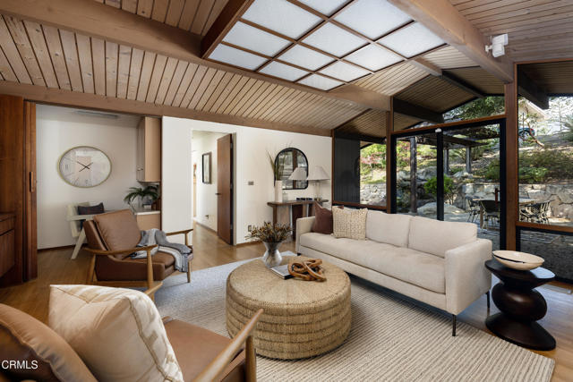 This soulful mid-century modern legacy retreat, crafted by renowned local figure John Carter - known for his foundation work in the community, offers 4 bedrooms, 2.5 bathrooms, and a timeless connection to its natural surroundings. Set on .80 of an acre in the San Roque foothills, the home captures sweeping ocean and mountain views - including breathtaking sunsets from nearly every angle. Inside, rich wood paneling, impeccable craftsmanship, vaulted ceilings, and walls of glass invite nature in, creating a peaceful, light-filled environment that feels both grounded and elevated.Two distinct living spaces offer flexibility, one showcasing ocean views, the other flowing effortlessly to a large patio and multiple outdoor seating areas ideal for entertaining or quiet reflection. The kitchen has been tastefully updated while maintaining harmony with the home's original character. Meandering trails extend from the backyard into the hills, adding to the home's private, soulful energy.Just minutes from Upper State Street and located within the highly sought-after Hope School Elementary School attendance area, this is a rare offering where architectural integrity, natural beauty, and everyday convenience meet to create a home that feels both elevated and deeply rooted--an inspiring sanctuary in Santa Barbara.Interested in this Listing?
